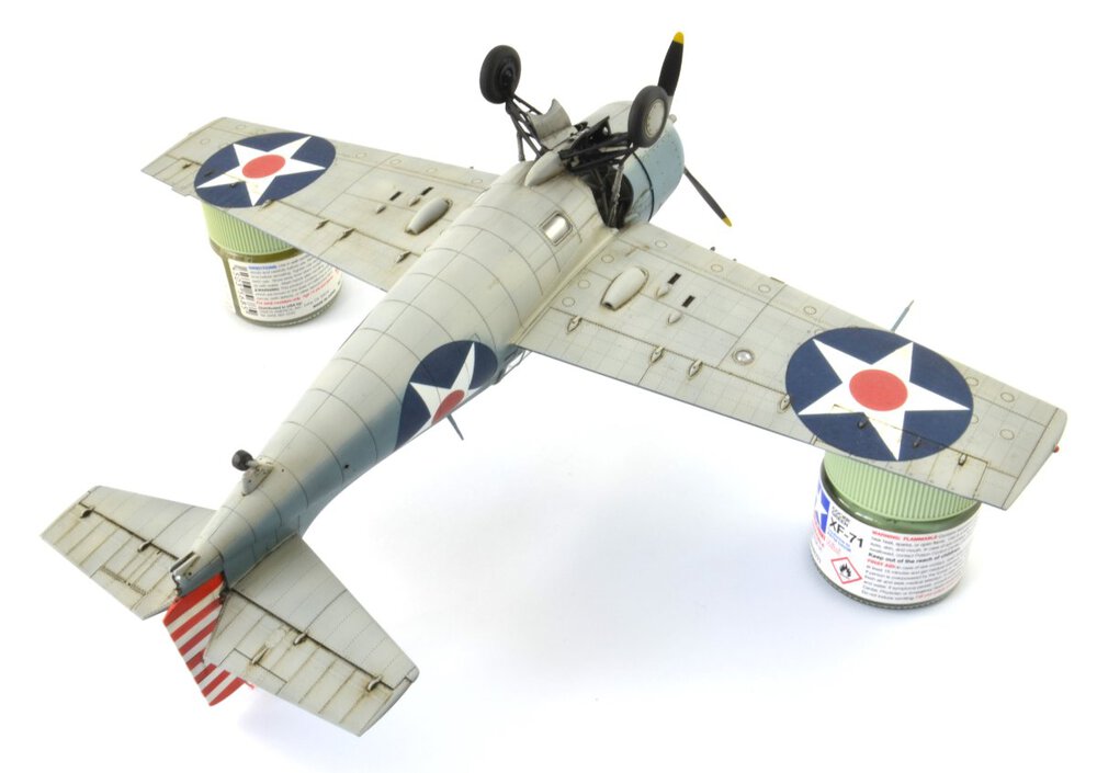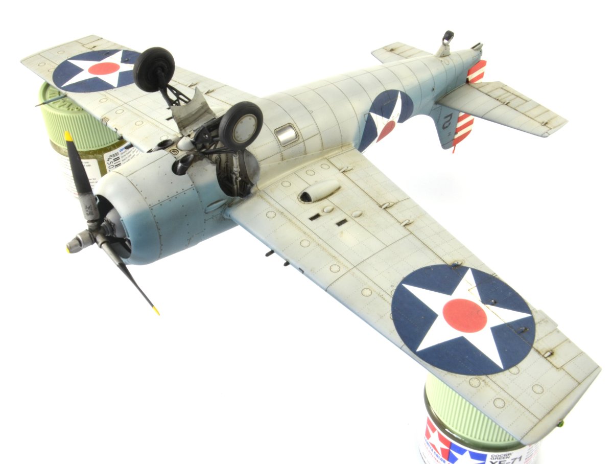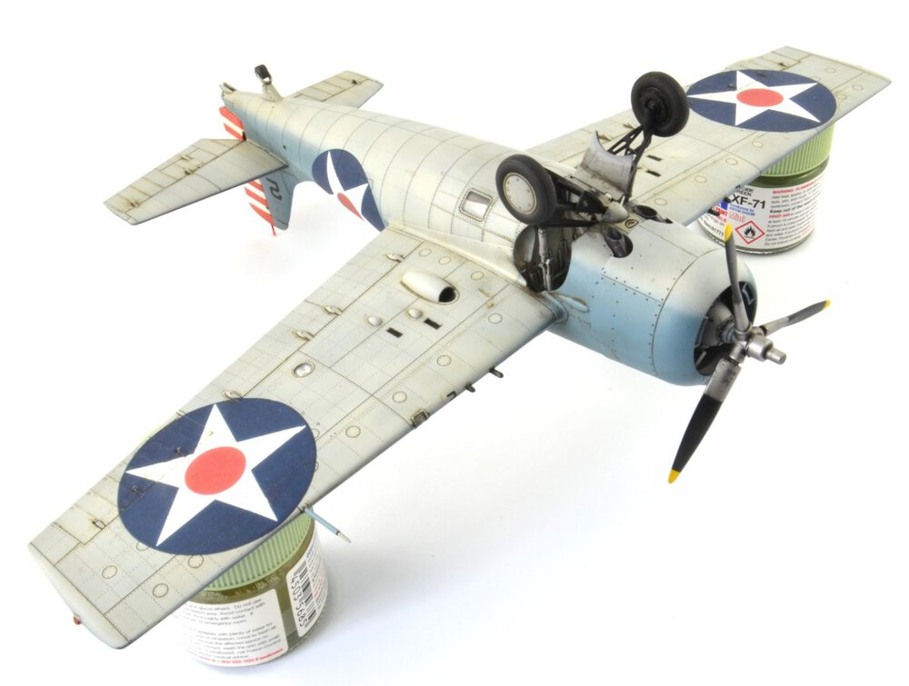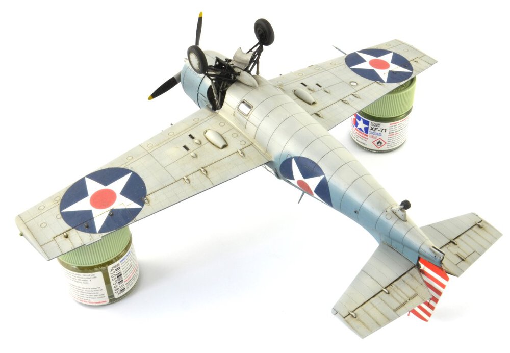 Aktualizacja warsztatu – J2F-5 Duck Lukgraph 1/32 Witajcie w nowym roku. Na samym początku chciałbym jeszcze raz życzyć Wam wszystkim wszystkiego dobrego na nadchodzące miesiące – spełnienia planów, wielu udanych modeli, satysfakcji z pracy przy biurku i jak największej ilości pozytywnych chwil związanych z naszym hobby. Wracamy do Kaczki. Ostatnie dni przyniosły wyraźne przyspieszenie prac. Kilka wolnych dni pozwoliło mi wreszcie nadrobić zaległości, które narastały przez dłuższy czas. Przyszedł moment na budowanie kolejnych warstw malarskich i przygotowanie metalicznej bazy, która będzie fundamentem pod właściwe malowanie kamuflażu. Równolegle prowadzę prace na kilku elementach. Kadłub z zamontowanym dolnym płatem jest już na etapie intensywnych prac malarskich. Górny płat również jest w trakcie obróbki – dwa zastrzały są już wklejone, pozostałe na razie pozostają luźne. Ze względu na przyjętą metodę montażu, o której wspominałem wcześniej, zdecydowałem się wkleić dwa zastrzały już na tym etapie. Wymagało to bardzo starannego maskowania skrzydła, aby nie naruszyć przygotowanej wcześniej powierzchni płóciennej. Na samym kadłubie pojawiły się kolejne kolory, które stanowią bazę pod późniejszy weathering – zabrudzenia, przetarcia i ślady eksploatacji. Cała koncepcja pozostaje zgodna z tym, co stosowałem już wcześniej: budowanie koloru poprzez wiele niezwykle cienkich, transparentnych warstw, kładzionych nieregularnie, na niskim ciśnieniu. Na kolejnych zdjęciach widać pojawiające się pierwsze warstwy metalu, które częściowo przykrywają wcześniejsze etapy, ale jednocześnie budują złożoność powierzchni. Docelowo ma to dać efekt subtelny, widoczny miejscami dopiero z bliska. W identyczny sposób pracuję ze zastrzałami. Kolejne warstwy przeplatane są odpryskami i punktowymi zabrudzeniami. Skupiam się przede wszystkim na miejscach newralgicznych: łączeniach zastrzałów, zagłębieniach, krawędziach, rejonach otwarć w blachach oraz tam, gdzie mogła gromadzić się woda lub brud. Na tym etapie efekty są celowo nieco przerysowane – ilość kolejnych warstw sprawi, że tylko część z nich pozostanie widoczna w finalnym malowaniu. Cała trudność polega na odpowiednim wyważeniu intensywności, tak aby kolejne etapy nie „zabiły” wcześniejszej pracy. Zanim przejdę dalej, chciałbym w tym miejscu zrobić krótką dygresję merytoryczną. Wcześniej pojawiły się pytania i uwagi dotyczące płóciennych powierzchni i stosowania farby z dodatkiem sproszkowanego aluminium. Taka farba była faktycznie używana w lotnictwie amerykańskim (i nie tylko), głównie jako warstwa ochronna zabezpieczająca płótno przed promieniowaniem UV, a także jako podkład pod właściwy kamuflaż. Temat skonsultowałem zarówno z Tomkiem Gronczewskim, jak i z Danem Bellem, uznawanym za jednego z czołowych światowych ekspertów w zakresie malowania samolotów amerykańskich. Oczywiście stuprocentowej pewności w takich kwestiach mieć nie można, jednak obaj byli zgodni co do tego, że pod koniec lat 30. samoloty o konstrukcji płóciennej nie otrzymywały już tej warstwy z aluminium. Sama farba kamuflażowa zawierała odpowiednie filtry UV, a płótno było zabezpieczane celonem. W związku z tym zdecydowałem się nie wprowadzać tej warstwy do procesu malowania. Jako ciekawostkę dodam, że Dan Bell natrafił na nowe dokumenty, między innymi dotyczące Kaczki. Na tym etapie nie zostały one jeszcze ujawnione – są w trakcie opracowywania i planowana jest również publikacja związana z tym materiałem. Wracając do samej budowy. Kolejnym krokiem było nałożenie podkładu stosowanego fabrycznie przez Amerykanów, czyli ZCY. Tym kolorem pokryłem wszystkie elementy metalowe. Konsultacje w tym zakresie potwierdziły z dużą dozą prawdopodobieństwa, że właśnie w taki sposób były one malowane na etapie produkcji. Moim celem było uzyskanie koloru odpowiadającego jednemu z etapów fabrycznego montażu, zanim samolot otrzymał właściwy kamuflaż. Oczywiście zdaję sobie sprawę, że w rzeczywistości kolejność montażu wyglądała inaczej – dolne płaty nie były zapewne zamontowane w tym momencie. Tutaj decydują jednak realia modelarskie i konstrukcja samego zestawu. Chodziło mi przede wszystkim o właściwe przygotowanie powierzchni przed malowaniem kamuflażu. Ten sam proces powtarzam również na zastrzałach oraz elementach górnego płata. Następnie przyszedł czas na kolejne etapy odprysków, odsłaniających wcześniejsze warstwy i budujących głębię powierzchni. To tyle na dziś. Prace są czasochłonne, ale dają sporo satysfakcji, a skala modelu tylko potęguje ilość godzin spędzanych nad każdym elementem. W kolejnej aktualizacji pokażę dalsze etapy i stopniowe zbliżanie się do właściwego malowania całej bryły samolotu. Do zobaczenia przy następnej odsłonie warsztatu. Pzdr. Łukasz12 punktów