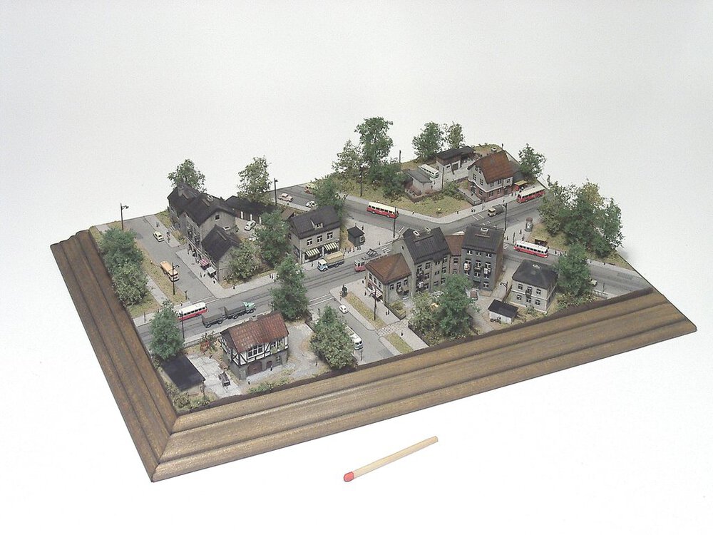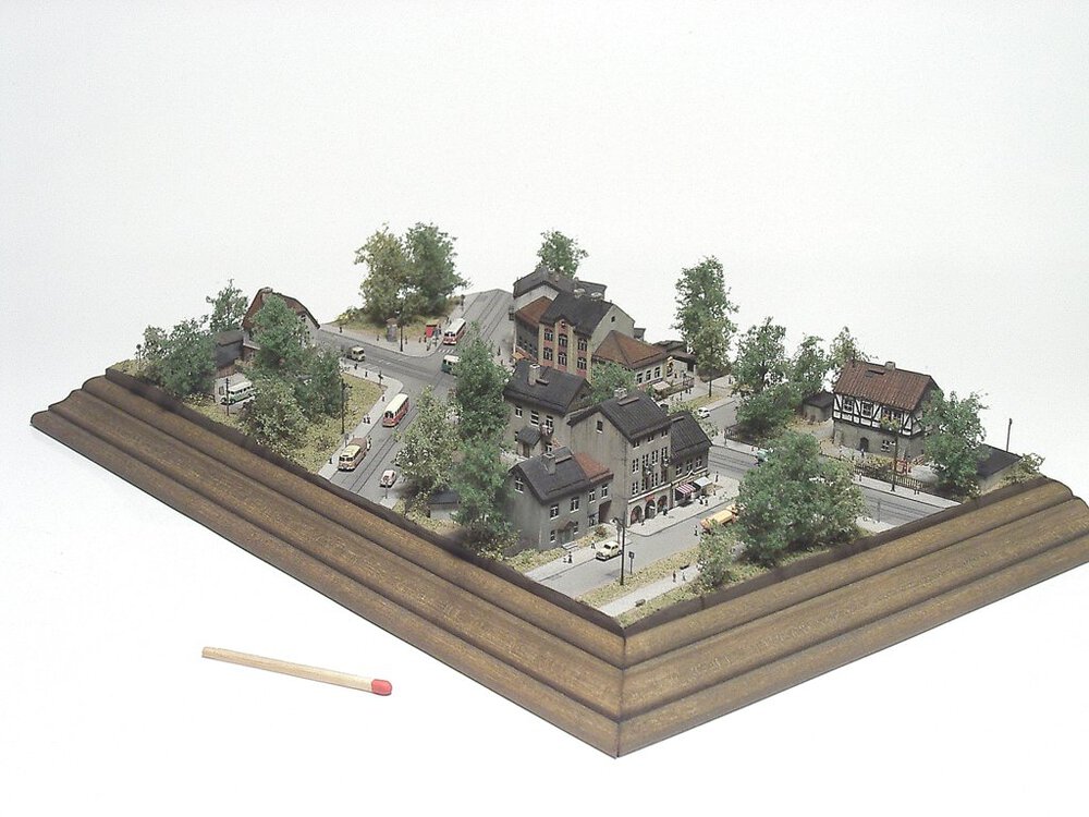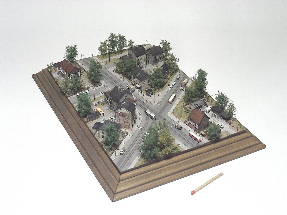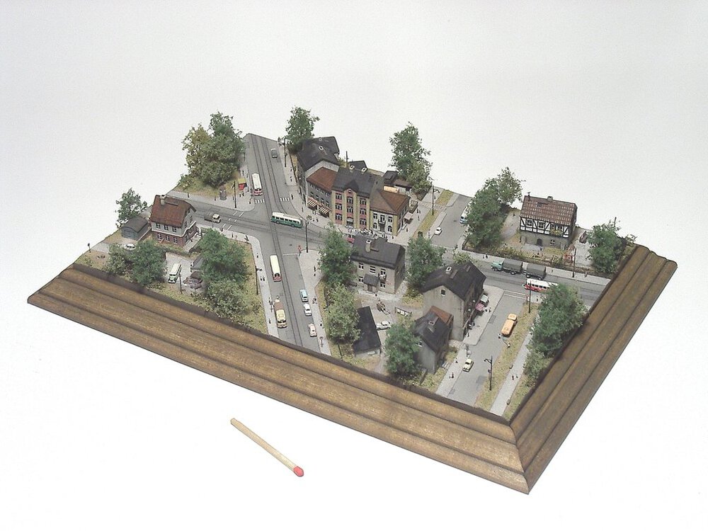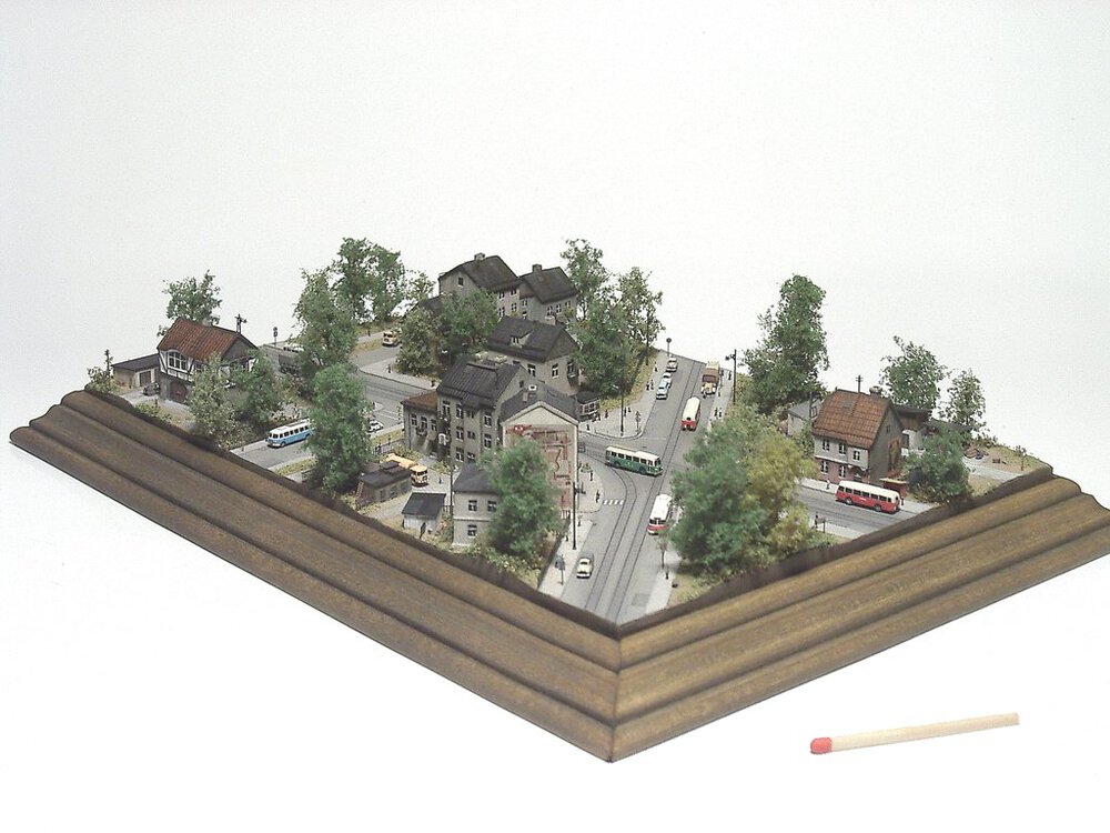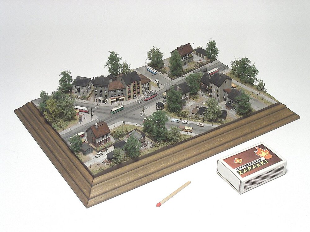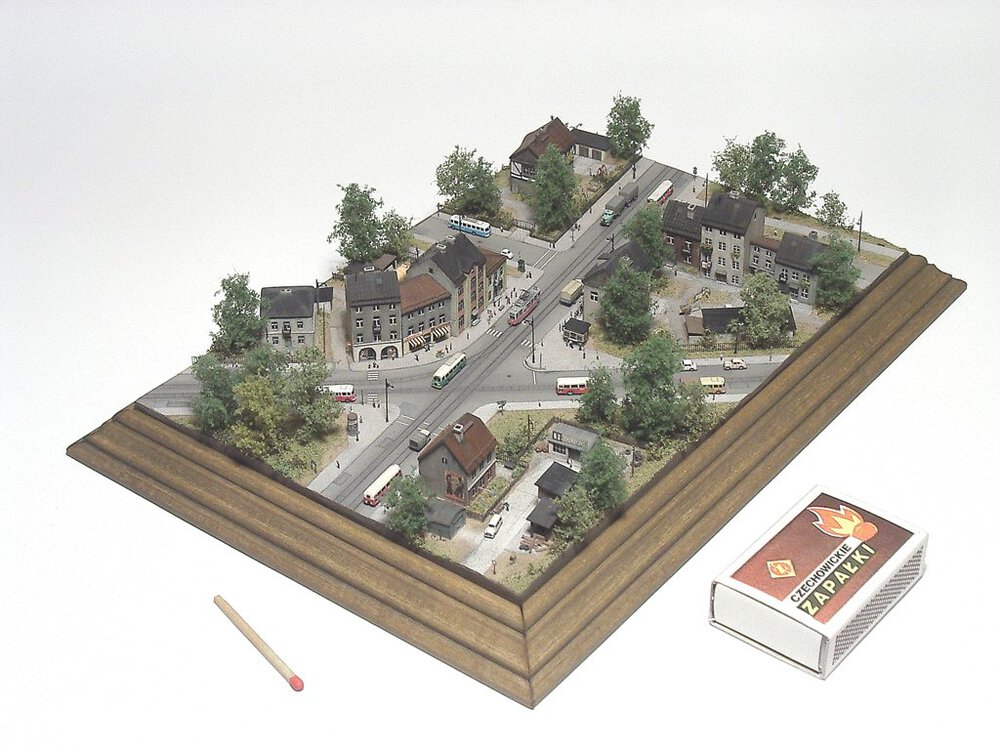 Witajcie Koledzy. Postanowiłem utworzyć ten wątek, aby zaprezentować moje prace w skali 1:700. Mikromodelarstwem zajmuję się od dziesięciu lat. Wcześniej budowałem modele i dioramy w innych podziałkach, głównie 1:160 i 1:220. Założenie było następujące: stworzyć projekt kompletnej dioramy o charakterze miejskim, nawiązującej do rodzimego pejzażu z lat 60-tych ubiegłego wieku. Projekt w 100% cywilny (do tej pory skala 1:700 kojarzona jest niemal wyłącznie z modelarstwem okrętowym). Jestem miłośnikiem starych pojazdów komunikacji miejskiej i pojazdów szynowych w ogóle, dlatego to one stanowią główny temat moich prac. W ten sposób powstała pierwsza diorama o wymiarach podstawy 145 x 220 mm. Pomimo oczywistych ograniczeń jakie niesie ta miniaturowa podziałka, starałem się nie iść na skróty. Większość budynków i innych elementów wyposażenia wzbogaciłem o elementy fototrawione. Pozostałą część obiektów i większość drobiazgów - wykonałem samodzielnie od podstaw. Zaś do produkcji zieleni użyłem wyłącznie syntetyków o najmniejszej frakcji z dostępnych na rynku. I na koniec uprzedzając pytanie - całość nie jest odwzorowaniem jakiegoś konkretnego rzeczywistego miejsca, zdarzenia, sytuacji. Koncepcja to czysta fikcja zrodzona w głowie, a źródłem inspiracji są liczne zdjęcia i pocztówki z epoki, które posiadam w swoich zbiorach. Zapraszam do oglądania.21 punktów