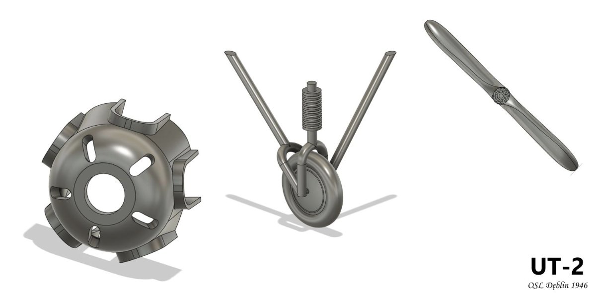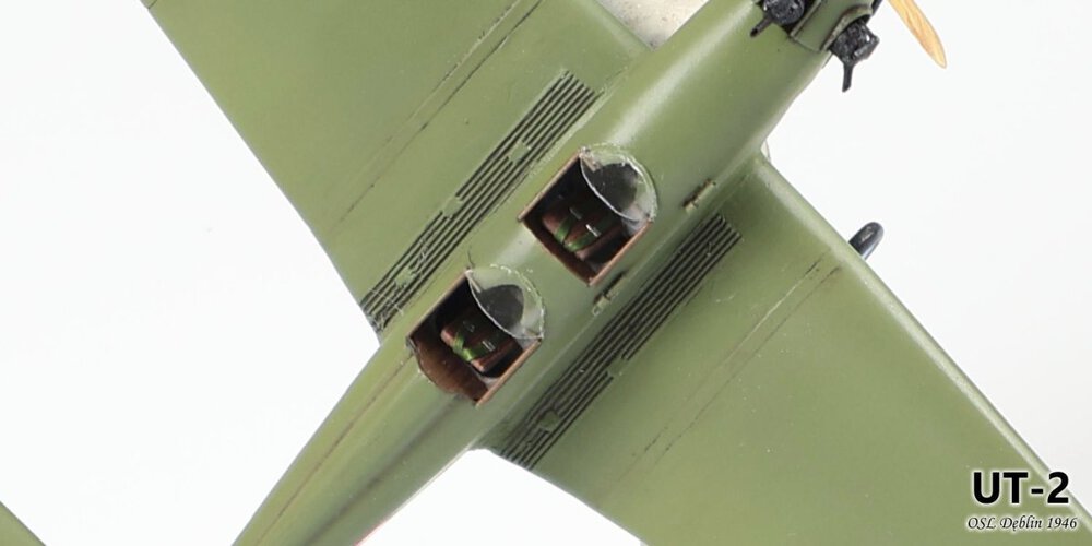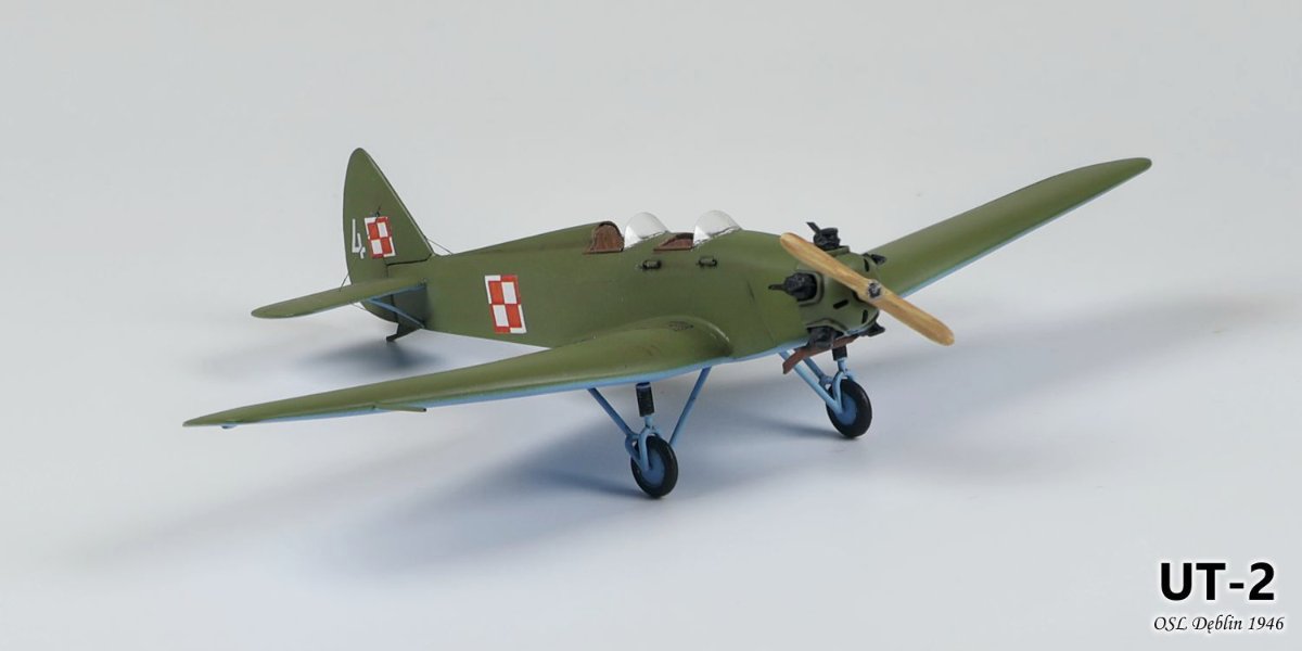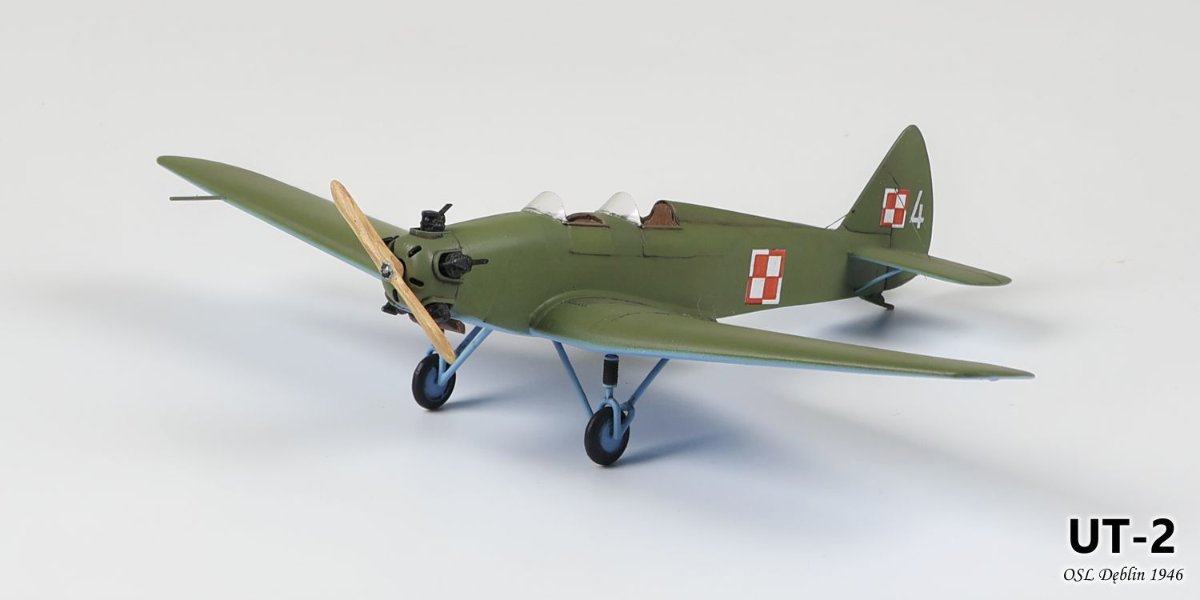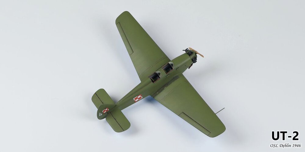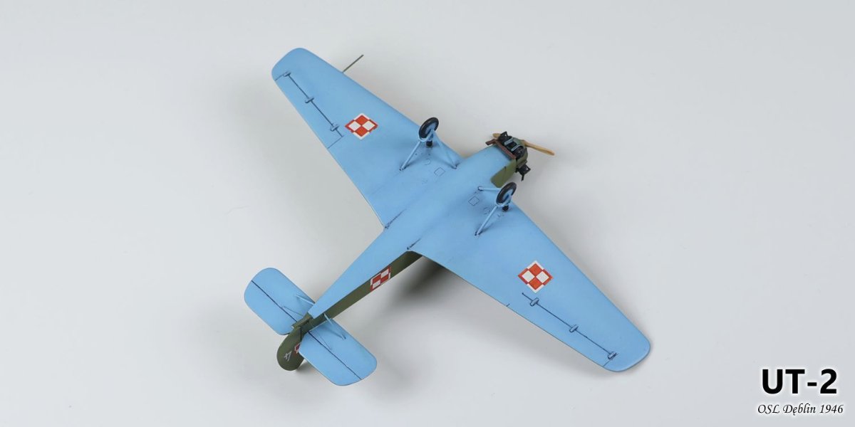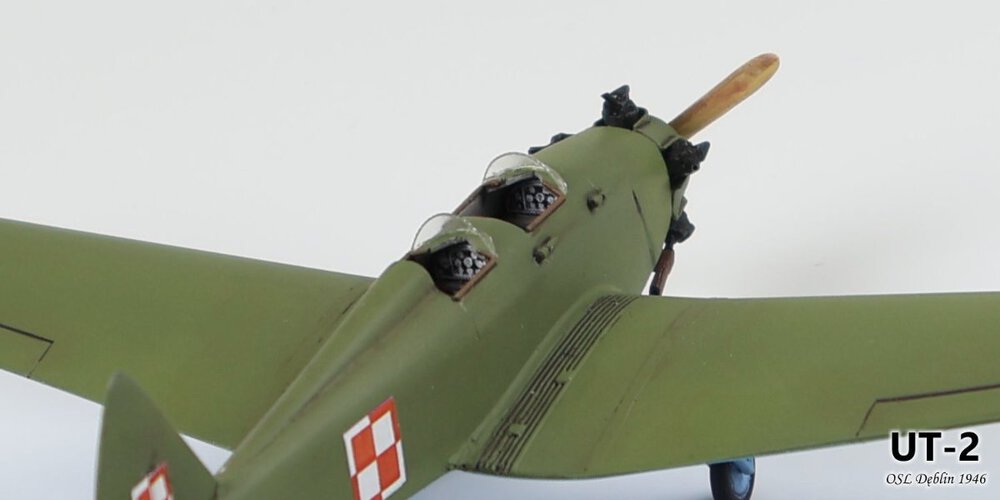 O samolocie: UT-2 to radziecki dwumiejscowy samolot szkolno-treningowy z lat 30. XX wieku. Dolnopłat o stałym podwoziu i drewnianej konstrukcji, wyposażony w silnik gwiazdowy M-11D o mocy 125 KM. Prototyp (znany jako AIR-10), zaprojektowany przez Aleksandra Jakowlewa, oblatano w 1935 r. Produkcja seryjna trwała do 1947 r., obejmując ponad 7200 egzemplarzy. Wersja rozwojowa to UT-2M. O egzemplarzu: Po II wojnie światowej UT-2 stanowił podstawowy samolot do szkolenia pilotów w Oficerskiej Szkole Lotniczej (OSL) w Dęblinie ("Szkołą Orląt"). Już 8 marca 1945 r. przebazowano tam 13 maszyn z Zamościa, a 20 marca rozpoczęto praktyczne szkolenie 3. Eskadry Szkolnej. Używano ich do podstawowego pilotażu – lotów po okręgu, do strefy czy akrobacji niższego stopnia. Malowanie na podstawie TBiU + zdjęć z OSL (inne numer maszyn: 9 czy 12). O modelu: Jaki Amodel jest każdemu, kto zetknął się z "produktem" ten wie Prawdopodobnie dałoby się wykorzystać z modelu więcej elementów "drobnicy", ale mam w planach jeszcze UT-2M z Broplanu a tam dopiero byłyby one problemem. Zdecydowałem sie poćwiczyć troche projektowanie 3D i wykonałem samodzielnie: osłonę silnika, śmigło i podwozie. Zaprojektować to jedno a wydrukować te detale to drugie Po około 2 tygodniach prób udało mi się zaprojektować części tak, że wyglądały podobnie do oryginału a jednocześnie nie rozpadały się pod wpływem spojrzenia Do dorobionych rzeczy dodam: kalki, silnik (wydruk 3D), sporo detali w kabinach, olinowanie, owiewki. Model uzupełnia zbiór samolotów [szkolnych] używanych w Polsce po II Wojnie Światowej. Zapraszam do galerii Części 3D są udostępnione tu: Cults 3D25 punktów