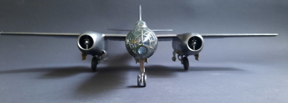 Intensywna końcówka roku Ostatni zrobiony w tym roku model, który długo za mną chodził, bo zawsze chciałem mieć czarnego Emila. Jednocześnie kilka lat przeleżał w pudełku w czarnym podkładzie, bo nie mogłem zmusić się do zrobienia tego radaru. Niby pierdoła, bo ma to pół centymetra, ale obejmuje blaszkę, część żywiczną i vacu, no i ciężko to czysto złożyć ze sobą Kalkomanie, jak i konwersja, pochodzą z zestawu AML i są to najgorsze, najbardziej koszmarne kalkomanie, z jakimi pracowałem. Jestem też świadom informacji o czerwonym kolorze liter, ale zostałem przy szarym. Na modelu sporo się dzieje ale ciężko to niestety uchwycić apratem. No ale "coś" tam mam nadzieję widać. PS. To mój 20-sty Messer 109 w 1/7223 punktów