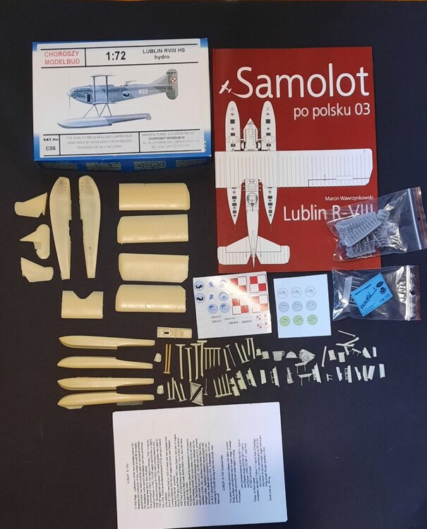 Czas na nowy warsztat. Tym razem powalczę z żywicznym wypustem Choroszego. Bedzie to model samolotu z nr 802 i ozdobionym godłem z rybą. Już na wstepie widzę sporo pracy z przy naprawie powierzchni kadłuba - sporo uszkodzeń powstałych przy wyciaganiy z formy plus pęcherzyki powietrza. No i powyginane zastrzały skrzydeł i pływaków. Materiałów żrodłowych prawie nie ma, więc model bedzie prawie "z pudła". Instrukcja też nie pomaga, jest bardzo ogólna bez precyzyjnego wskazania umiesczenia konkretnych elementów. Do modelu dodam tylko nowe km Vickersa i bomby pod kadłubem. Pokuszę się może jeszcze o wykonanie dolnego stanowiska km - choć tutaj wygląd bedzie domniemywany. Przez najbliższe dni będę walczył z naprawą powierzchni kadłuba. Trzeba będzie się skupić, aby nie zepsuć delikatnego detalu.17 punktów