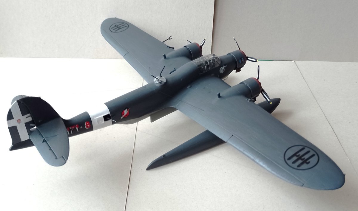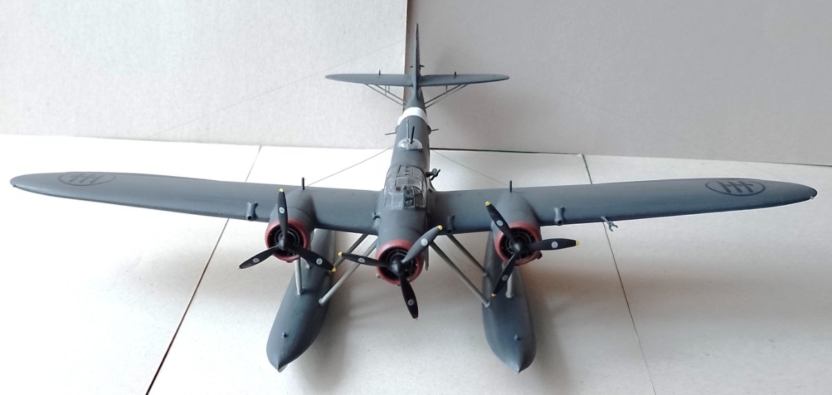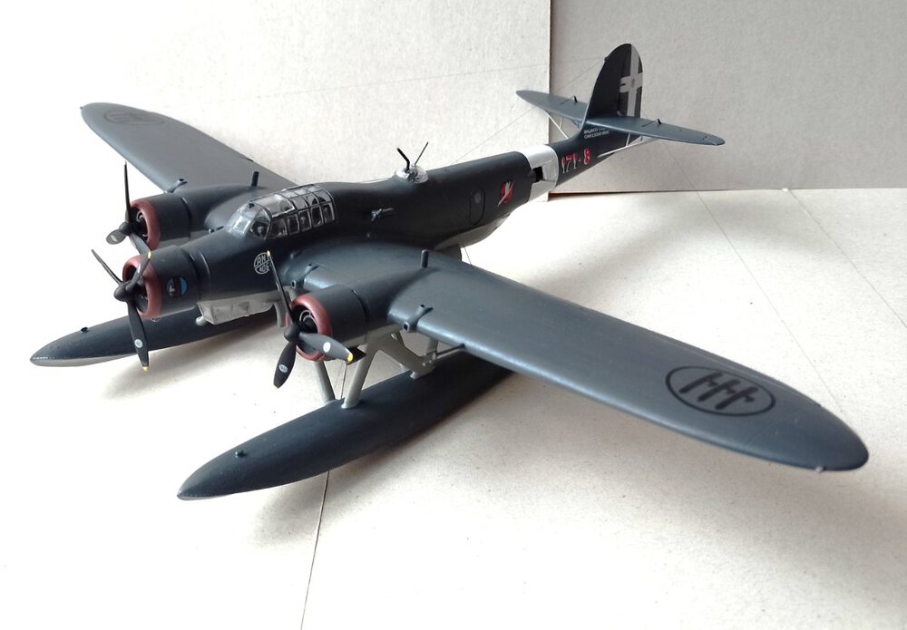 Model rozpoczęty w październiku zeszłego roku. Ukończony dwa dni temu. Cant Z.506B czyli stary Supermodel w nowym wydaniu Italeri. Producent dorzucił ramkę z elementami do kokpitu i rurami wydechowymi, blaszkę (strasznie twarda) z pasami i tablicami. Przeryli linie podziału na skrzydłach i dodali nowe malowania. Szkoda, że nie poprawili pływaków bo ich spasowanie jest bardzo słabe. dolne oszklenie jaki i stanowiska boczne równię bardzo słabo spasowane. Dorobiłem dolne tylne stanowisko dolnego strzelca, o którym producent całkowicie zapomniał. Dorobiłem mocowania bocznych karabinów maszynowych. Wymieniłem lufy na metalowe. Dorobiłem naciągi i linki do sterów i anteny. Malowany farbami Italeri, Kk, Hatakami, pędzlem. Cant Z.506B 171a Squadriglia,82 Gruppo, Tarent, Włochy 194217 punktów
