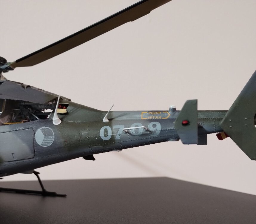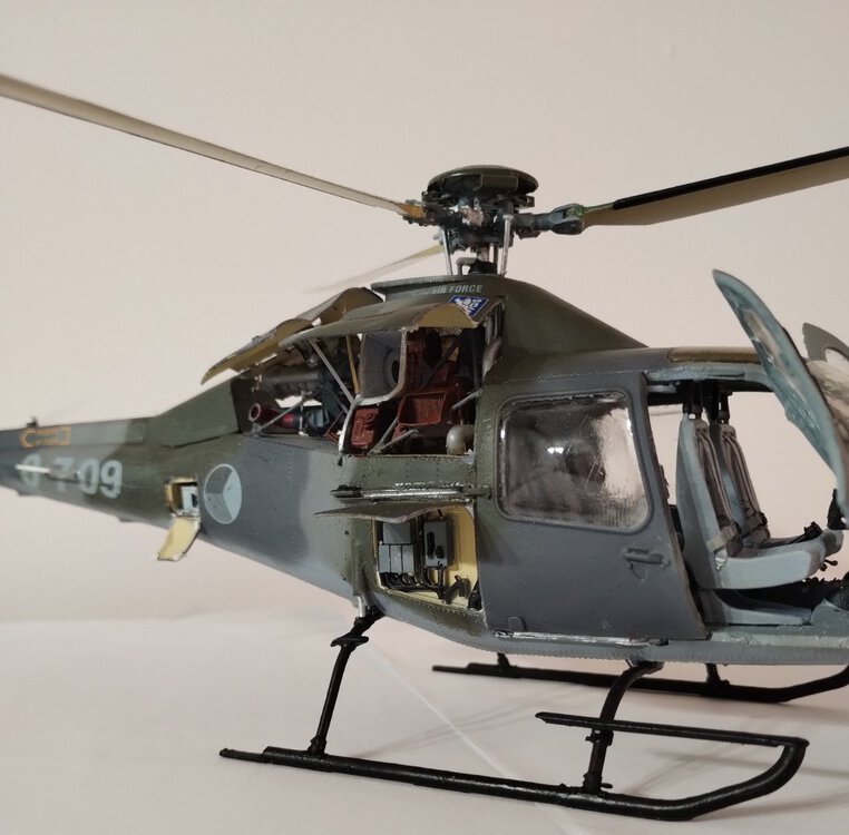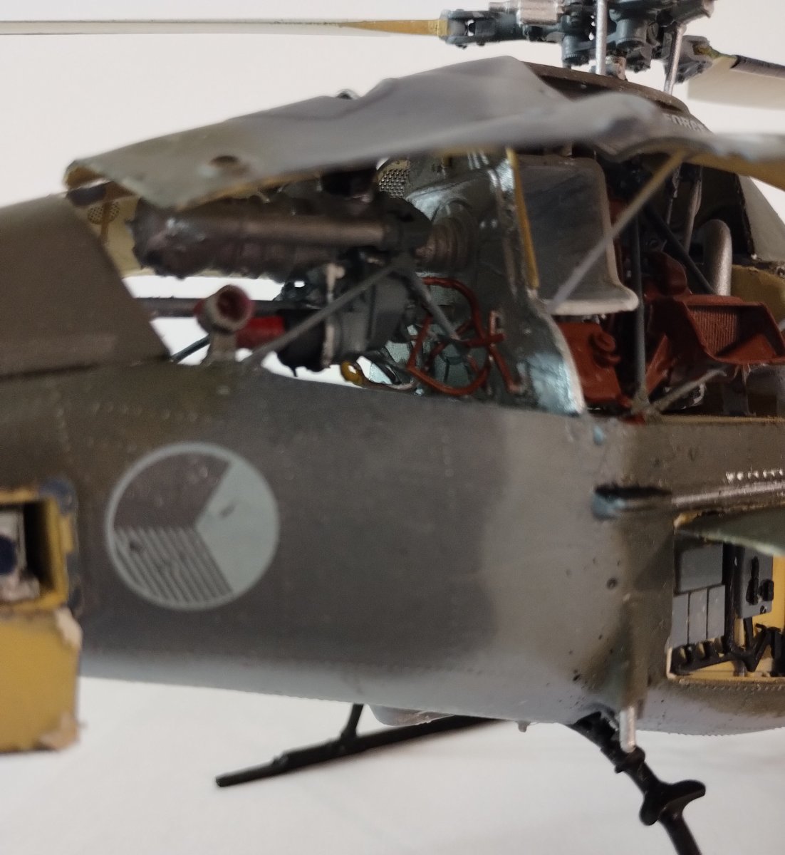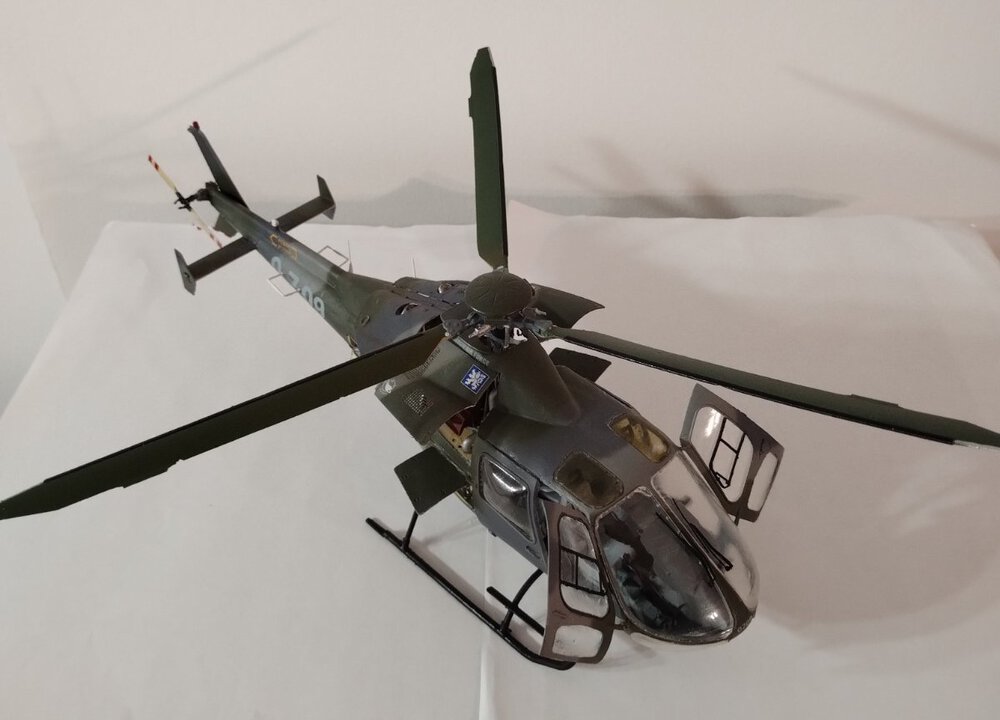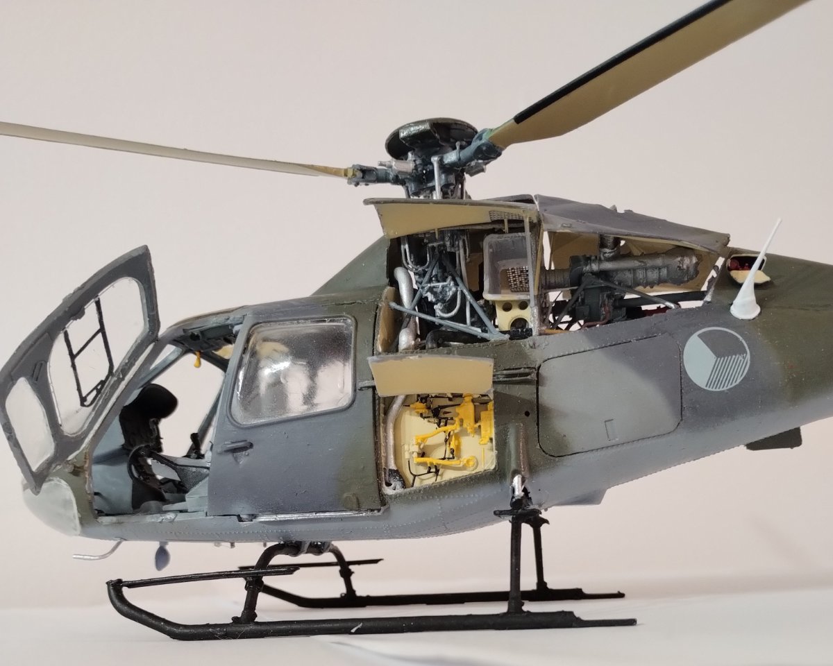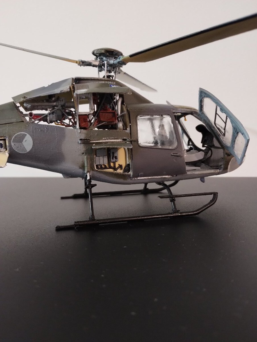 Dzień dobry - noworoczna galeria modeliku ukończonego krótko przed upływem roku. Model całkowicie od podstaw. Barwy greckie (Hellenic Air Force). Długość całkowita 10 cm, bez wirnika głównego - 7 cm. A tutaj ze starszym kolegą w skali 72 zbudowanym sporo ponad 20 lat temu z zestawy Italeri I jeszcze spojrzenie humorystyczne Spokojnego Nowego Roku28 punktów