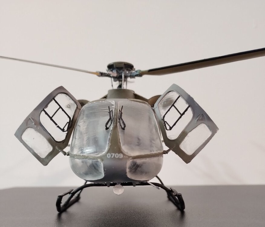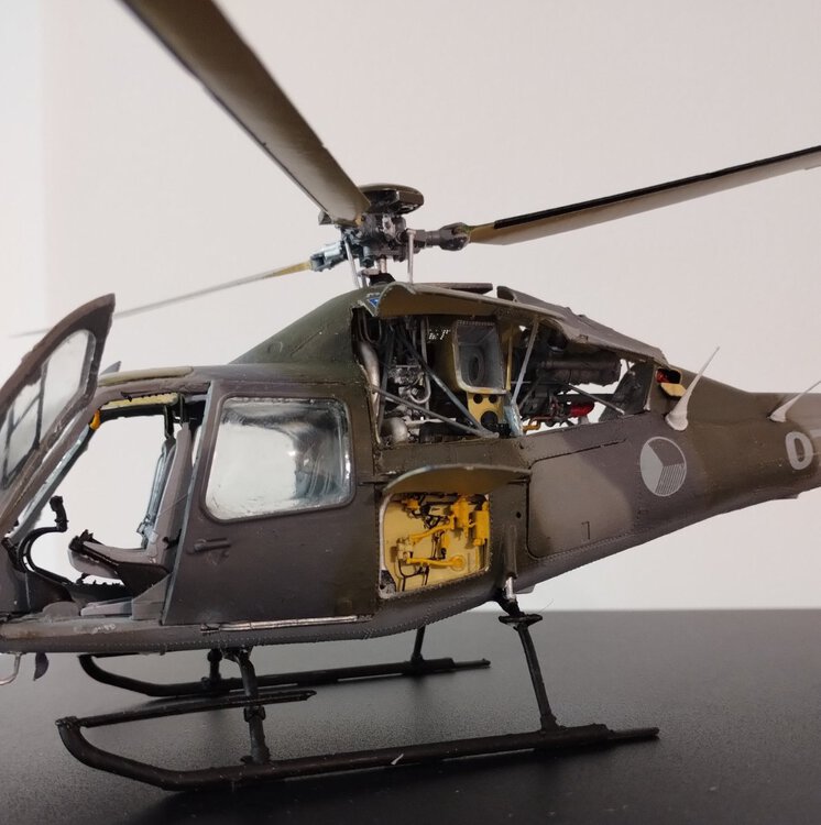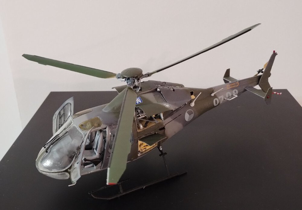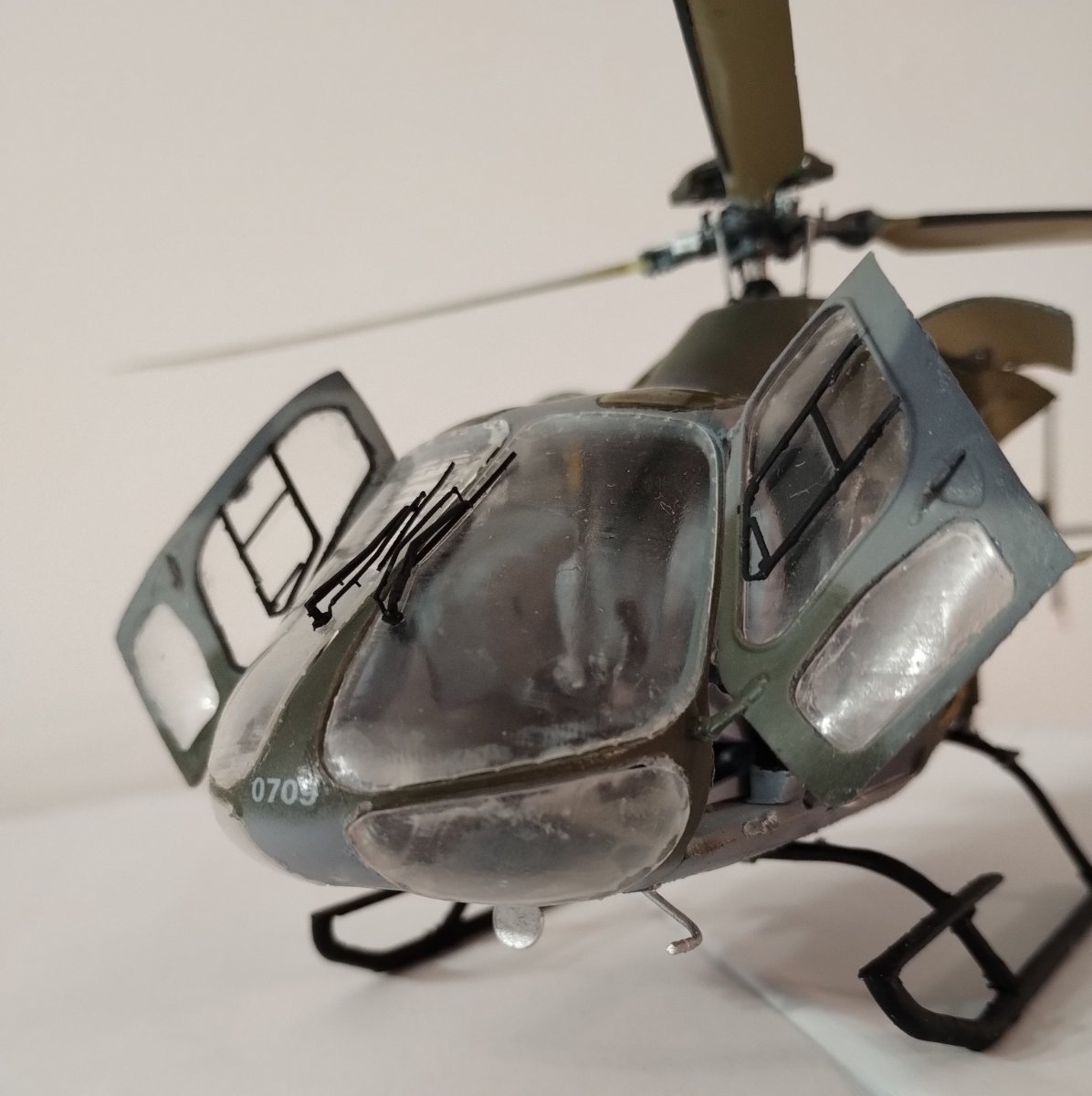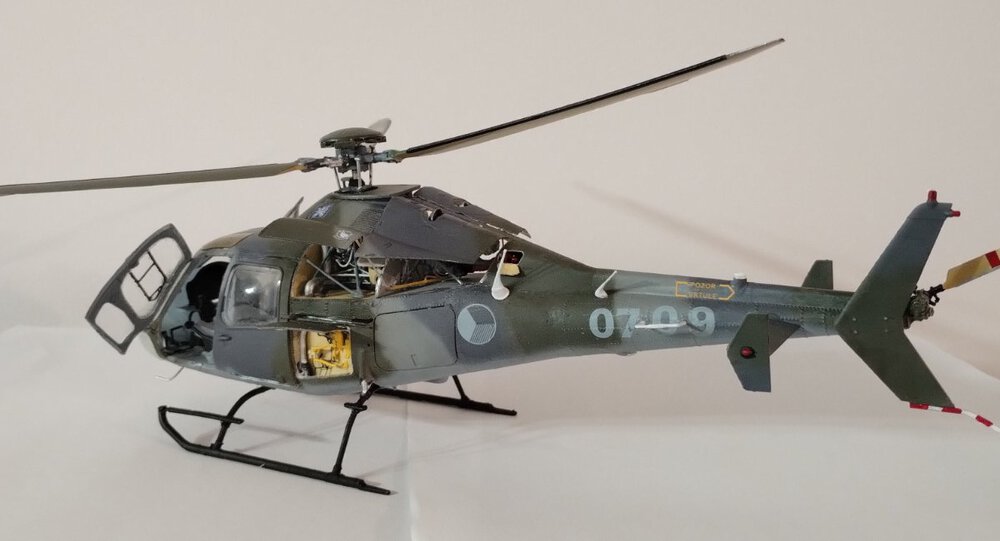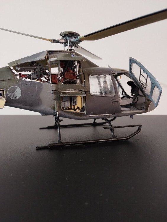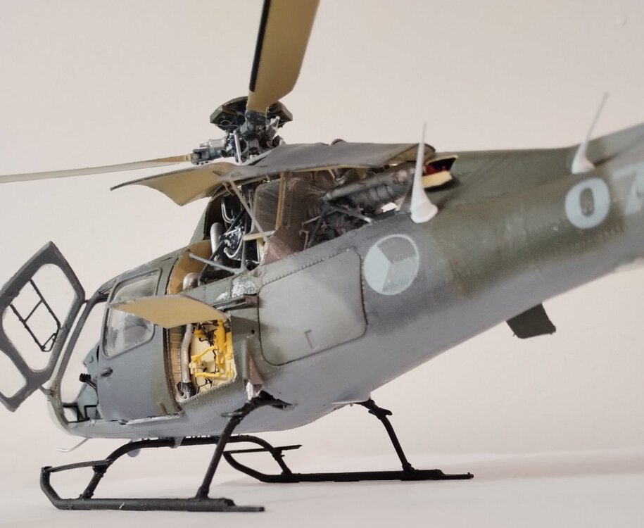 Dzień dobry - noworoczna galeria modeliku ukończonego krótko przed upływem roku. Model całkowicie od podstaw. Barwy greckie (Hellenic Air Force). Długość całkowita 10 cm, bez wirnika głównego - 7 cm. A tutaj ze starszym kolegą w skali 72 zbudowanym sporo ponad 20 lat temu z zestawy Italeri I jeszcze spojrzenie humorystyczne Spokojnego Nowego Roku28 punktów