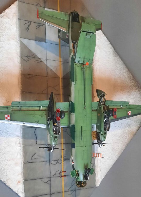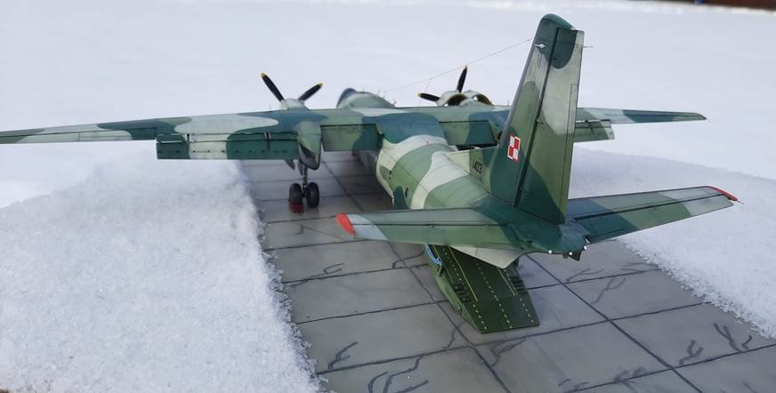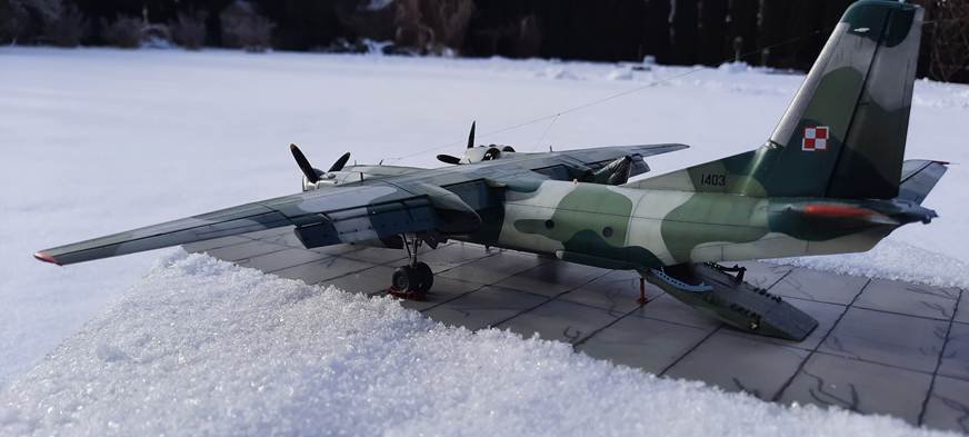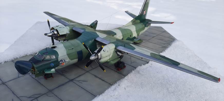 Jutro - 16 stycznia - minie 17 lat od ostatniego lotu An-26 w naszych Siłach Powietrznych – był to samolot o nr 1403. Pożegnalny przelot trwał około 40 minut i odbył się na trasie Balice – Tarnów – krakowski Rynek Główny – Balice. Pogoda nawet była podobna do tej jaką mieliśmy kilka dni temu. Maszyna ta pozostała w 8. Bazie Lotnictwa Transportowego jako samolot-pomnik. Pełny skład załogi tego historycznego lotu, który odbył się 16 stycznia 2009 roku, tworzyli: · Dowódca załogi: kpt. pil. Paweł Drozd · Drugi pilot: mjr pil. Arkadiusz Madej · Nawigator: kpt. Krzysztof Słodczyk · Technik pokładowy: st. chor. sztab. Adam Pytlarz · Radiooperator: chor. sztab. Stanisław Kasprzyk Kilka fotek z tego wydarzenia jakie udało mi się znaleźć w sieci zamieszczam poniżej (mam nadzieję, że autorzy nie będą za bardzo źli na mnie za użycie ich tutaj – nie wystąpiłem do nich o zgodę ☹ Model jaki wykonałem przedstawia samolot w malowaniu z końcowego okresu użytkowania. Podstawka powstała na szybko, tylko na potrzeby wykonania kilku zdjęć - to czysta improwizacja – jednorazówka z wykorzystaniem naturalnego śniegu Tak, wiem, wodzidełko na niektórych fotkach fiknęło koziołka Model w GALERII pojawi się za kilka dni. pozdrawiam - Zenek24 punktów