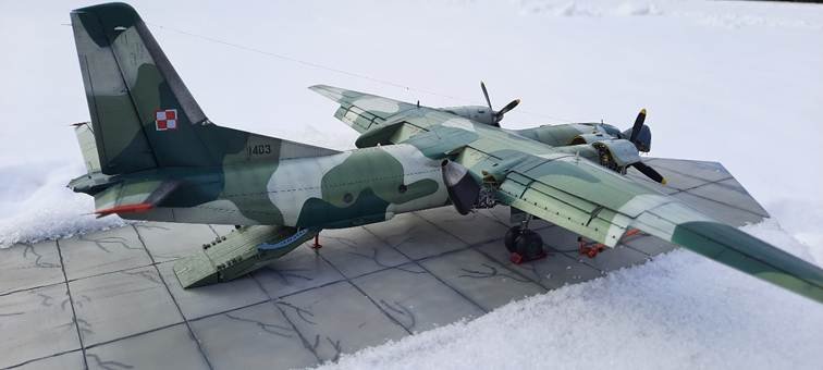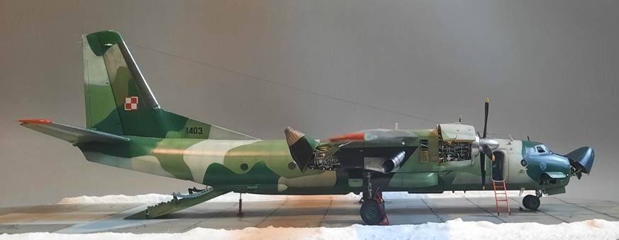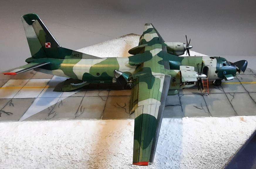 Obiecana jakiś czas temu galeria An-26 – 1403. Model jaki wykonałem przedstawia samolot w malowaniu z końcowego okresu użytkowania. Jego ostatni lot odbył się 16. stycznia 2009r. Był to też ostatni lot tego typu samolotu n naszych Siłach Zbrojnych Zestawem wyjściowym był produkt A-Model o nr kat. 72101. W budowie wykorzystałem: · zestaw blaszek ExtraTech o nr EX72153 oraz EX72154 · żywiczne koła AW72029 · kalkomanie HAD Models 72004 · silnik AI-24 – druk 3d KatModel · radar oraz wyposażenie elektroniczne – druk 3d by @Aleksander_z_Zalasu Użyłem głównie farb Bilmodel: · P073 · P095 · P388 · P086 · P067 · P008 WARSZTAT27 punktów