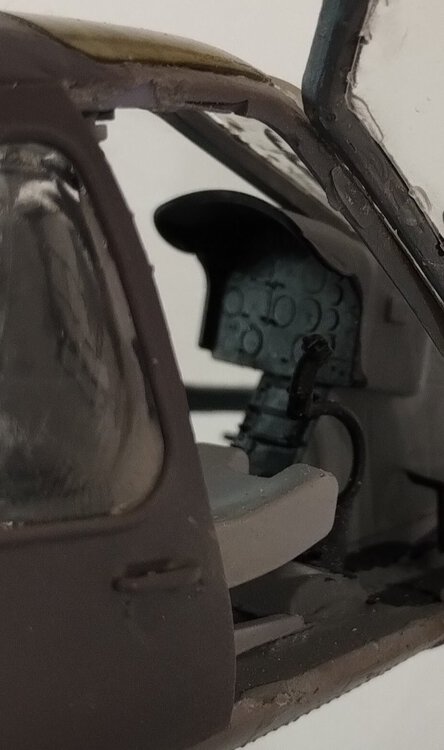 Leciwy zestaw plus blaszki PART, koła żywiczne, lufa i dodatki Aber oraz własne przeróbki. Figurki dwie z zestawu plus kierowca z firmy Bodi Miniatures. Przy zakończeniu prac pojazd spadł na podłogę i miałem te resztki wyrzucić na śmieci, ale w ostatniej chwili zmieniłem zdanie. Efekty tej decyzji zamieszczam poniżej:).12 punktów
