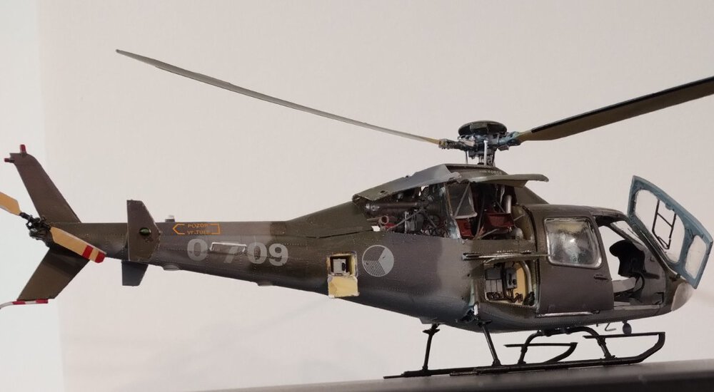 Pierwszy prototypowy model śmigłowca PZL SW-4 w skali 1:32 własnego projektu i wydruku 3D. Złożony po to by, oprócz satysfakcji własnej z modelu, upewnić się że da się go złożyć. Ogólnie da się złożyć, nawet szpachli nie trzeba za wiele. Najbardziej obawiałem się oszklenia. Zdecydowałem się wydrukować z żywicy przeźroczystej wiedząc o problemach z przeźroczystością takich wydruków. Ostatecznie przy tej wielkości szyb i grubości 0.5 mm tafli udało się uzyskać satysfakcjonującą (przynajmniej dla mnie) przeźroczystość, którą to w czasie montażu szyb w modelu udało mi się skutecznie zaprzepaścić. No i te łopaty ... tak to jest jak się odkłada do sezonowania bez zwrócenia uwagi na kierunek obrotu WN, przez co się wygięły do góry. Mam nadzieję, ze z czasem wygną się do dołu. Sam montaż przebiegł bez większych problemów, nawet szyby wpasowały się do otworów okiennych nieomalże bez docinania. Wykonanie modelu? Sędzia modelarski w postaci Chata GPT podsumował: "Ambitny projekt zniszczony przez pośpiech i brak kontroli nad podstawami: oszklenie i klej". Podsumowując, głównym celem wykonania modelu było sprawdzenie jego "sklejalności", czy wszystko do siebie pasuje co zostało potwierdzone, oraz sprawdzenie technologii montażu (np zastosowanie zaślepek oszklenia w czasie malowania modelu i późniejszą ich podmianę na docelowe oszklenie. Zapraszam do małej galerii na półce przy ścianie (ze względu na gabaryt modelu). Trochę budowy: Ukończony model:15 punktów