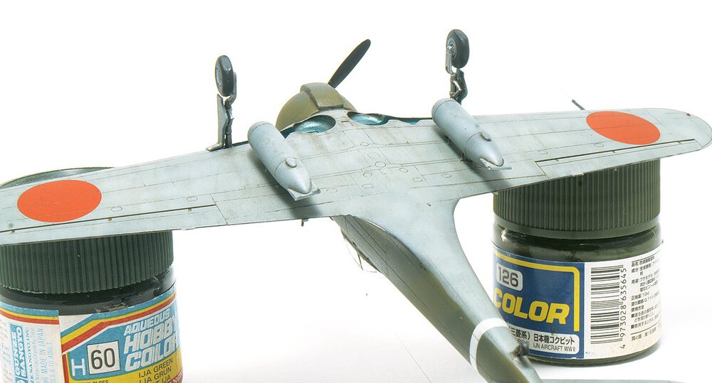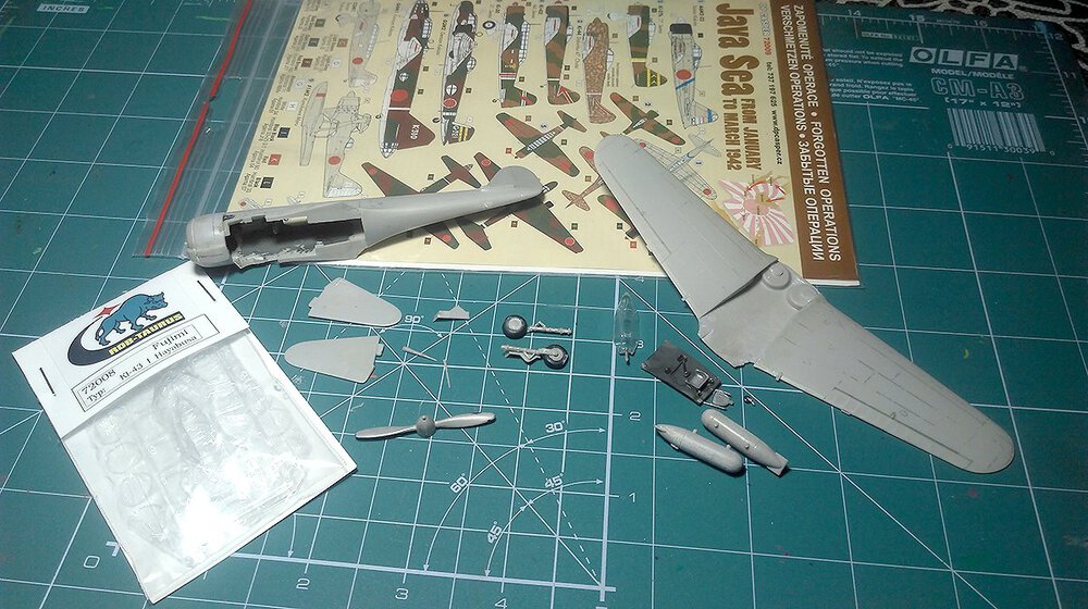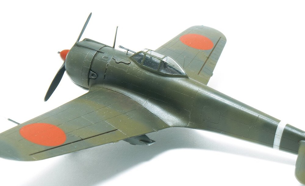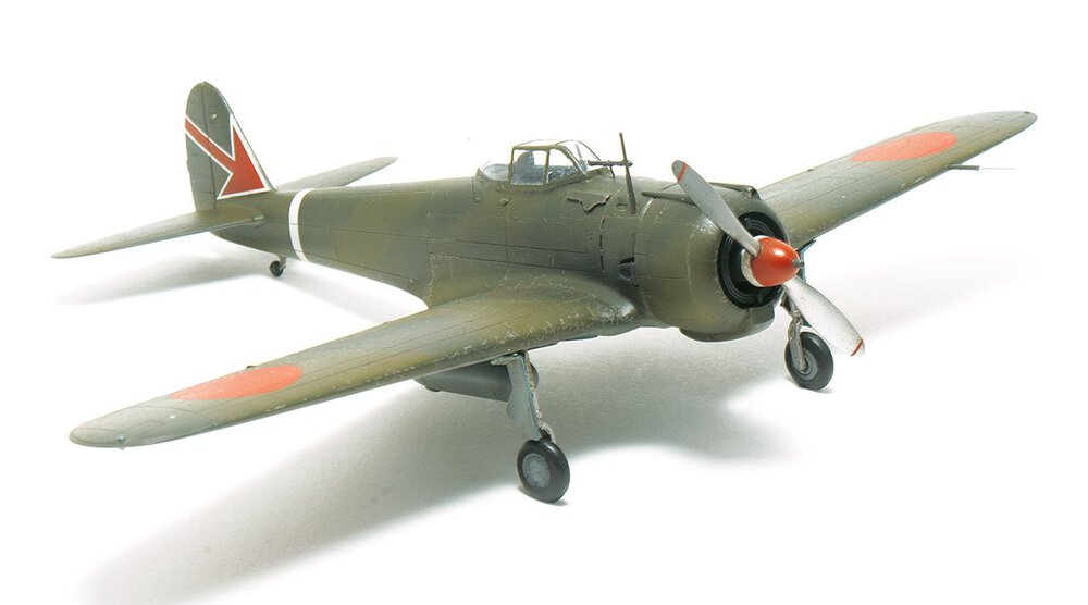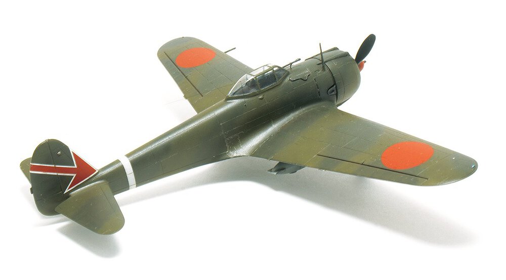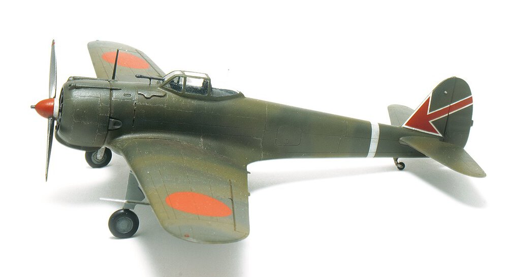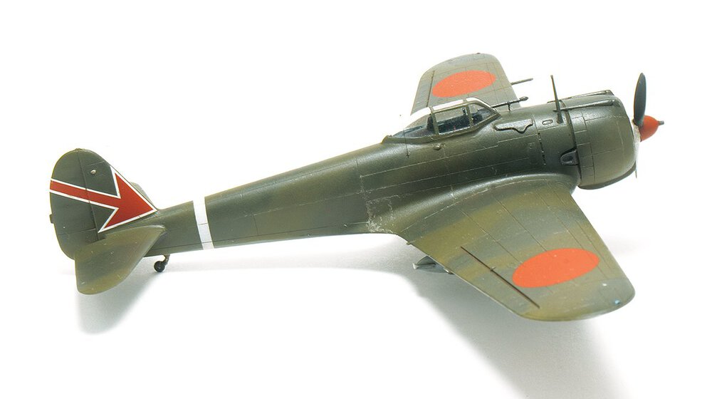 Wczesny Oscarek z Fujimi. Tego akurat to kupiłem gotowego. Po czym go wrzuciłem do ''KRETA'' i próbowałem porosklejać co się da. Niestety nie rozkleiły się połówki kadłuba i skrzydła. Ale dobrze że skrzydło odeszło od kadłuba (choć w całości) Można było dzięki temu choć trochę poprawić wnętrze. Rezultat jest jaki jest. Najbardziej cieszy mnie fakt ukończenia tego wieloletniego ''leżaka''. Maszyna ze sławnego 64 Sentai, Palembang, Malaje wczesny 1942 rok.11 punktów