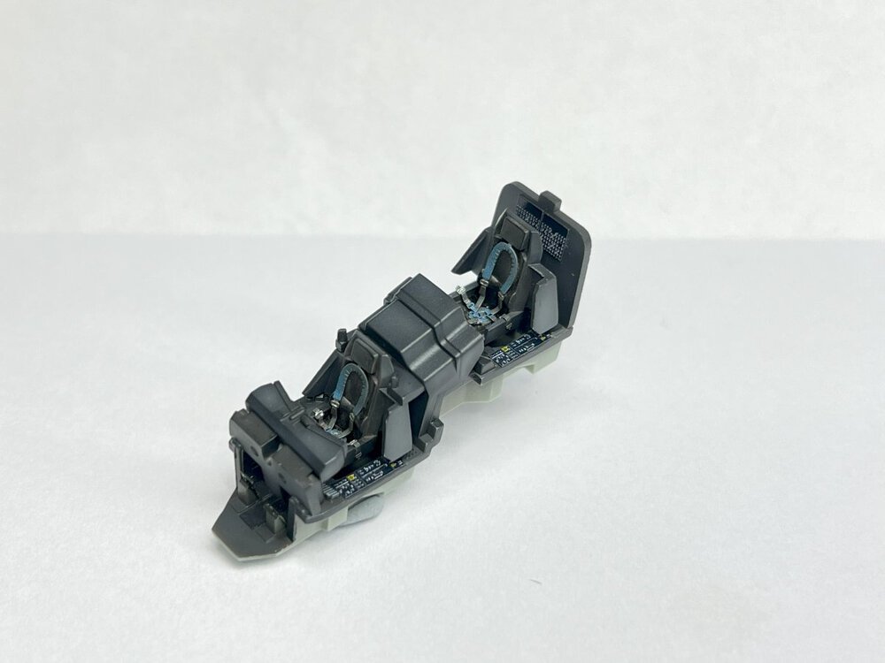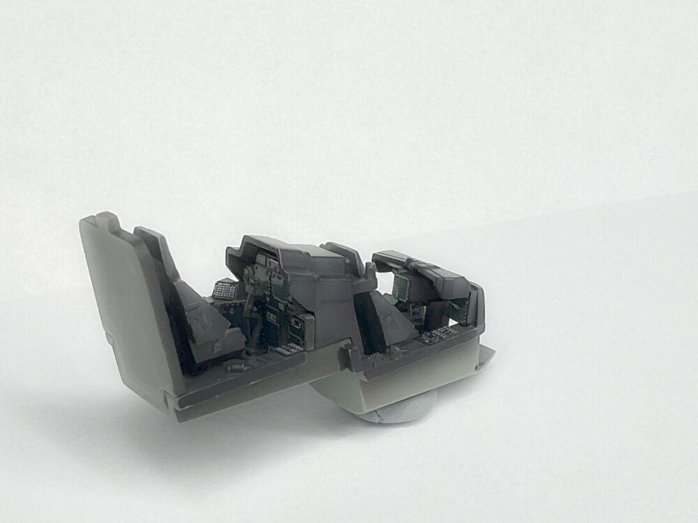 Powoli kończę kokpit. Dołożyłem blaszkę od Edka. Poza tym starałem się zróżnicować odcienie czerni bo jakbym zrobił wszystko na czarno to nic nie byłoby widać. Szkło na wyświetlacza to bezbarwna żywica UV. Polecam rozwiązanie bo jest ekspresowe w porównaniu z bezbarwnym lakierem czy Microscale Crystal - te jednak trochę schną a tu utwardzenie po kilku sekundach.1 punkt