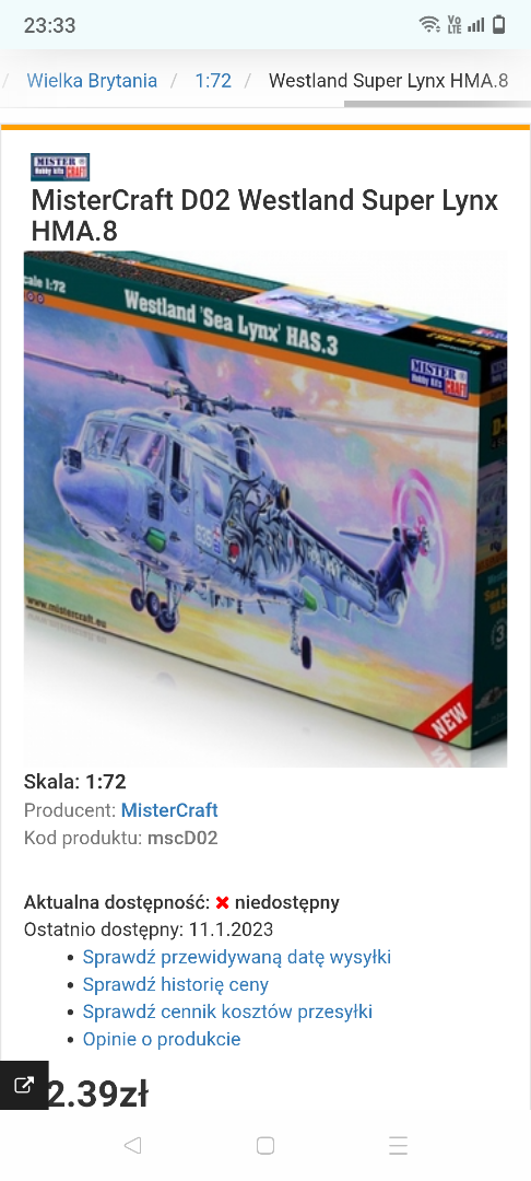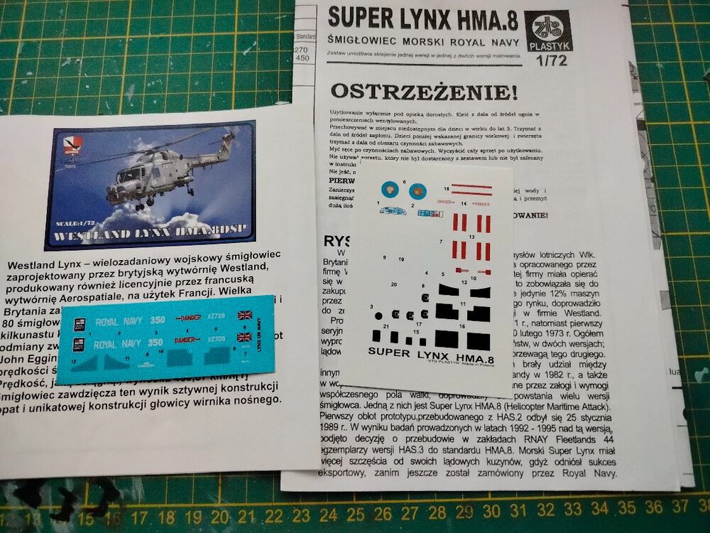 Witam. Czas odpalić kolejny Mistercraftowy temat. Tym razem padło na kultowego lynxa. Mam duży sentyment do tych modeli. Tymi modelami jakiś czas temu debiutowałem na tym forum. Z tego co mi wiadomo jest to model inspirowany modelem lynxa ze stajni Novo/Frog, a pierwotnie został wypuszczony przez ZTS Plastyk. Będę wykonywał wersję z rysiem. Poniżej na fotkach: - występowały dwie wersje pudła, ale tylko jedna była prawidłowa, - pracując nad modelem będę inspirował sie modelem tego śmigłowca od Hobby Boss, - niestety w zestawie kalkomanii w MC nie było wszystkiego stąd zakupy dwóch pozostałych wydań tego modelu od ZTS Plastyk i Big Model, - zawartość pudła na zdjęciach - uwagę zwraca bardzo słabo zaprojektowane i wykonane oszklenie: jakość, grubość i ta belka w przednim oszklenia - będzie to wymagało mi.in. polerowania, - drążki przednie wzięte z poprzedniego projektu apacha - co w rodzinie to nie zginie, - dłubnąłem na razie coś we wnętrzu, ale będzie skromnie bo będzie 99,9% z pudła (poza drążkami), - poza tym jest to projekt upamiętniający 80-lecie ZTS Plastyk Pruszków. Zapraszam do galerii:1 punkt