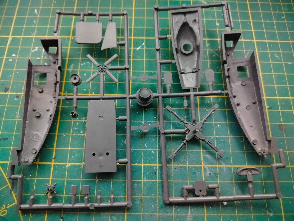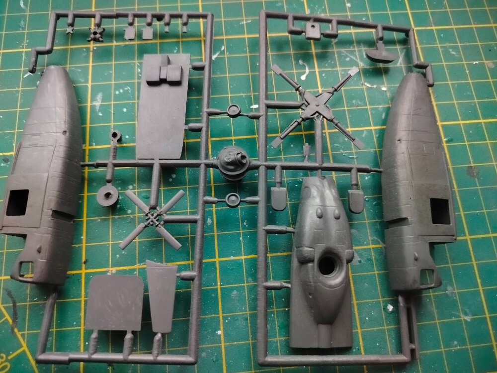 No i pyk. Kadłub sklejony. chyba trafiają mi się dobre wypusty SWORDa, bo po drobnym przeszlifowaniu, oskrobaniu, dopasowaniu, wszystko pasuje jej ulał. Minimalna ilość szpachli, i to też z mojej winy, zapomniałem dać płytek ustalających położenie polowek kadłuba względem siebie. Skrzydła i dolne panele na wcisk, jeszcze nie wklejone.6 punktów