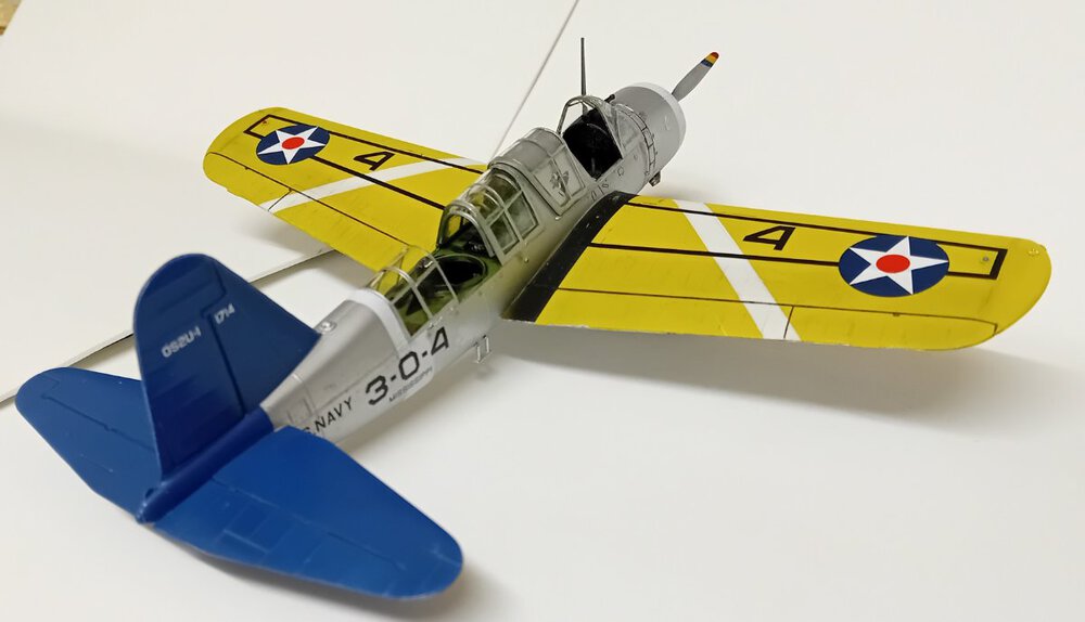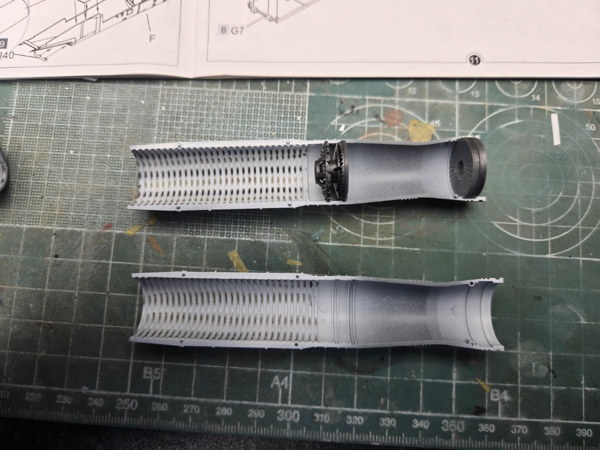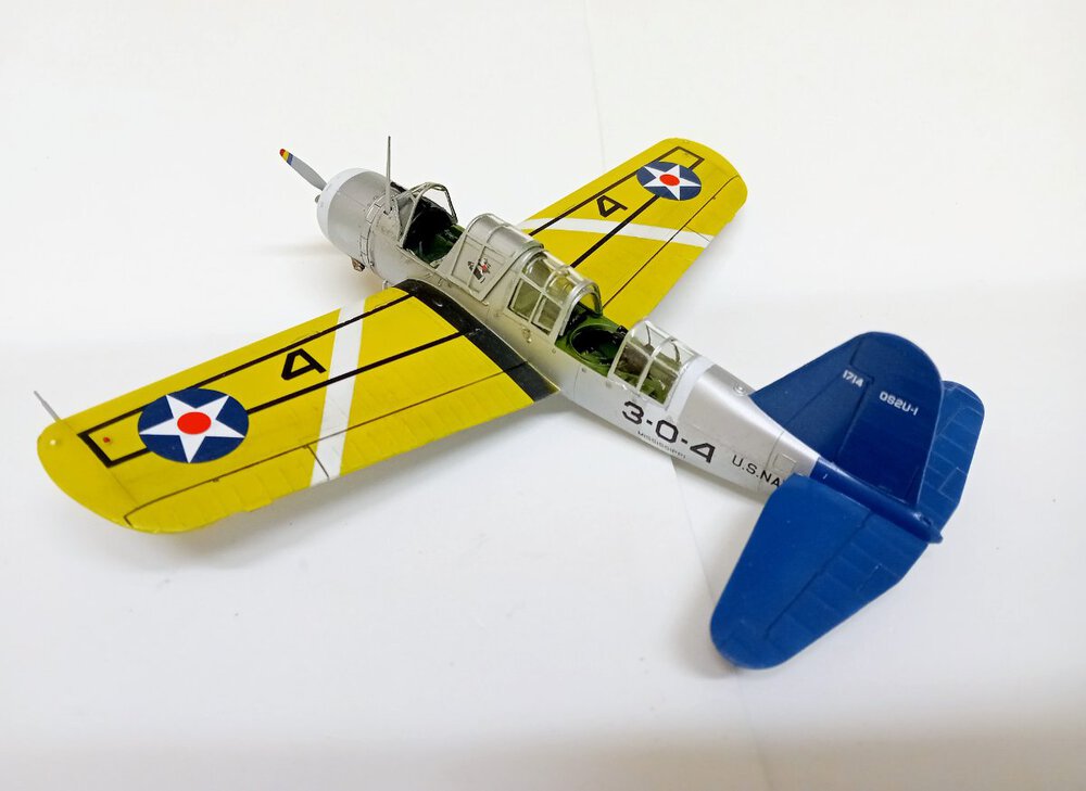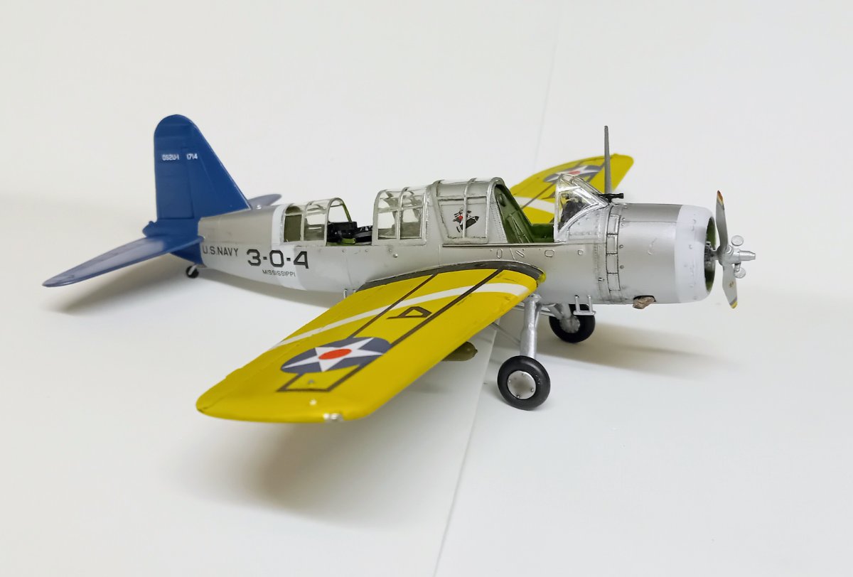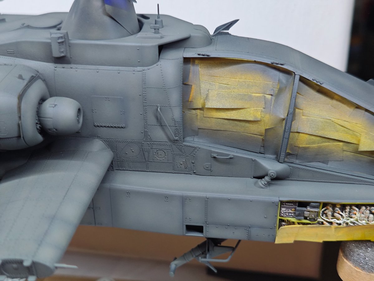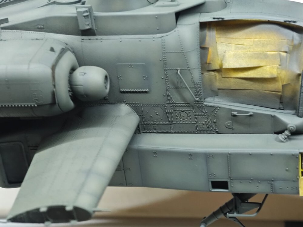 W końcu zamknąłem kadłub. Nie mogłem sobie odmówić aby złożyć na sucho go ze skrzydłami, wiatrochronem no i oczywiście eduardowskim łożem silnika dedykowanym do ichniego konika w wersji D. Jak widać da radę to spasować. Wnętrze kadłuba skrywa armowe części z plastiku, ichniejsze wydruki 3D oraz tablicę przyrządów od Yahu. Od siebie dodałem jedynie kilka drucików ołowianych imitujących instalację elektryczną.7 punktów