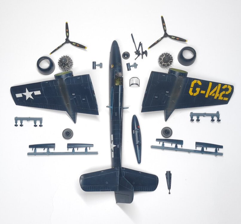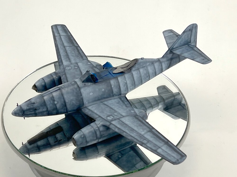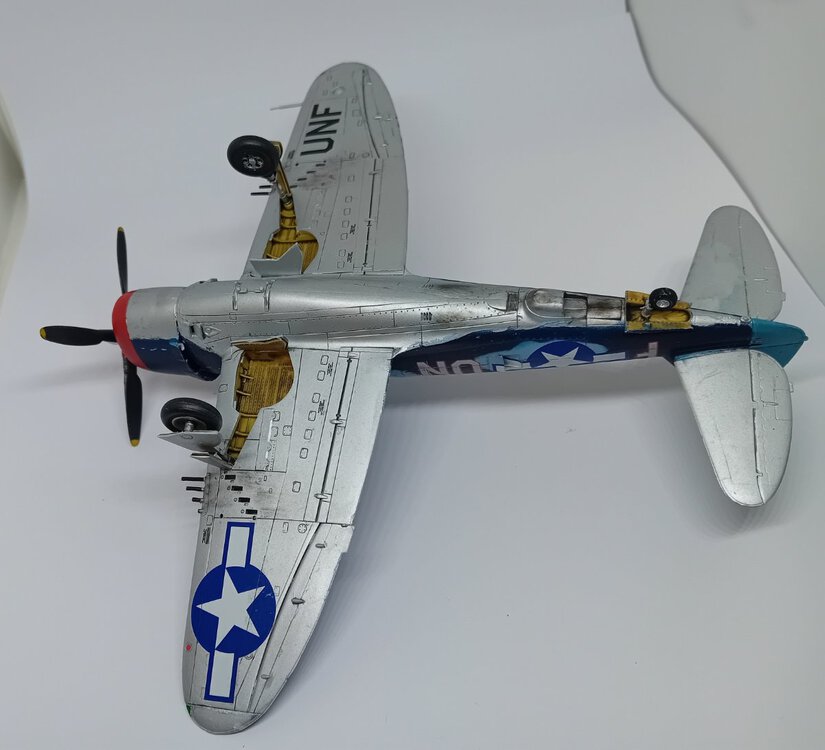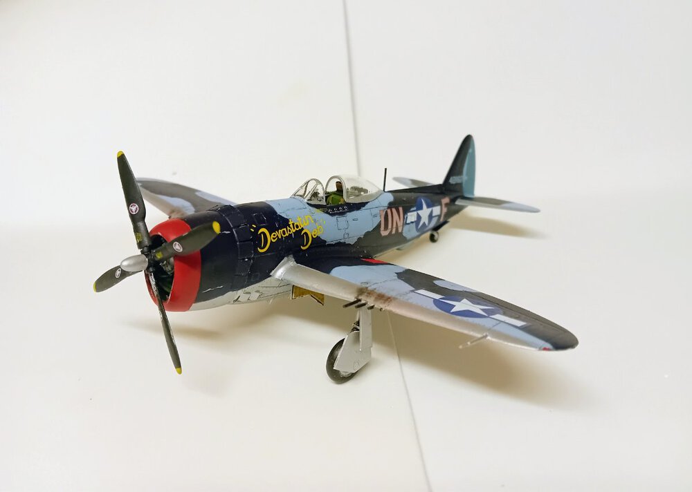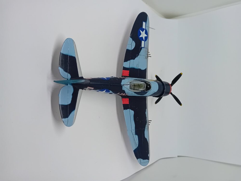 Samolot , na którym dwoch.pilotów uzyskało zwycięstwa nad Me-262 . John C. Fahringer i George Bostwick, obaj latali w 63 dywizjonie USAAF. Modelik Revella dobrze składalny, tylko trochę trzeba obrobić części z nadlewek. I pylony do zbiorników/bomb pod skrzydłami nie bardzo pasują do profilu skrzydła, ja w ogóle z nich zrezygnowałem, ale jak by komuś zależało, to trzeba popracować nad nimi. Reszta pasuje, choć słyszałem, że zdarzają się spore różnice jakości pomiędzy poszczególnymi zestawami. I nie mam pojęcia dlaczego niektórych zdjęć nie mogę dodać do galerii inaczej niż odwrócone "do góry kołami" Także sorry za ewentualny wytrzeszcz oczu,.9 punktów
