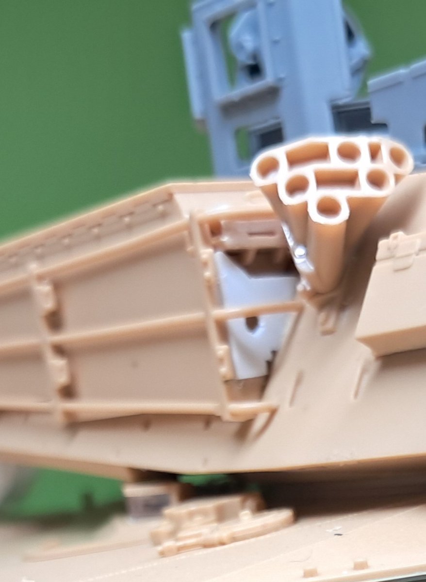 Dzień dobry, Jako, że dysponowałem unikalnymi kalkami do duńskich leopardów w Bośni postanowiłem skleić jeszcze jednego. Tutaj poprzedni: Tym razem baza modelu była już prawilna czyli MENG TS015 do której dedykowana była ta sama co poprzednio konwersja LF1282 Leopard 1A5DK1 od Legend. Wybrałem wersję dodatkowo wzbogaconą o trał przeciwminowy czyli wóz numer 16112 "too fast 4 you" Jak widać kalki srebrzą nie tylko u mnie, ale też na oryginale: Pług to żywiczna konwersja Perfect Scale Modelbau, która nie poraża detalem. Do tego był zestaw PE z Voyagera. Z zestawu Voyagera nie mogłem sobie jakoś poradzić ze sklejeniem wieloelementowej metalowej lufy więc zmówiłem jeszcze żywiczną z Panzer Art. Ta znów wymagała dużej ingerencji w wieżę, którą miałem już bardzo zaawansowaną. Ostatecznie na modelu lufa to miks tych dwóch zestawów. Gąsiennice plastikowe MENG, które poprzednio dobrze mi działały tym razem zupełnie się rozpadały więc pierwszy raz użyłem metalowych. Dodatkowo kupiłem jeszcze zestaw waloryzacyjny anten i wyrzutni granatów z Leopard Workshop. Karabin CMK P35008 MG 3 Machine Gun. Starałem się jakoś na bieżąco liczyć ile czasu siedziałem nad modelem zacząłem 1 listopada 24 do końca marca wyszło mi 70 godzin samej budowy . Czas mam tylko wieczorami gdy dzieci już śpią. Dalej liczenia godzin już nie prowadziłem, ale myślę, że co najmniej kolejne 30 zajęło mi malowanie. Budowę modelu skończyłem w piątek tuż przed Babarybą dodając flagę ONZ - która zresztą nie wyszła najlepiej - zdjęcia jeszcze przed dodaniem flagi. Czy warto było tyle czasu poświęcić, mam mieszane uczucia, ale przynajmniej udało się dostać pierwszy raz w życiu pieczątkę.5 punktów