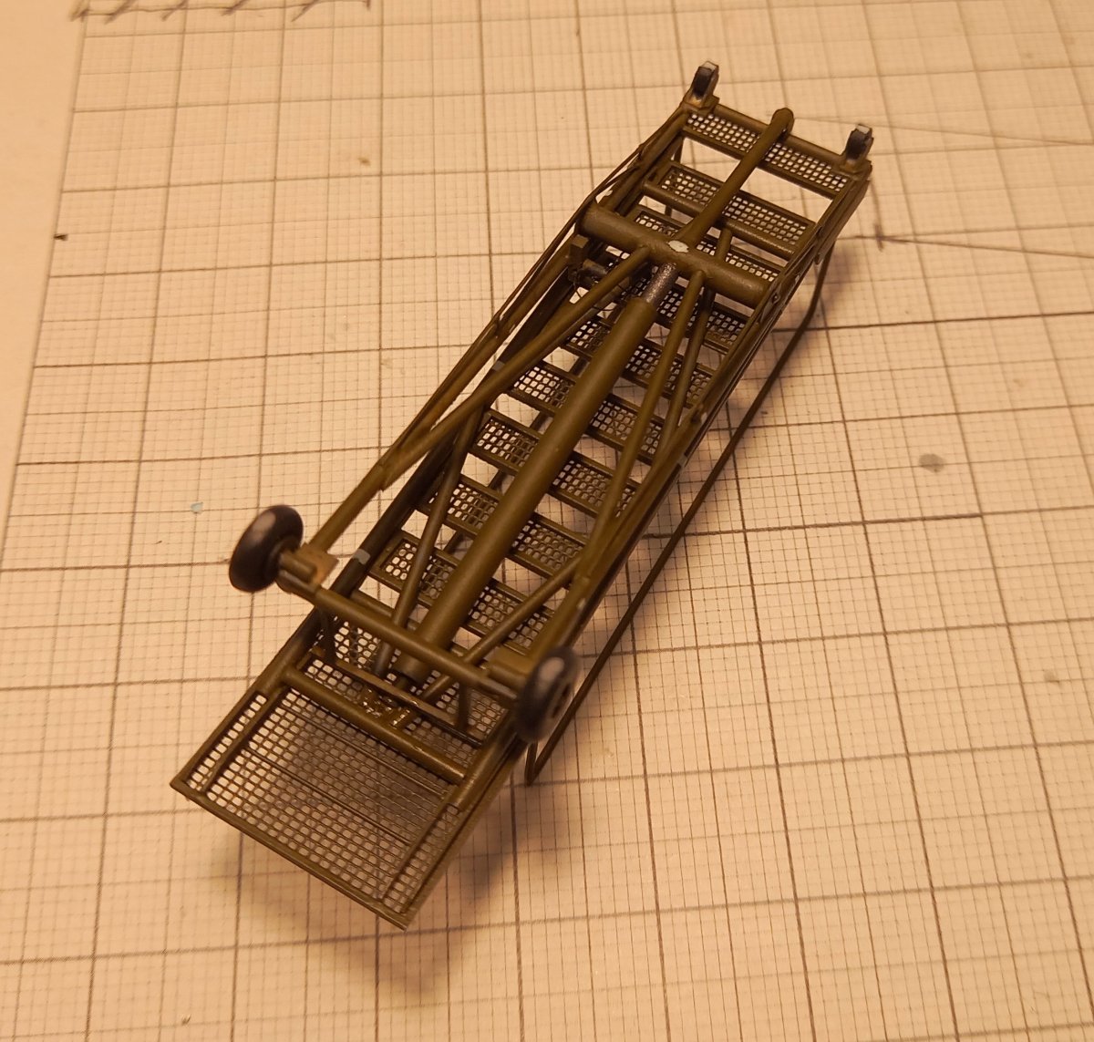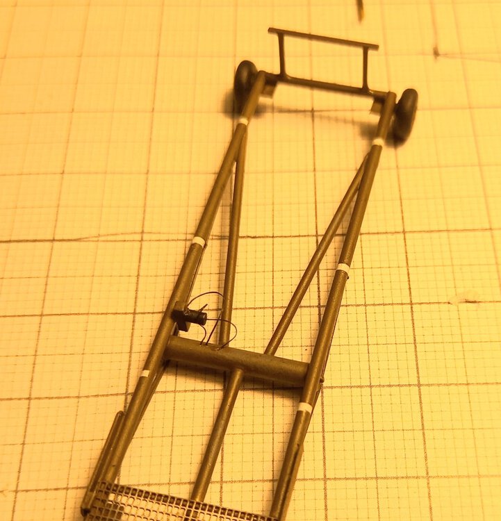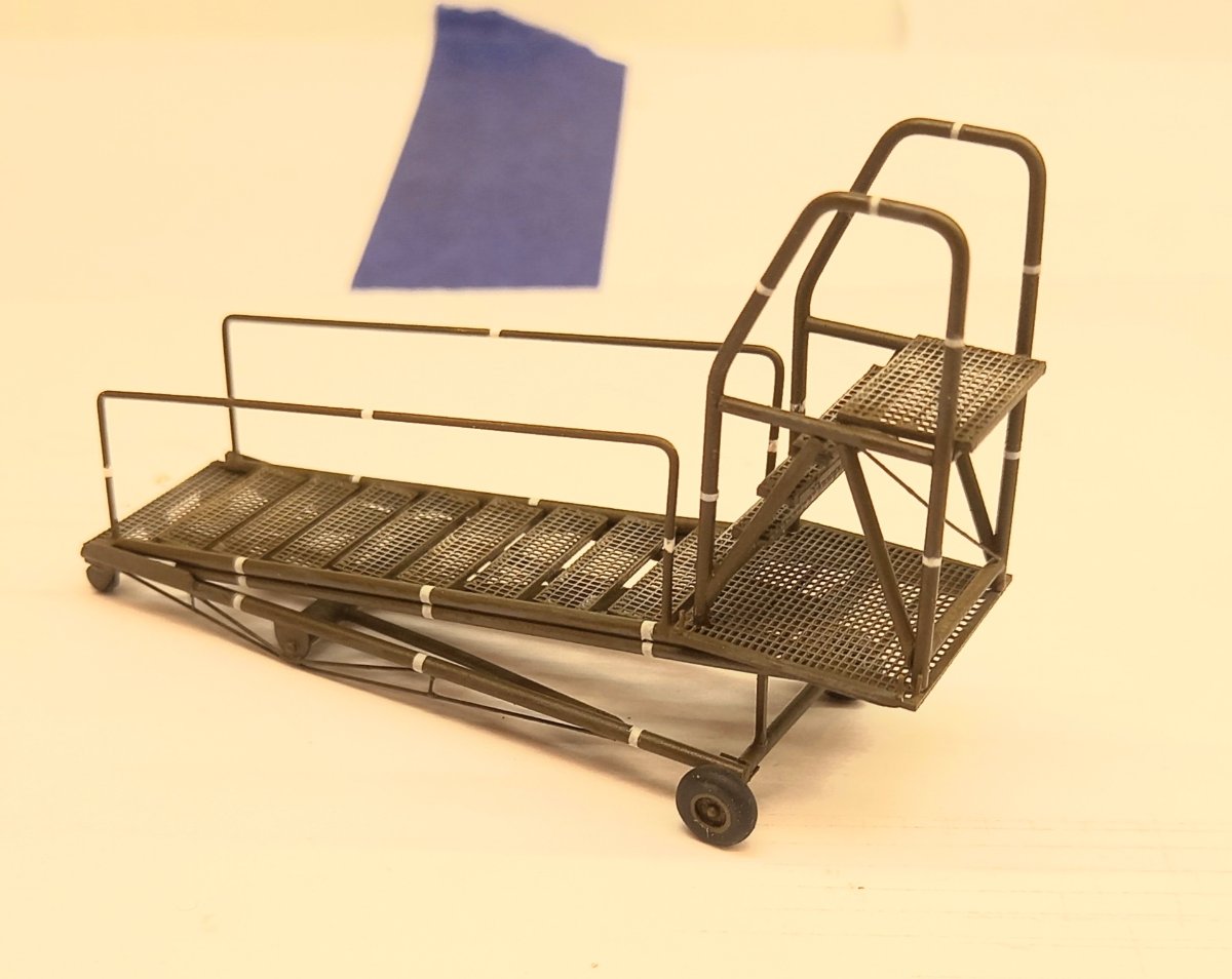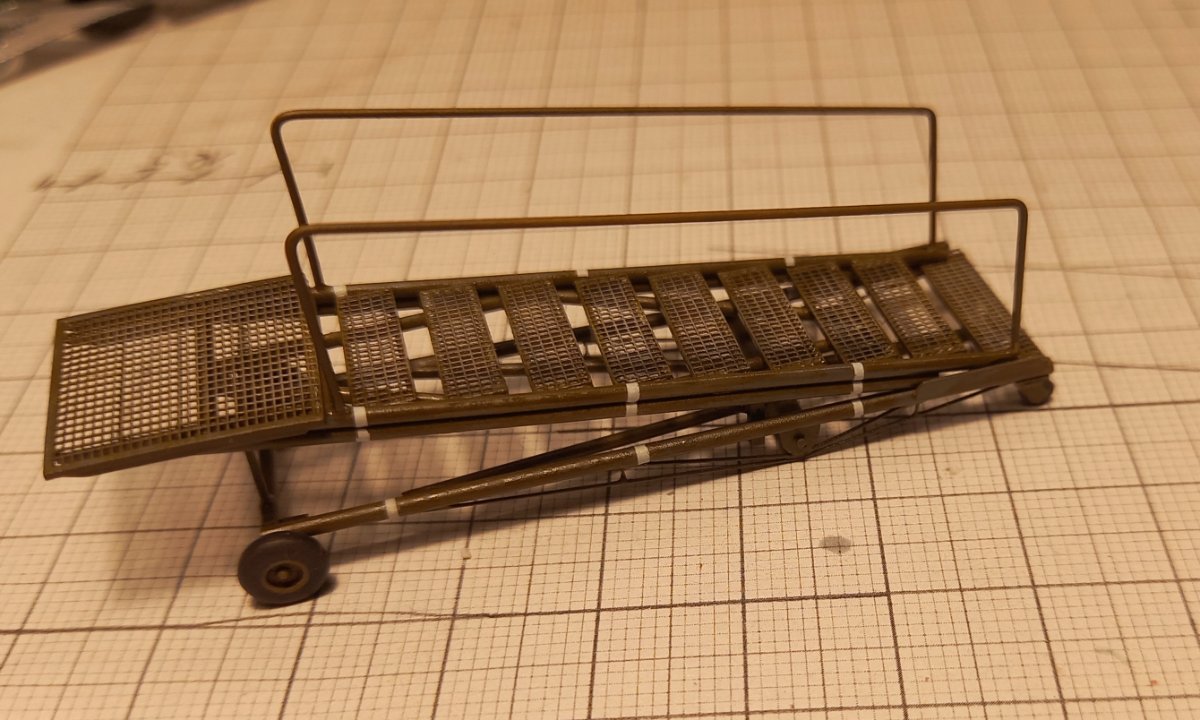 W czasie gdy wash na figurkach dosychał, zająłem się ponownie sprzętem lotniskowym. Postanowiłem dodać jeszcze wózek do transportu zbiorników . Przerobiłem też standardową przyczepę (taką samą jak ta z beczkami) dodając stelaż do przewozu zbiorników. Przyszedł też czas na ostateczne zmontowanie podestów B1 i C1 po uprzednim dorobieniu instalacji hydraulicznej do podnoszenia podestu. Złożyłem też przyczepę z beczkami, gaśnicę i szafkę narzędziową. A oto cały inwentarz przymierzony do dioramy:8 punktów
