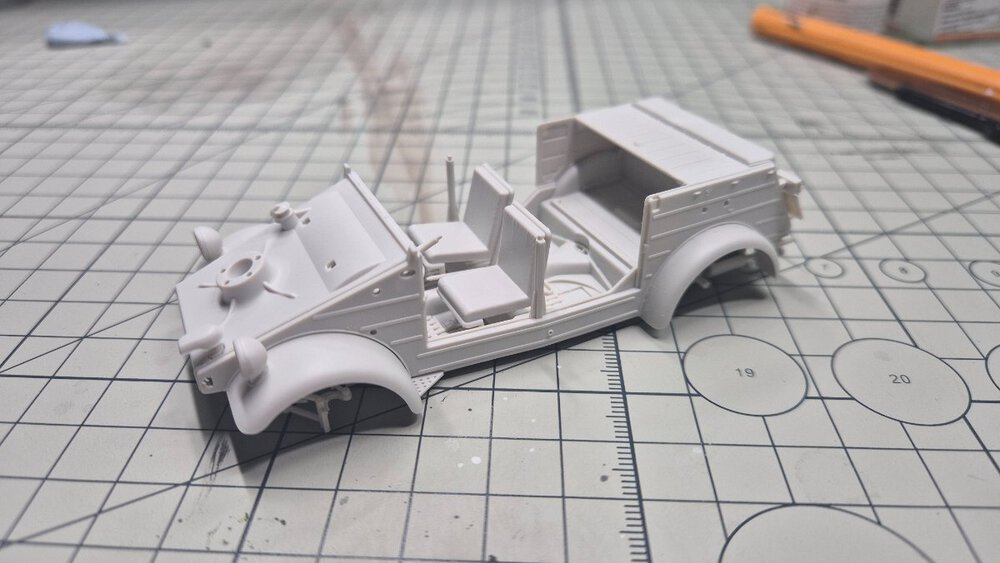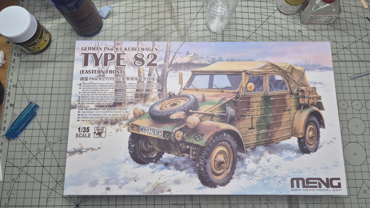 Tak mnie naszło, żeby sobie złożyć kubelwagena. Może go wcisnę na jakąś winietkę z Tygrysem... model od Menga, wygląda ładnie, instrukcja czytelna, części ładnie odlane. Może coś się da ulepić