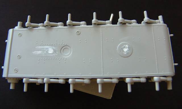 Markuz Napisano 24 Kwietnia 2011 Autor Share Napisano 24 Kwietnia 2011 Prace trwają. Powoli zalepiam wszystkie zbędne dziury i otwory. Wieża wykończona już na fest, na kadłubie jeszcze kilka elementów zostało. Następny etap to lepienie kółek i przysposobienie gąsek co by się nadawały do prezentacji (czytaj szpachla, szpachla i papier ścierny) Błotniki na razie na sucho bez kleju przymierzone. Lufy karabinów na razie nie wklejone żeby się nie połamały. Ciąg dalszy po powrocie ze świątecznego spacerku. Cytuj Odnośnik do komentarza Udostępnij na innych stronach More sharing options...