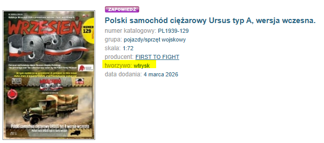 gumowy01 Napisano 23 Lutego 2016 Share Napisano 23 Lutego 2016 Taka informacja pojawiła się na Czeskim forum 034 -- Praga RV (Polish version with seats) 035 -- 2cm Flak 30 [iIRC two in the box] 036 -- 40mm wz.1936 Bofors (Polish version) 037 -- 10,5cm le.FH 18 038 -- Panzerkampfwagen 35(t) 039 -- Sd.Kfz.251/1 Ausf.A za http://www.network54.com/Forum/47210/thread/1456198583/last-1456198583/View+Thread Cytuj Odnośnik do komentarza Udostępnij na innych stronach More sharing options...