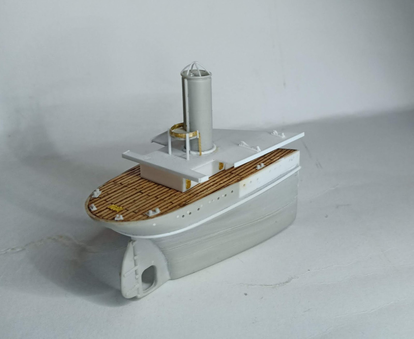 laskonogi Napisano 4 Kwietnia 2019 Autor Share Napisano 4 Kwietnia 2019 (edytowane) Dzięki za miłe słowo Zadka robótka cześć dalsza Na początek pokład zrobiłem jak zalecano - pomazałem lakierem, następnie rozcieńczony olej miałem umbre paloną, potem pomazałem szarym ale też nie do końca to było to.... przypomniałem sobie iż kiedyś zakupiłem z AK zestaw do statków. Mają tam cos co sie zowie dark wash for wood deck => pomazałem, poczekałem kilka chwil a następnie wytarłem do sucha wacikiem, nie wiem czy nie za jaskrawo to wyszło - jak to stonować ? cokolwiek daje w dużej mierze wchodzi w "szpary". Dodałem na pokładzie knagi, jakąś klapę. Na ściankach dałem drzwi i "bulaje". Komin dostał czapkę ale no nie wiem zostawić ? Dorobiłem także platformę na działko, oraz podpory pod szalupy. Co by sie trzymać kąta przecięcia wypadło także na jedną z szalup. Oczywiście dostaną odpowiednie przykrycie z masy plastycznej Burty dostały bulaje i odbojnice. Rufa ni jak nie jest jak powinna byc ale tak już zostanie Babole - za wysoki komin i tego już nie poprawię ... Do zastanowienia: jak stonować pokład, na bardziej zniszczony. Jak w tej skali oddać trójkątne profile przy "kolumnach wzdłuż pokładu = jakieś sugestie a no i fotki rzeczony specyfik no i stan obecny Edytowane 4 Kwietnia 2019 przez laskonogi Cytuj Odnośnik do komentarza Udostępnij na innych stronach More sharing options...
