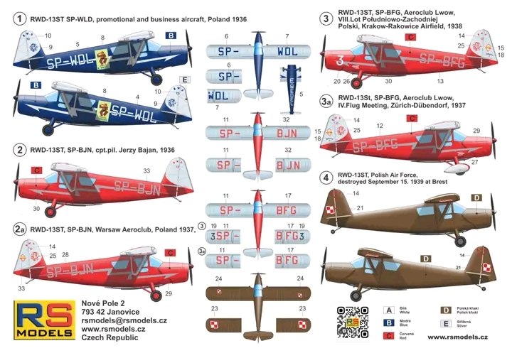 mig Napisano 21 Lutego Share Napisano 21 Lutego RS Models zmienia częściowo malowania w RWD-13 92301 (2026) — RWD-13S/ST Poland — zmienione malowania RWD-13ST, SP-WLD, Fabryka Czekolad E. Wedel, Spółka Akcyjna, Warszawa, Polska 1936 RWD-13ST, SP-BJN, kapitan Jerzy Bajan, Warszawa 1936 RWD-13ST, SP-BJN, Aeroklub Warszawski, Warszawa 1937 RWD-13ST, SP-BFG, Aeroklub Lwowski, VIII. Lot Południowo-Zachodniej Polski, Kraków-Rakowice, 16–17 maja 1937 RWD-13ST, SP-BFG, Aeroklub Lwowski, IV. Internationales Flugmeeting Zürich, Zürich-Dübendorf, 23 lipca – 1 sierpnia 1937 RWD-13ST, Polish Air Force, zniszczony 15 września 1939 w Brześciu 1 Cytuj Odnośnik do komentarza Udostępnij na innych stronach More sharing options...