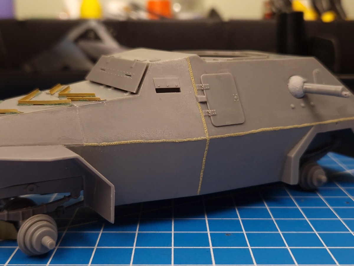 MaciejW Napisano 7 Marca Autor Share Napisano 7 Marca 7 godzin temu, Endrju napisał: W jakich go planujesz malunkach? Znalazłem takie schematy w internecie Raczej skłaniam się do jednokolorowej opcji w olive drab, ale ostateczna decyzja jeszcze nie zapadła. 7 godzin temu, Endrju napisał: Wygląda to tak jakby spawy wyszły ponad powierzchnię pancerza a to chyba tak nie było Zgadza się miejscami wychodzą, nie miałem nerwów by żłobić plastik pod spawy, zwłaszcza na takich zagięciach. Ogólnie starałem się uzyskać jak najdelikatniejsze spawy miejscami wyszło lepiej, miejscami gorzej. Jak już wspominałem ten model to rozbieg/ plac zabaw przed powrotem do poważniejszych projektów. Cytuj Odnośnik do komentarza Udostępnij na innych stronach More sharing options...