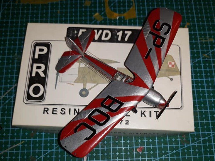 Jeśli można jeszcze uzupełnić wątek, to Pro Models poza przedstawionym tu RWD-13 wydało też RWD-17 i RWD-17W. Deklarowana skala 1/72 w rzeczywistości jakieś 1/77 i co ciekawsze wersja W nieco mniejsza. Modele bez kalek. Niestety model złożyłem, więc nie mam in-boxa. Poniżej zdjęcia gotowego z pudełkiem.