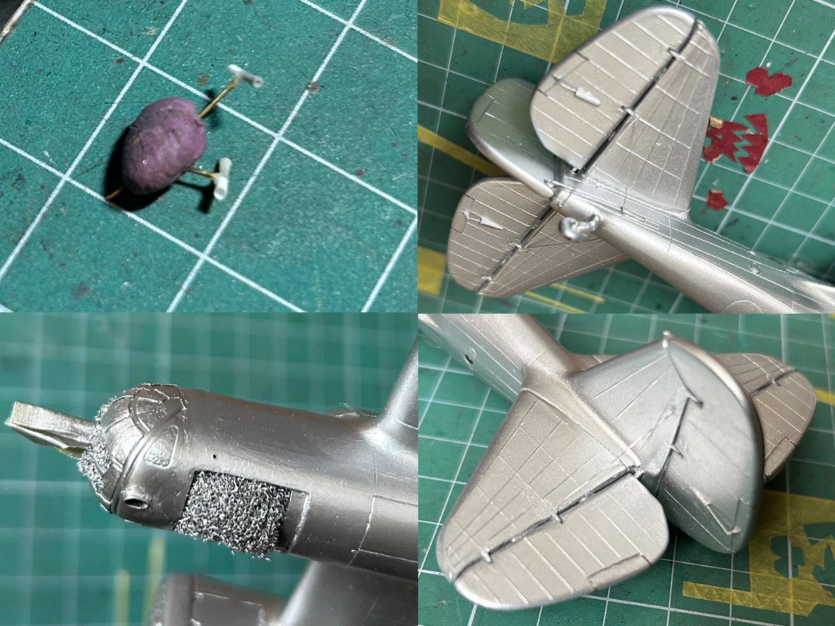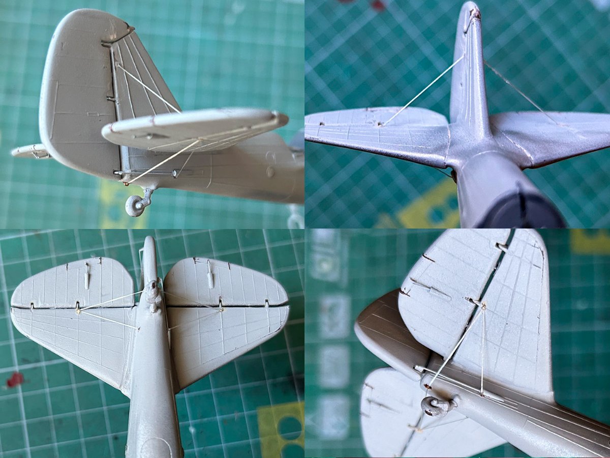 Powoli zbliżam się do lakierni SB-2. Zrobiłem kilka odciągów na statecznikach. W celach eksperymentalnych wypróbowałem trochę elastycznej nici. Powiem tak: moje wrażenia są mieszane: tak, jest elastyczna i dobrze się rozciąga. Jest jednak płaska. A jeśli potrzebujesz czegoś cieńszego, będzie to widoczne. Po drugie, jest wygodna w użyciu, gdy potrzebujesz jej w małych ilościach: możesz wtedy przygotować wycinki o tej samej grubości (jeśli trzeba ją rozwarstwić). Stale ma tendencję do rozwarstwiania się – trzeba to brać do uwagę i zapobiegać temu – na przykład zabezpieczając jej koniec w CA. Poza tym jest w porządku. Chociaż w moim przypadku, ciągniona ramka wlewowa wyglądałby prawdopodobnie bardziej naturalnie.