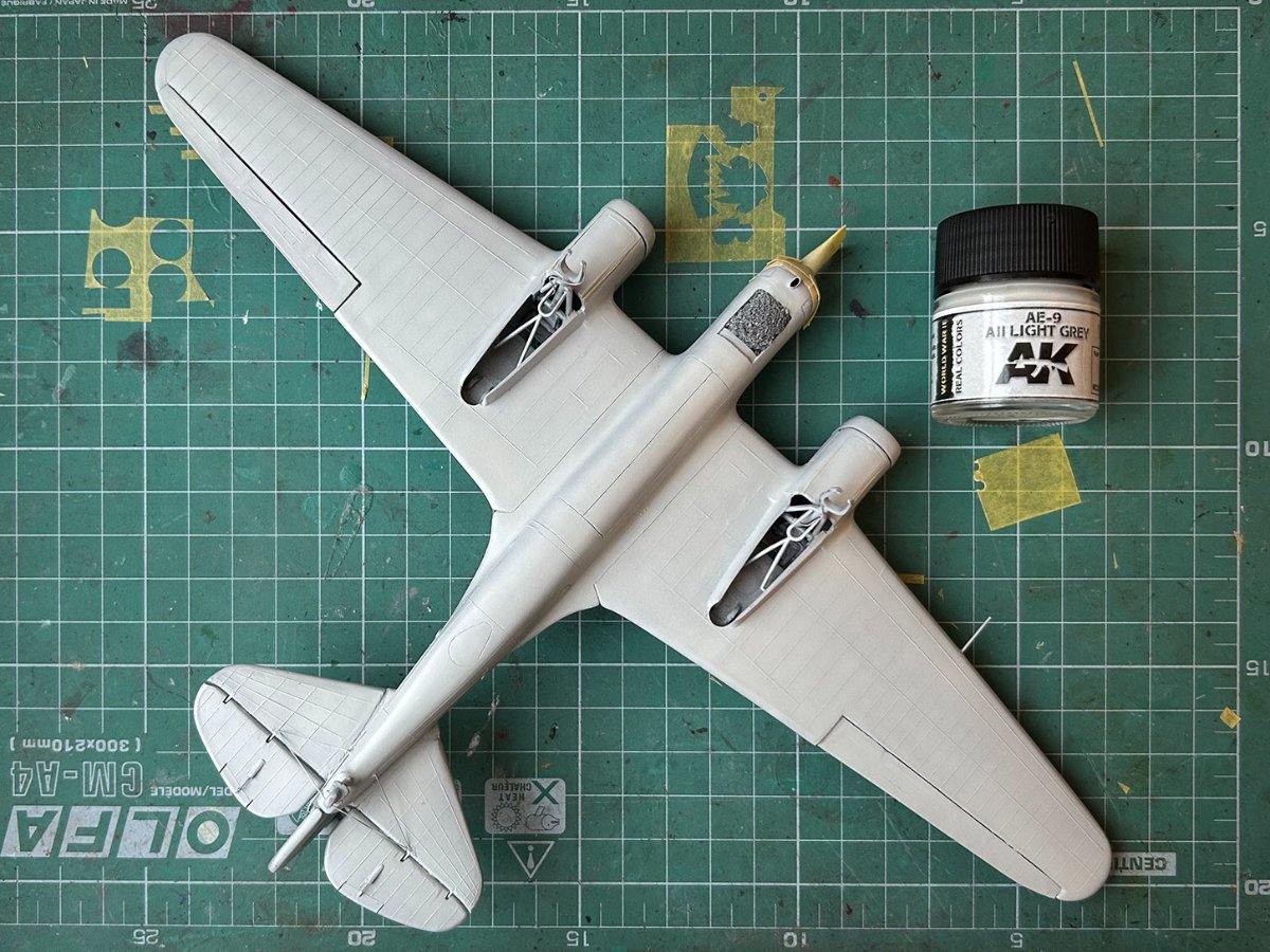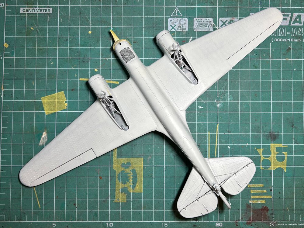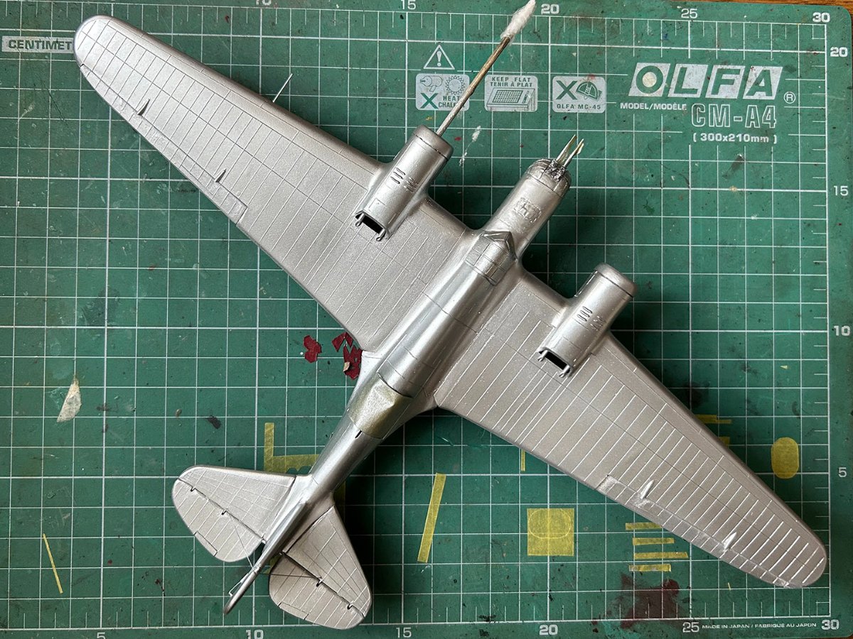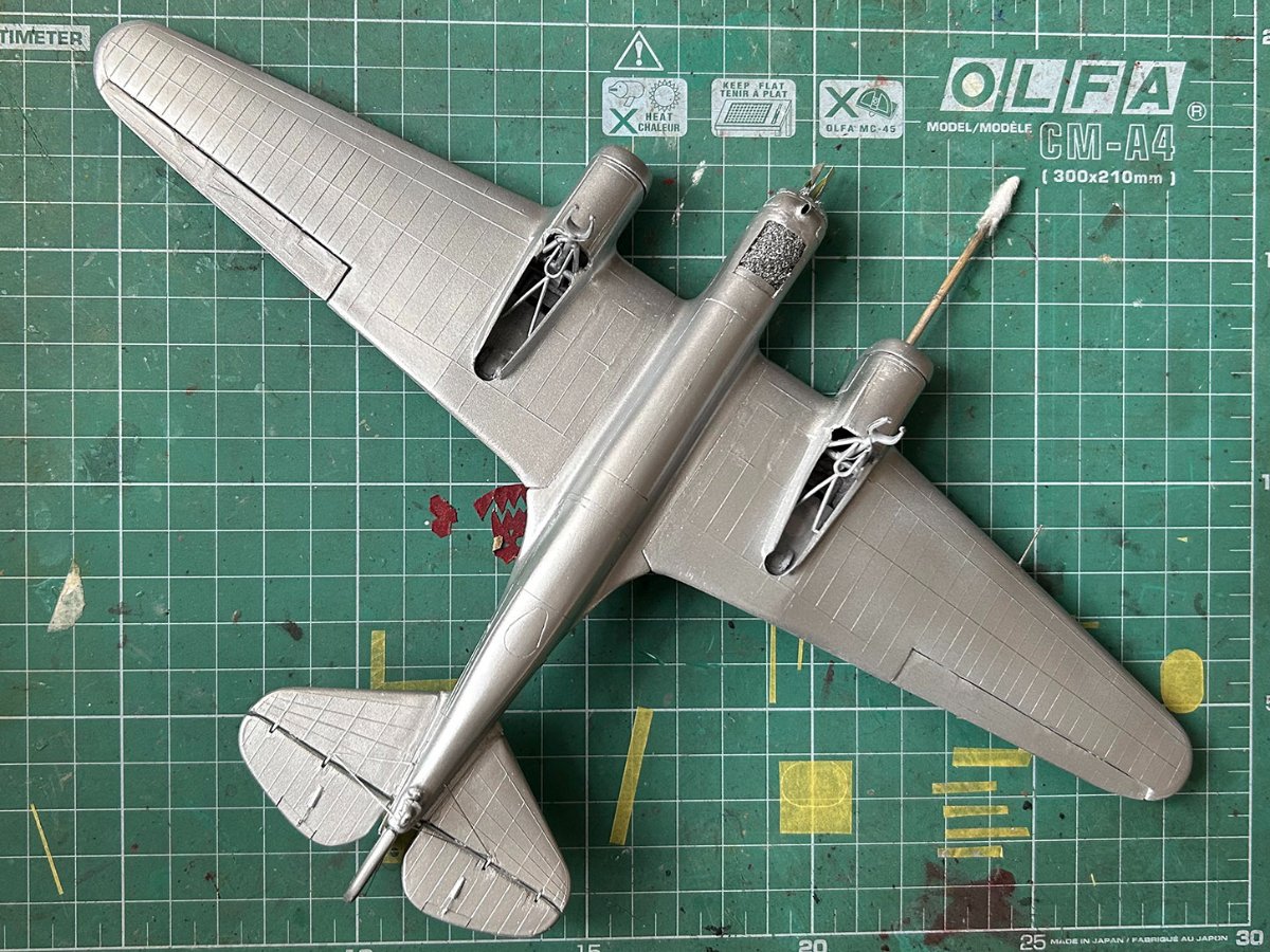 Zamontowałem karabiny maszynowe i wyrzutnik łusek w kokpicie nawigatora. Skleiłem owiewkę kabiny (żywicą dwuskładnikową) i dopasowałem ją do kadłuba (szpachlówką Tamiya). Nie ma nic do pokazania, ale zajmuje to dużo czasu. :stolek: