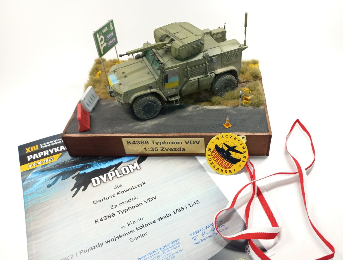 Kowalec222 Napisano 3 Września 2024 Autor Share Napisano 3 Września 2024 Dziękuję za miłe słowa, w środę na spontanie zgłosiłem Typhoona na Biennale Modelarskie w Świdnicy, a żeby nie wystawiać "golasa" na stole trzeba było podstawek stworzyć. W czwartek i piątek na szybko z tego co było pod ręką wystrugałem no i jest. Szału ni ma, ale wstydu chyba też nie. 30 minut temu, bulik58 napisał: udało się zbudować perfekcyjny model i super podstawkę Dzięki, ale do perfekcji to wiele mu brakuje 37 minut temu, bulik58 napisał: Szkoda iż nie dołożyłeś jakiegoś figuranta Teraz nie było czasu, ale może jeśli uda mi się jakoś sensownie zmalować to będzie też ludzik. 39 minut temu, bulik58 napisał: czym maziałeś szyby na zielono Szyby psiukane clearem od Tamiya. Cytuj Odnośnik do komentarza Udostępnij na innych stronach More sharing options...