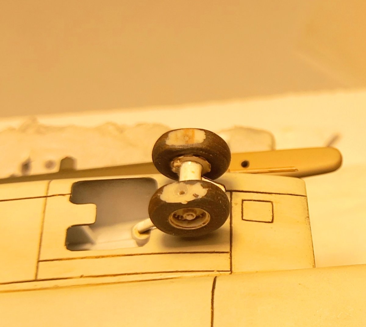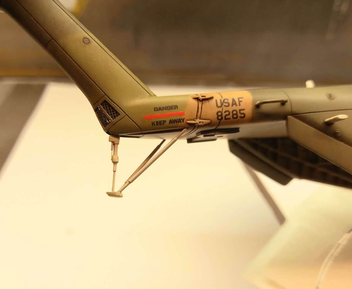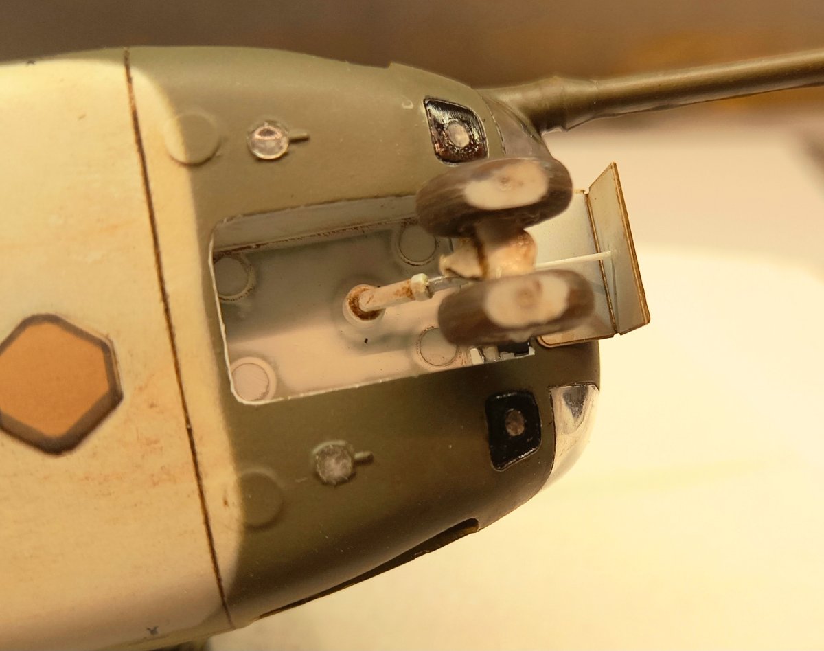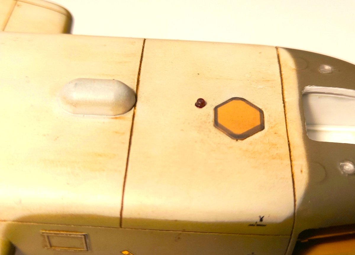 jacmin Napisano 21 godzin temu Autor Share Napisano 21 godzin temu Minął świąteczny zapiątek, podczas którego sporo udało się zrobić. Poprawiłem malowanie podstawki ( drobne odpryski farby, przetarcia podkładu) i położyłem pigment Vietnam Earth. Nie zmienił jakoś radykalnie jej wyglądu, ale wprowadził delikatną czerwonawą barwę, która nieźle się komponuje. Przyszedł również czas na wklejanie różnych drobiazgów. Uzupełniłem okna kabiny pilotów o imitację mechanizmu zamykającego i klamki: Przygotowałem też koła do wklejenia modelu na podstawkę. Zwykle mocowania robię przy pomocy igieł lekarskich lub stalowego drutu. Najpierw delikatnie nawiercam koło, a krawędź otworu frezuję w "lejek". Następnie wnętrze otworu smaruję Poxipolem i wklejam docięty fragment igły. Poxipol zastyga przez 10 min, mam więc sporo czasu na wklejenie wszystkich 3 igieł i spokojną korektę ich pionowości. Na koniec, w wyfrezowany lejek wpuszczam kroplę kleju CA. Dzięki temu frezowi na powierzchni stykającej się z podstawką nie tworzy się żadna "górka" powodująca odstawanie opony od podłoża. Po wklejeniu igieł model ustawiam na podstawce i małym pędzelkiem z czerwoną farbą stawiam kropki na podstawce tuż przed każdą igłą. W zaznaczonych miejscach wiercę otwory i frezuję "lejki". Gdy model będzie gotowy, operację klejenia powtórzę dla otworów w podstawce. A tymczasem zająłem się wklejaniem różnych drobiazgów. Na pierwszy ogień poszły okna kabiny pilotów i pokrywy przedziałów awioniki. Wkleiłem je na CA a siłowniki wykonałem drutu 0,2mm. Ostatnią rzeczą, którą wczoraj wkleiłem były pokrywy silnika wraz z siłownikami. Za dwa tygodnie model pójdzie na podstawkę i zasadnicze prace zostaną zakończone. Pozostanie kosmetyka, sprzęt lotniskowy i figurki. 6 Cytuj Odnośnik do komentarza Udostępnij na innych stronach More sharing options...