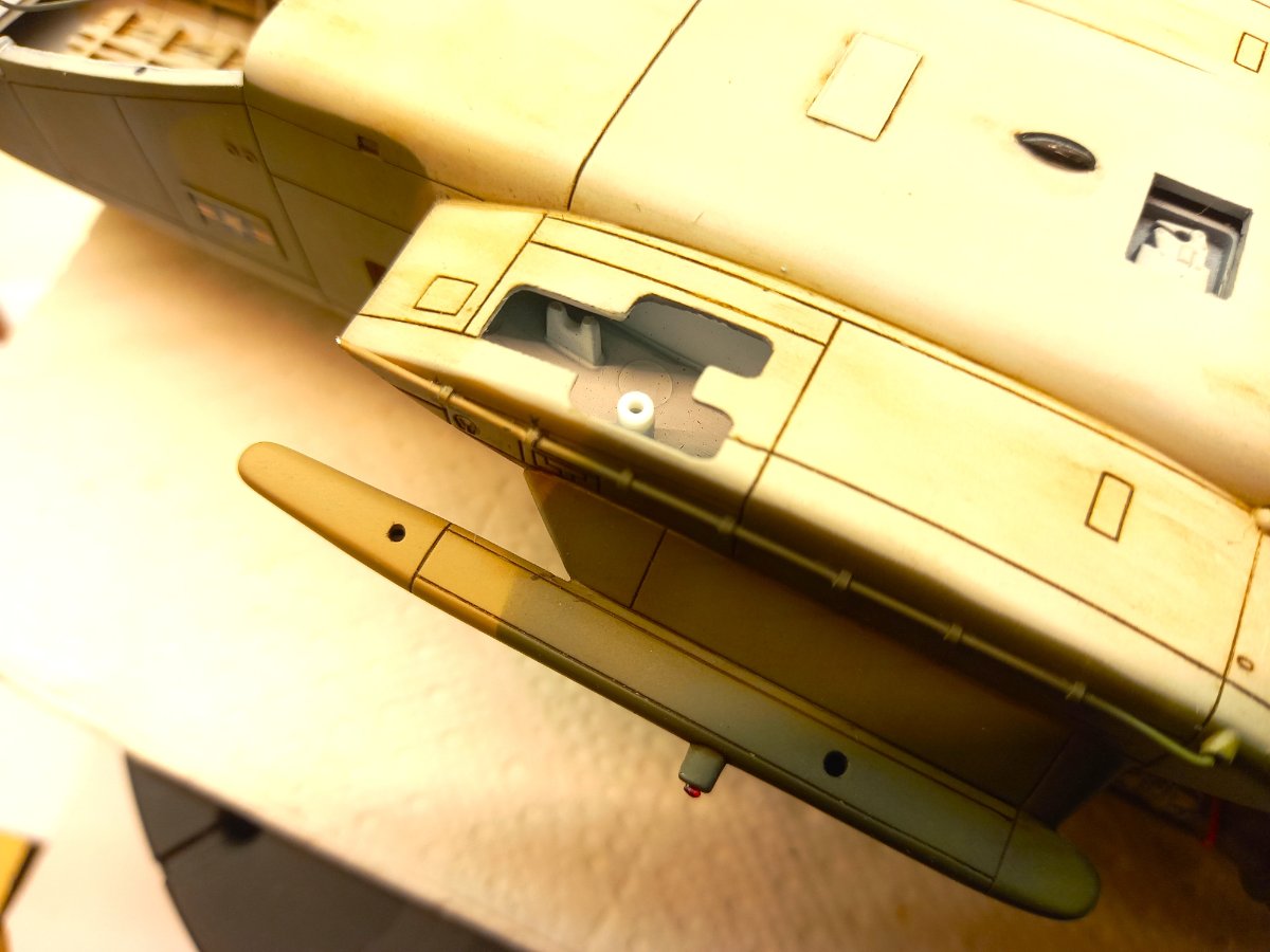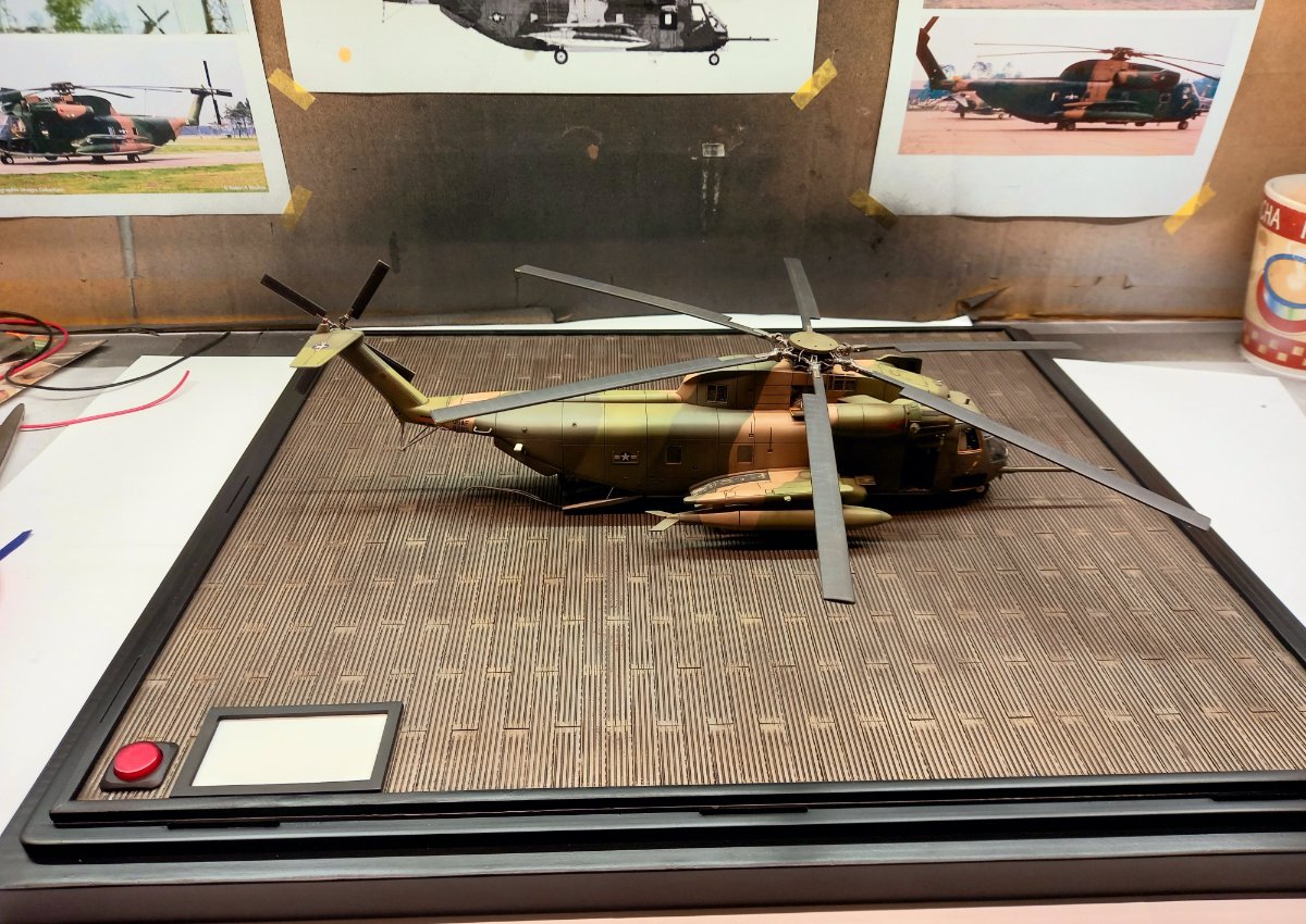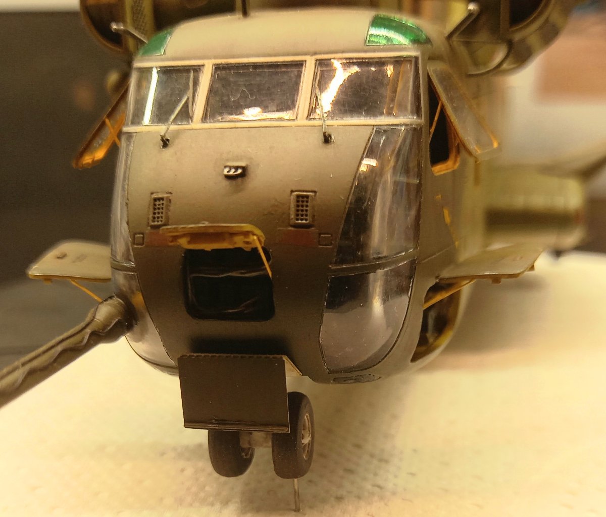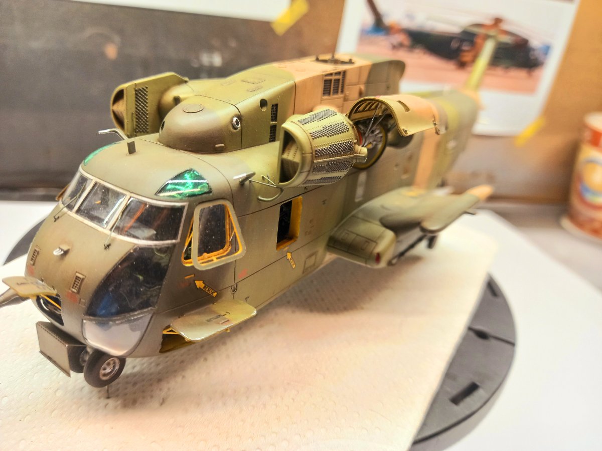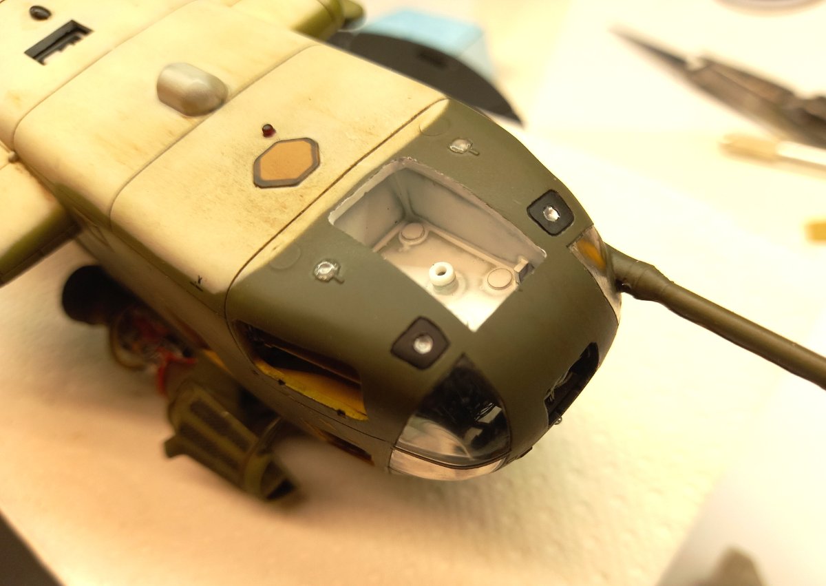 jacmin Napisano 22 Września Autor Share Napisano 22 Września (edytowane) W oczekiwaniu na wyżej wspomniany klej UV zacząłem uzupełniać model różnymi drobiazgami. Pomalowałem zielonym clearem górne okna kabiny pilotów: Wkleiłem też wciągarkę (na razie bez haka i reflektora) razem z instalacją, oraz mocowania filtrów EAPS wraz z przewodami sterującymi. Uzupełniłem również kadłub światłami pozycyjnymi na ogonie , spodzie i sponsonach: Przy okazji przymierzyłem podwozie i okazało się, że żeby golenie po wklejeniu były pionowe, zarówno we wnękach podwozia głównego jak i na nosie, należy wkleić 1,5 mm grubości krążki: Ponieważ z Kraju Środka dotarła gablota, sprawdziłem jak to będzie wyglądało po złożeniu. Gablota ma wymiary 35x40x15cm: Ostatnie zdjęcie przedstawia gumki, którymi blokuje się formatki gabloty. Ja ich nie użyję i formatki pokleję klejem do plexi. Myślę, że zeszlifuję trochę zaczepy, żeby tak nie wystawały. Teraz będę już mógł układać nawierzchnię miejsca postojowego. Ale to dopiero za 2 tygodnie. Edytowane 22 Września przez jacmin 5 Cytuj Odnośnik do komentarza Udostępnij na innych stronach More sharing options...