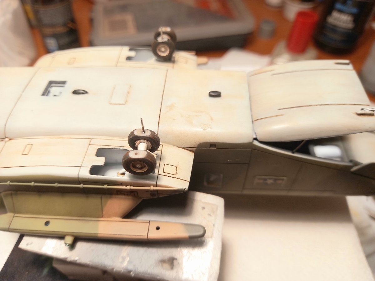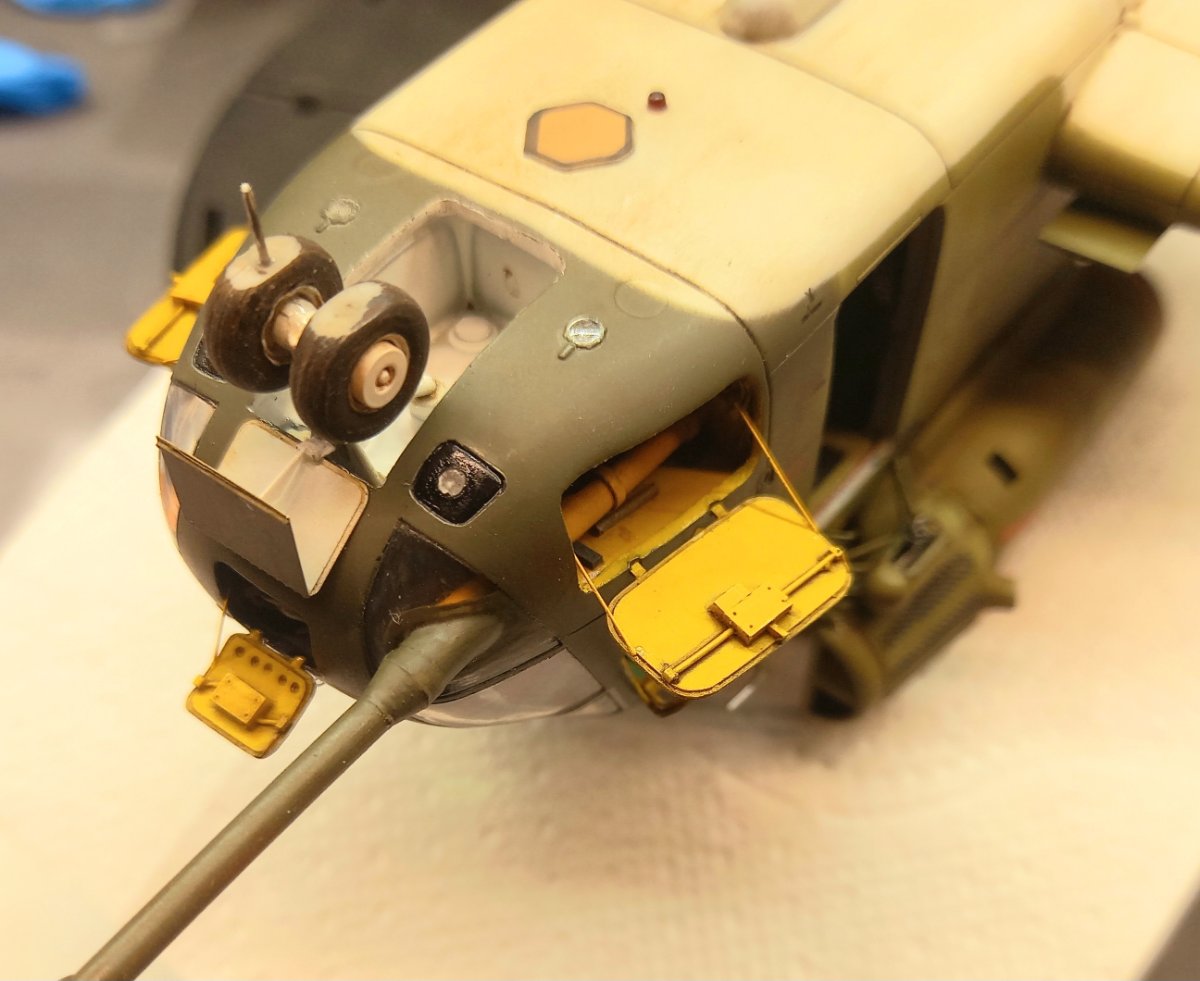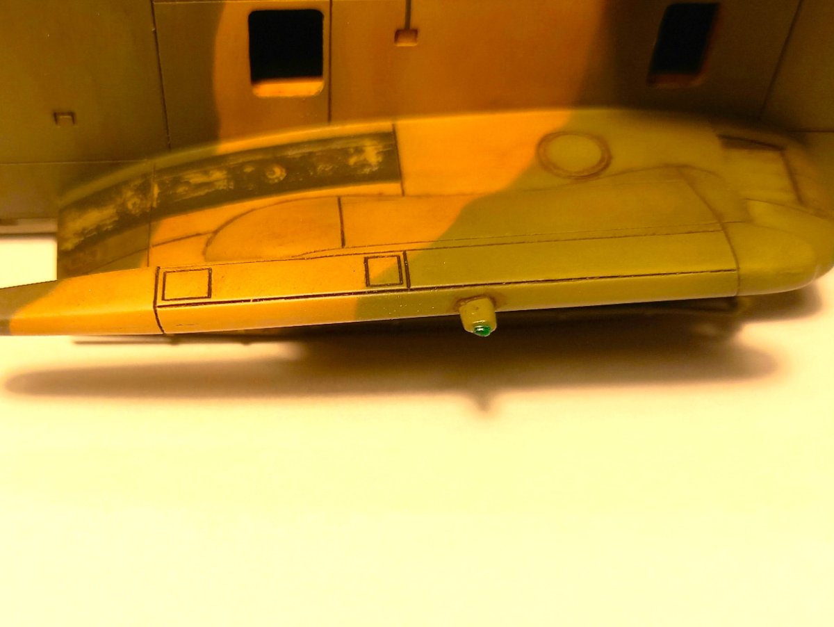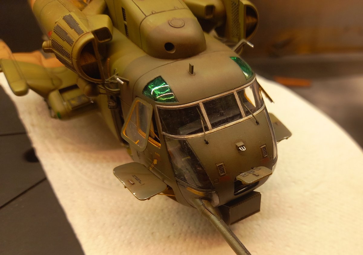 jacmin Napisano 22 Września Autor Share Napisano 22 Września (edytowane) W oczekiwaniu na wyżej wspomniany klej UV zacząłem uzupełniać model różnymi drobiazgami. Pomalowałem zielonym clearem górne okna kabiny pilotów: Wkleiłem też wciągarkę (na razie bez haka i reflektora) razem z instalacją, oraz mocowania filtrów EAPS wraz z przewodami sterującymi. Uzupełniłem również kadłub światłami pozycyjnymi na ogonie , spodzie i sponsonach: Przy okazji przymierzyłem podwozie i okazało się, że żeby golenie po wklejeniu były pionowe, zarówno we wnękach podwozia głównego jak i na nosie, należy wkleić 1,5 mm grubości krążki: Ponieważ z Kraju Środka dotarła gablota, sprawdziłem jak to będzie wyglądało po złożeniu. Gablota ma wymiary 35x40x15cm: Ostatnie zdjęcie przedstawia gumki, którymi blokuje się formatki gabloty. Ja ich nie użyję i formatki pokleję klejem do plexi. Myślę, że zeszlifuję trochę zaczepy, żeby tak nie wystawały. Teraz będę już mógł układać nawierzchnię miejsca postojowego. Ale to dopiero za 2 tygodnie. Edytowane 22 Września przez jacmin 5 Cytuj Odnośnik do komentarza Udostępnij na innych stronach More sharing options...