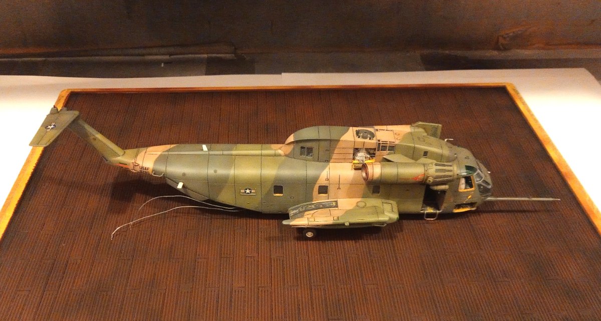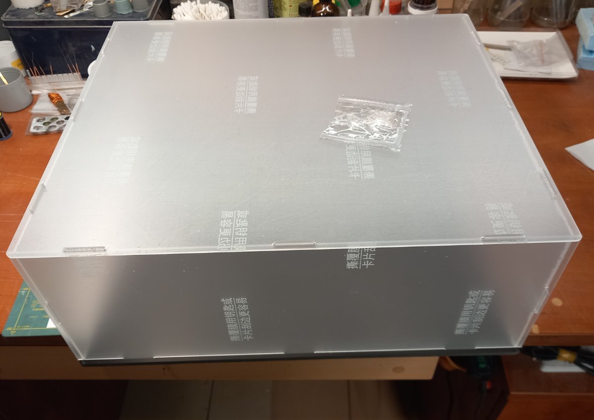 jacmin Napisano 27 Października Autor Share Napisano 27 Października (edytowane) Dzięki temu, że mój znajomy przygotował mi płytę meblową, mogłem zakończyć podstawkę pod helikopter. Płyta była mi potrzebna, żeby w jej grubości ukryć pojemnik na baterie i wyłącznik. Musiałem wykonać w niej otwory na wspomniany osprzęt. Normalnie zrobiłbym to frezarką lub wyrzynarką, ale pechowo nie miałem niczego takiego pod ręką, więc skończyło się na otwornicy i tarniku. Znajomy nie miał czarnej płyty, która pasowałaby najbardziej więc musiałem ją pomalować. Czarny primer Mr. Hobby w sprayu sprawdził się doskonale. Pozostało pokleić plexi. I tu opiszę swój patent, który być może komuś się przyda. Zawsze miałem kłopot z czystością klejenia takich elementów. Przez większość swojej modelarskiej działalności gabloty robiłem ze szkła i dopiero wielkość dioramy z USS Intrepid ( https://modelwork.pl/topic/41838-uss-intrepid-1350-trumpeter/#comment-945883 ) zmusiła mnie do wypróbowania lżejszej alternatywy. Nawet z Plexi ciężko to podnieść a ze szkłem po prostu sobie tego nie wyobrażam. Ale do brzegu. Trudność sprawiało mi takie naniesienie silikonu, żeby nie było wypływów, a spoina była równomierna. Wymyśliłem pewien sposób który sprawdza się zarówno dla szkła jak i dla plexi. Polega na oklejenia miejsca naniesienia kleju taśmą malarską (4 warstwy naklejone jedna na drugą) tak, żeby powstało zagłębienie na klej wysokości ok. 0,5mm. W tak przygotowane zagłębienie nanosimy klej z lekkim naddatkiem i ściągamy go czymś płaskim po krawędziach taśmy. Po zerwaniu taśmy mamy ładny, równy wałek z kleju o grubości 0,5mm. Teraz wystarczy złożyć ze sobą elementy i docisnąć. Wypływ jest minimalny i do tego równy na długości i o to chodziło. Gablota schnie, a ja mogłem się zająć olbrzymem. Wkleiłem uchwyty pomagające przy wchodzeniu na helikopter oraz podest serwisowy na sponsonie Po wklejeniu siłowników rampy mogłem wkleić samą rampę. Siłowniki wykonałem jako teleskopy (igła lekarska w innej igle) i po zamontowaniu rampy ich końcówki wysunąłem i wkleiłem we właściwe miejsca. Dziś rano przyszedł mail od znajomego ze Stanów i już wiem, że kabel zasilający miniguna muszę przemalować na czarno. W tym okresie nie używali czerwonych. Będzie to nieco karkołomne ale powinno się udać. Postanowiłem przymierzyć mojego olbrzyma do podstawki, na razie "na sucho". Zdążyłem jeszcze wykonać otarcia na łopatach i trzeba było kończyć działalność. Ciąg dalszy tradycyjnie za tydzień. Edytowane 27 Października przez jacmin 10 Cytuj Odnośnik do komentarza Udostępnij na innych stronach More sharing options...