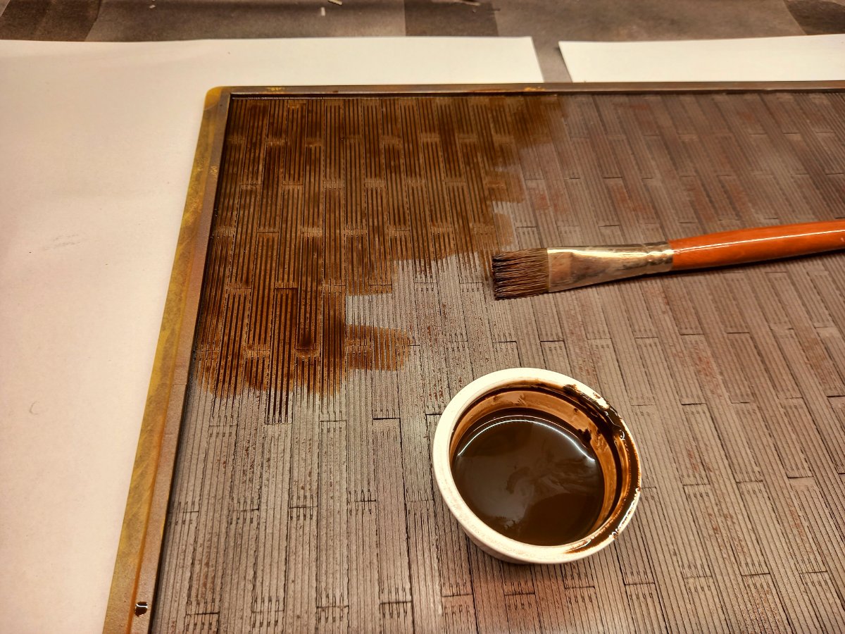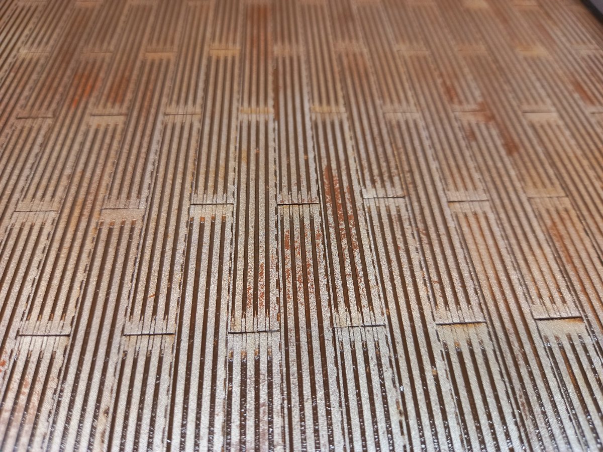 jacmin Napisano 13 Października Autor Share Napisano 13 Października A co na placu boju? Dokończyłem układanie nawierzchni "stojanki", zagruntowałem i dałem rdzawy podkład. Jak to dobrze przez tydzień podeschnie (podkład jest na bazie white spirit) to zabezpieczę lakierem bezbarwnym, dam płyn na odrapania i pomaluję na kolor stalowy. Następnie zrobię lekkie odrapania żeby miejscami było widać rdzę a następnie położę wash z artystycznej olejnej umbry palonej. 4 Cytuj Odnośnik do komentarza Udostępnij na innych stronach More sharing options...