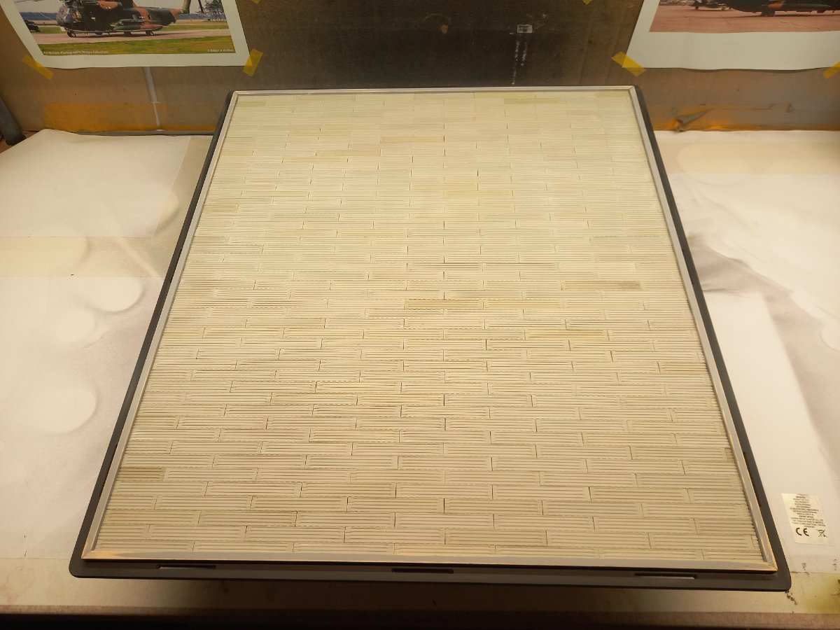jacmin Napisano 6 Października Autor Share Napisano 6 Października Niestety, w dalszym ciągu klej UV do mnie nie dotarł, więc na razie nie pomogę. Chińczycy już dwukrotnie anulowali moje zamówienie z powodu przekroczenia terminu dostawy. Odpuściłem i zamówiłem na Allegro. Dotrze pojutrze więc po zapiątku będę mógł coś powiedzieć i dam znać. A tymczasem niestety nie udało mi się niczego spektakularnego przy maszynie wykonać. Skupiłem się na podstawce, bo sporo elementów mam zamiar wkleić dopiero po przytwierdzeniu helikoptera do podstawki. Przede wszystkim musiałem opracować krawędź. Jest wykonana z płyty warstwowej- 2x jakiś plastik i twarda gąbka pomiędzy. Niestety na krawędzi widać jest ślady cięcia, więc nie mogło tak zostać. Musiałem całość oszlifować a następnie dwukrotnie szpachlować i znowu szlifować. Jako ograniczenie płyty postojowej użyłem listewek sosnowych o przekroju 4x4mm które przykleiłem na klej CA. Kostki maty M8A1 kleiłem na przezroczysty butapren. Jest bardzo dobry, bo lekko rozpuszcza wierzchnią płytę "kanapki". Oczywiście powierzchnię płyty jak i każdej kostki zmatowiłem papierem ściernym dla lepszej przyczepności. Na podstawę nanosiłem cienki wałek kleju, potem układałem rządek kostek, dociskałem i wyrównywałem linijką. Strasznie to mozolna praca była. Kostki miałem poselekcjonowane wymiarami (niektóre były minimalnie szersze od innych bo pochodziły z 2 różnych form) i po ułożeniu pierwszej i ostatniej, przyłożeniu linijki, wkładałem pozostałe, dobierając je szerokością. Potem trzeba było je odsunąć, podstawkę posmarować klejem i w ustalonej kolejności kostki wkleić. Potem znowu i znowu i znowu... i tak trzysta parę razy. Dobrze, że już prawie koniec. Za tydzień zrobię docinki i zacznę malowanie. 3 Cytuj Odnośnik do komentarza Udostępnij na innych stronach More sharing options...