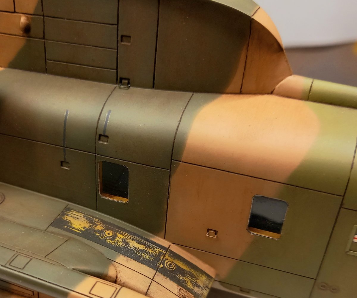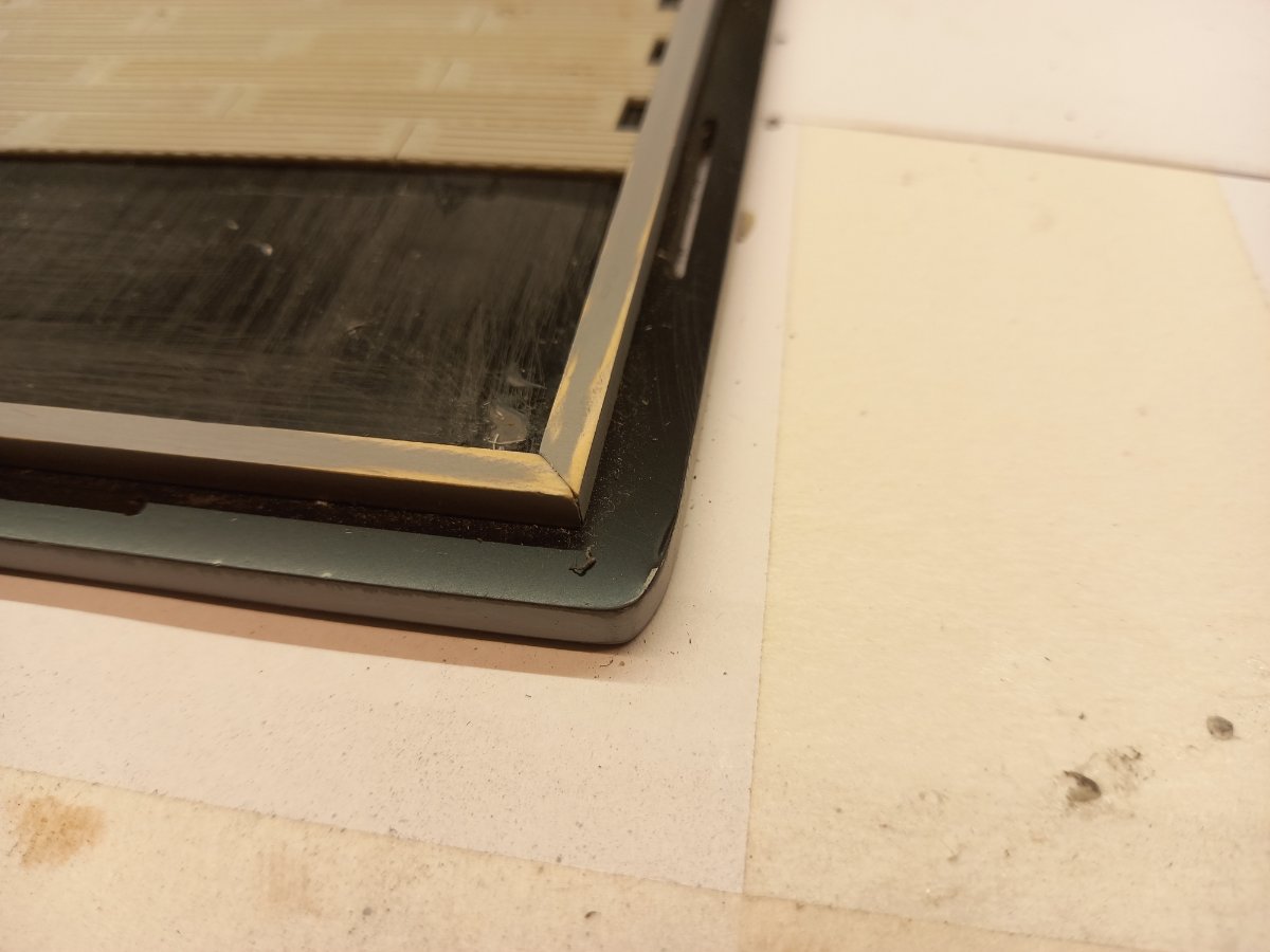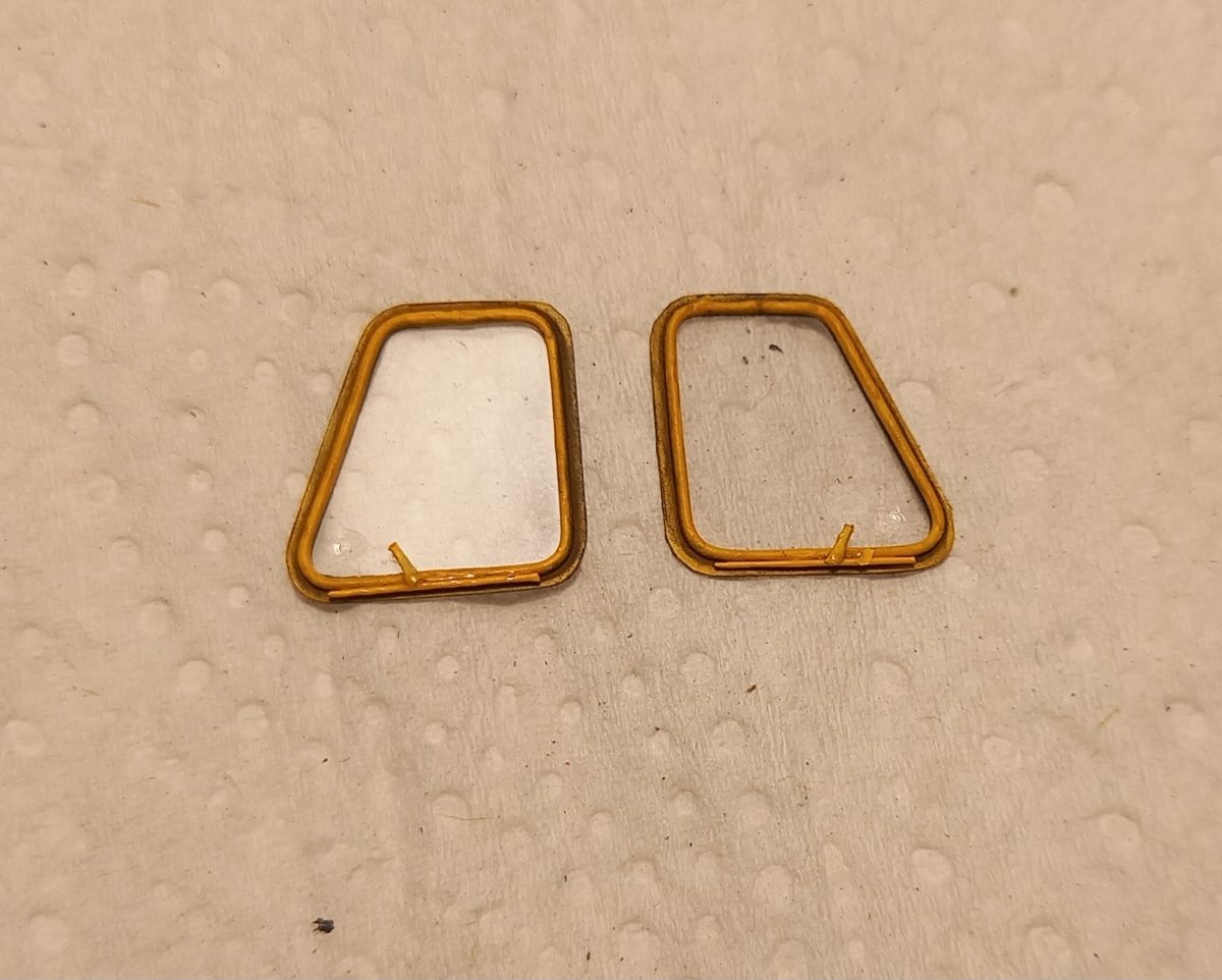 jacmin Napisano 13 Października Autor Share Napisano 13 Października (edytowane) Podstawka dosycha a ja zabrałem się za olbrzyma. Przyszedł czas na wklejenie pozostałego oszklenia. Niestety to z zestawu kompletnie się do niczego nie nadaje. Ze złomu modelarskiego wyciągnąłem odpowiednie elementy, oszlifowałem do grubości ok 0,3 mm i dociąłem do odpowiedniego kształtu. Wklejanie oszklenia zawsze było moją piętą Achillesową. Albo coś podlałem klejem, albo przykleiły mi się jakieś paprochy albo jeszcze coś. Od pewnego czasu mam sprawdzony patent. Przede wszystkim delikatnie przedmuchałem wnętrze przez okno minigune i przednie drzwi w kierunku rampy żeby zminimalizować ryzyko późniejszego przyklejenia się jakiegoś śmiecia. Cały pokład przetarłem wilgotnym pędzelkiem i już mogłem wklejać oszklenie. No właśnie, wklejać? Robię to nieco inaczej. Całe sedno metody polega na bardzo dokładnym dopasowaniu oszklenia do otworu. Niestety trzeba na to poświęcić nieco czasu i tak przygotować szybkę, żeby wchodziła w otwór z lekkim oporem. Teraz wystarczy w poprzek takiej szybki przykleić pasek taśmy, całość przetransportować na miejsce montażu, a następnie dosunąć do jednej z krawędzi otworu i przykleić taśmę. Następnie obciętą na płask drewnianą wykałaczką wciskam oszklenie na miejsce. Jeśli widzę po przymiarce, że oszklenie ma zbytni luz, wtedy ewentualnie smaruję krawędzie otworu bardzo cienko Microscale Crystal Clear. Edytowane 13 Października przez jacmin 3 Cytuj Odnośnik do komentarza Udostępnij na innych stronach More sharing options...