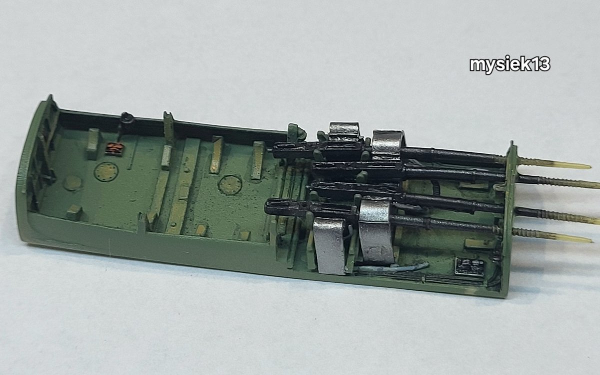 mysiek13 Napisano 23 Lutego Autor Share Napisano 23 Lutego Kadłub złożony, jednak z przodu musiałem dodać "wręgę" bo była szczelina przy komorze uzbrojenia. Wynikało to ze skurczu żywicy, a bałem się za bardzo prostować, żeby nie popękała po 15 latach w szufladzie Bomki, koła i podwozie czekają na kalki i "łosia" 2 Cytuj Odnośnik do komentarza Udostępnij na innych stronach More sharing options...
