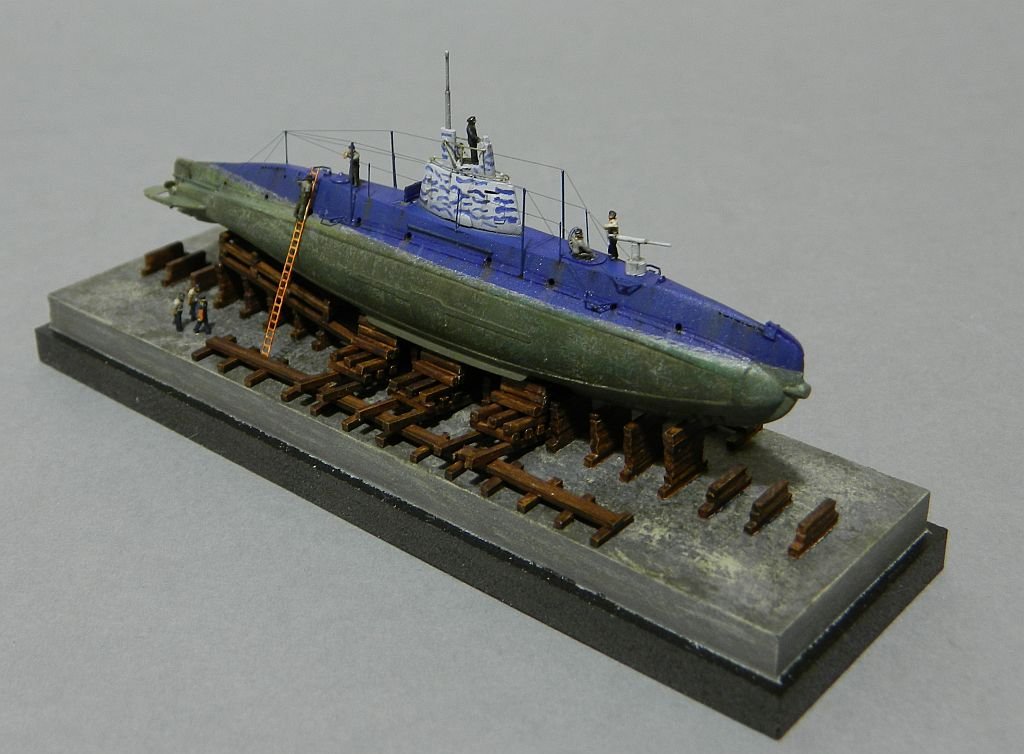 Acha, dlaczego czasem reling to majtkolinka, a czasem blaszka? Abo mamy na Osie kilka rodzajów relingów: począwszy od rurkowych (tu zastosowałem blaszkę), po klasyczny reling słupkowo-druciany z kilkoma rzędami linek (czyli to co widać powyżej - za to czasem o dość filuternym przebiegu, jak na hangarze pocisku), aż po taki, gdzie na szczycie słupka przebiega tylko pojedyncza linka (jak na górnym pokładzie). Będzie jeszcze taki ze zwisem - ale to jeszcze przede mną.