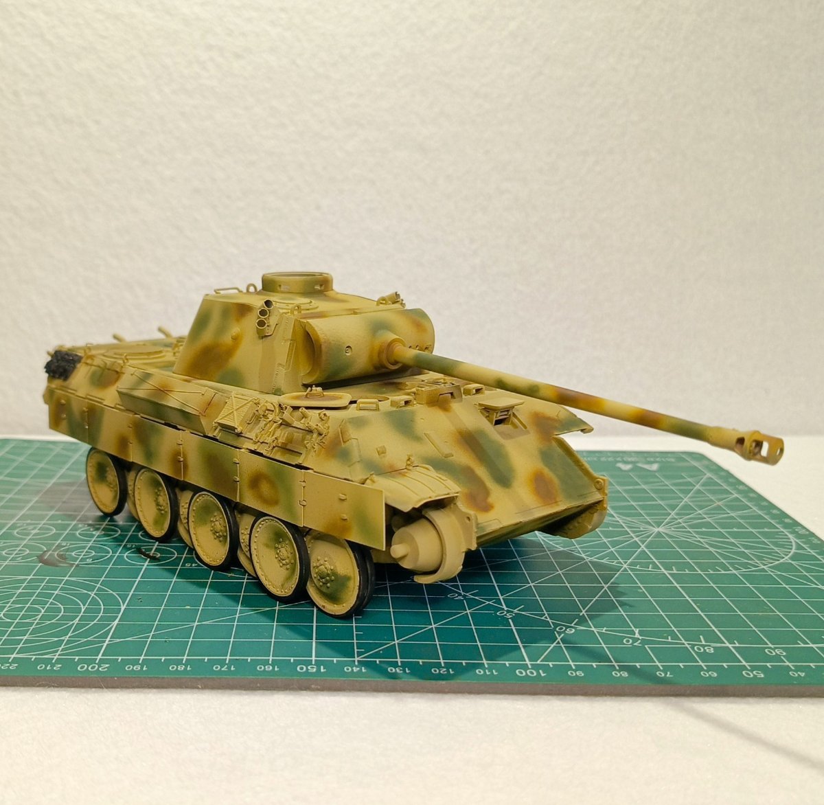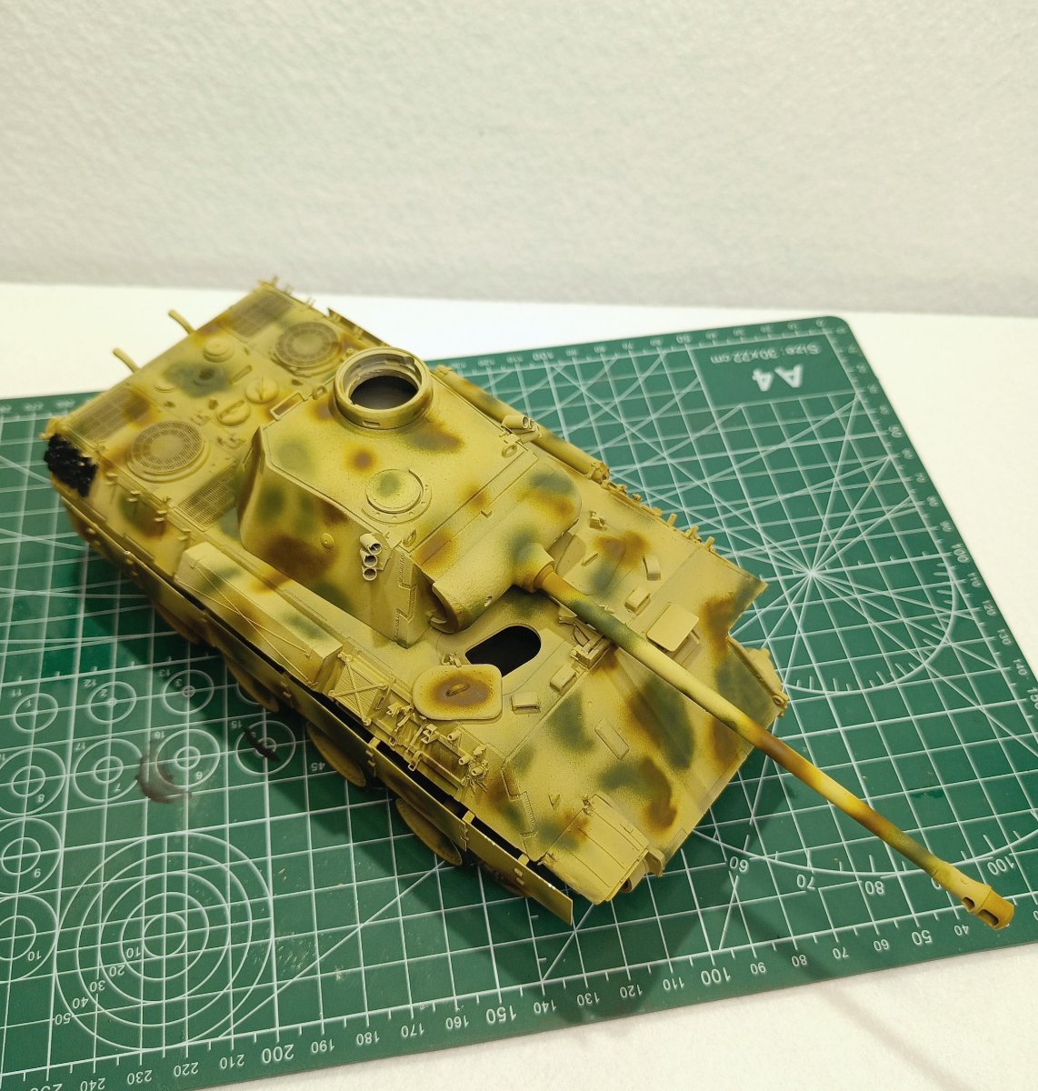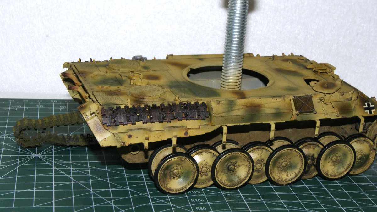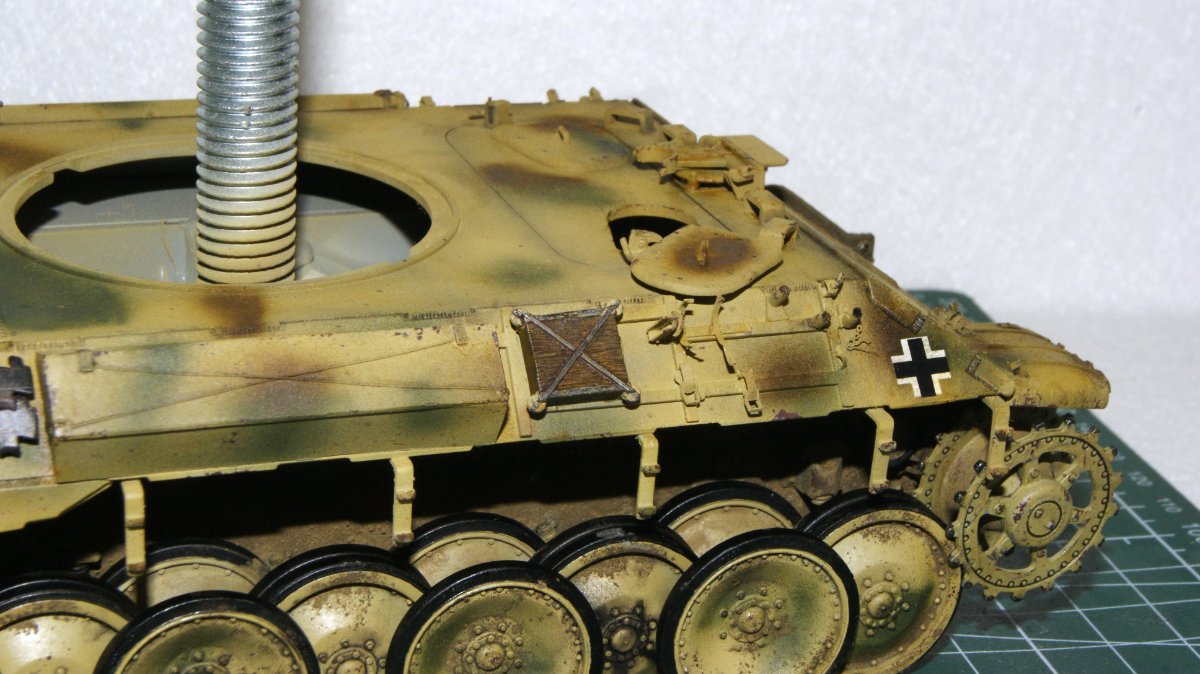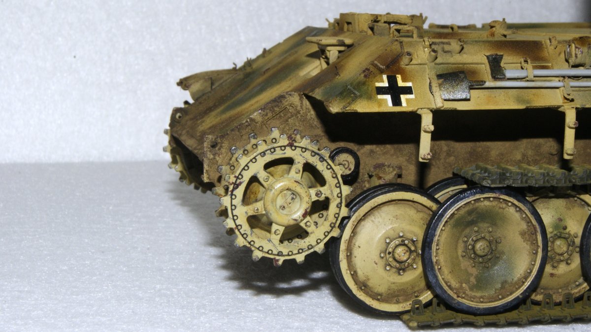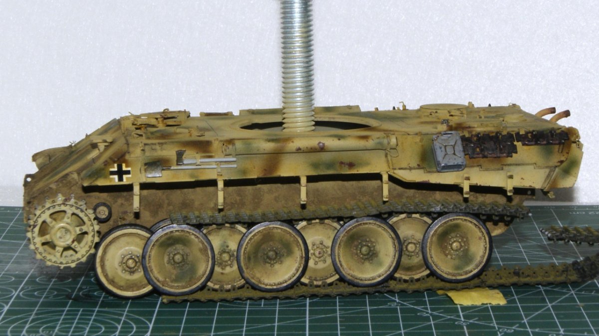 Macisso Napisano 4 Października Autor Share Napisano 4 Października Dzień dobry szanownym kolegom i koleżankom. Sezon koncertowy dobiegł końca, zatem mogę wrócić do porzuconego wiosną projektu Z nieukrywaną radością zabrałem się do malowania kół jezdnych a następnie kamuflażu na czołg. Dokładna opcja malowania nie jest mi znana, ale na bazie wiedzy którą udało mi się posiąść, zdecydowałem się na kamo położone finalnie na maszynę. Z racji że nie było "z góry" ustalonego wzoru, tak jak pancerniacy niemieccy w 43' i ja pozwoliłem sobie na sporą dawkę inwencji twórczej. Mam niestety braki sprzętowe i już wiem, że do takiego mazania z "wolnej ręki" potrzebuje kupić lepszy (bardziej dokładny) aerograf. Nauka nie idzie w las Niestety czeka mnie niedługo tygodniowy wyjazd, ale obiecuję ruszyć mocno z tematem po powrocie. Chciałbym w tym roku skończyć nie tylko czołg, ale i dioramę. Ps. Po kilku miesiącach przerwy (panterka nawet nie wychodziła z pudła) w klejenia, przyznaję że ilość detali i stosunkowo niezła jakość pracy zrobiła na mnie całkiem niezłe wrażenie. Niewątpliwie jest to zasługa wielu z Was, zatem jeszcze raz dziękuję za motywację i wskazówki Na łączach! 2 Cytuj Odnośnik do komentarza Udostępnij na innych stronach More sharing options...