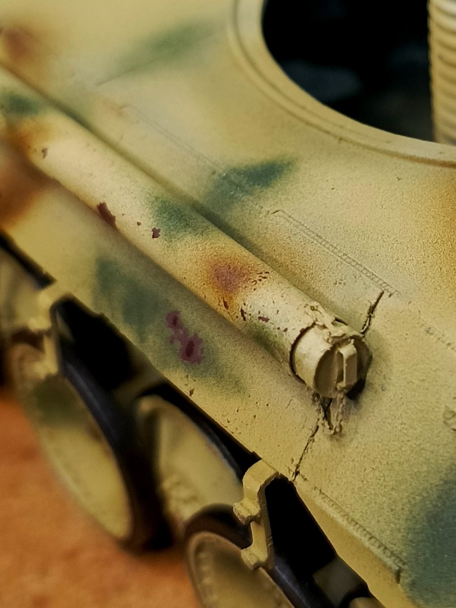 Macisso Napisano 17 Czerwca Autor Share Napisano 17 Czerwca Cześć! Zgodnie z zapowiedzią, prezentuje krótki przegląd prac po zniszczeniach. Myślę, że w miarę udało się naprawić szkody. Przepraszam za nie najlepsze foty, ale mam czasu jak na przysłowiowe lekarstwo. Najważniejsze, że nie widać przejścia między "startą" a "nową" bazą. Przy okazji zrobiłem delikatne cieniowanie kół jezdnych i zabrałem się za malowanie gąsienic. Teraz na model trafia kamuflaż, ale wszystkich obserwujących postępy informuje, że nie nastąpi to zbyt szybko. Nie mniej broni nie składam! Trzymajcie się i do usłyszenia Maciek Cytuj Odnośnik do komentarza Udostępnij na innych stronach More sharing options...