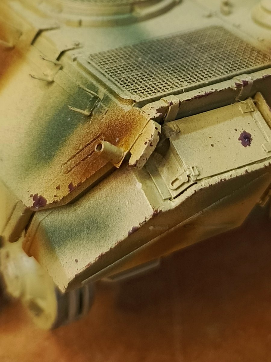 Macisso Napisano 6 Października Autor Share Napisano 6 Października Cześć. Udało się pchnąć lekko projekt. Na całość położyłem błyszczący lakier bezbarwny, przygotowując tym samym model pod dalsze działania. Na wstępie dodałem odrobinę obić. To wciąż nowa dla mnie technika, zatem badamy się. Następnie wpadną kalkomanie i dalszy ciąg "rysowania" i subtelnego obijania pojazdu. Za wiele śladów zużycia nie będzie, ponieważ pantera z numerem bocznym 834 nie powojowala specjalnie długo. Stąd staram się zachować umiar Później washe olejne, bezbarwny matki watering W kontakcie 1 Cytuj Odnośnik do komentarza Udostępnij na innych stronach More sharing options...
