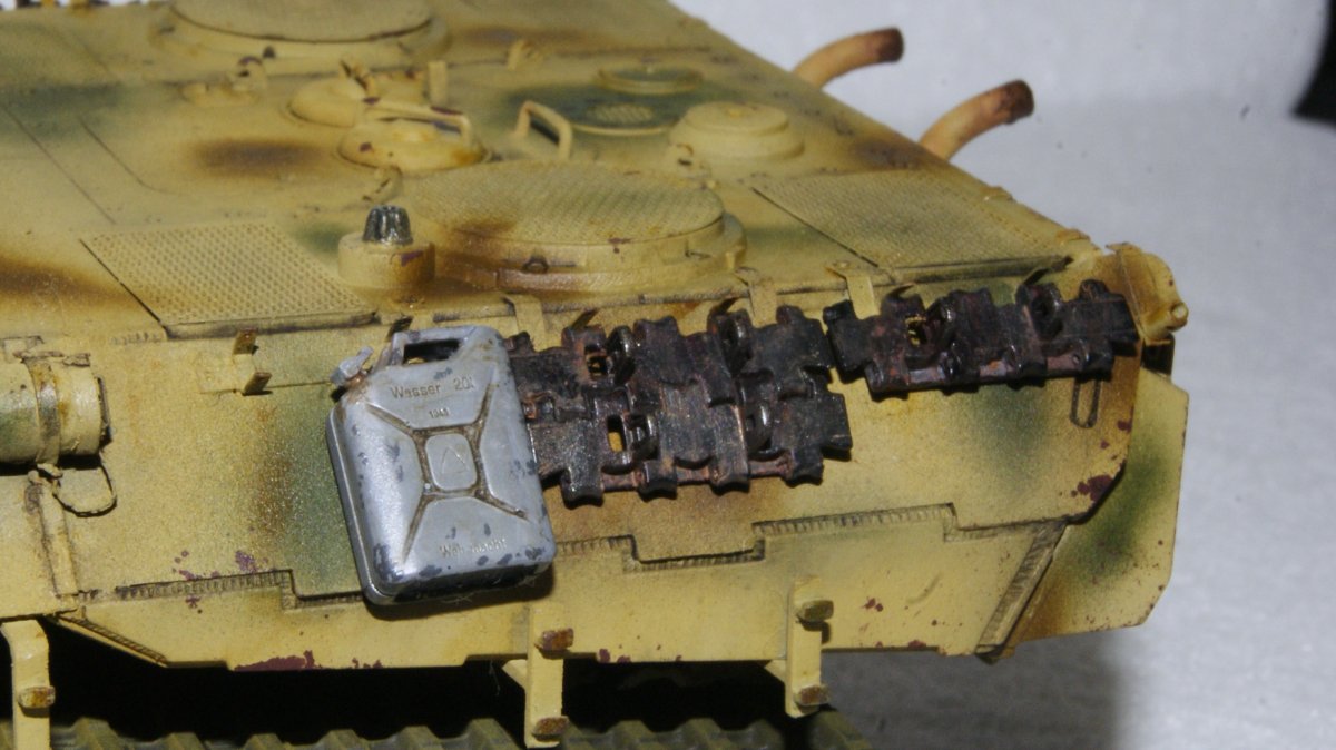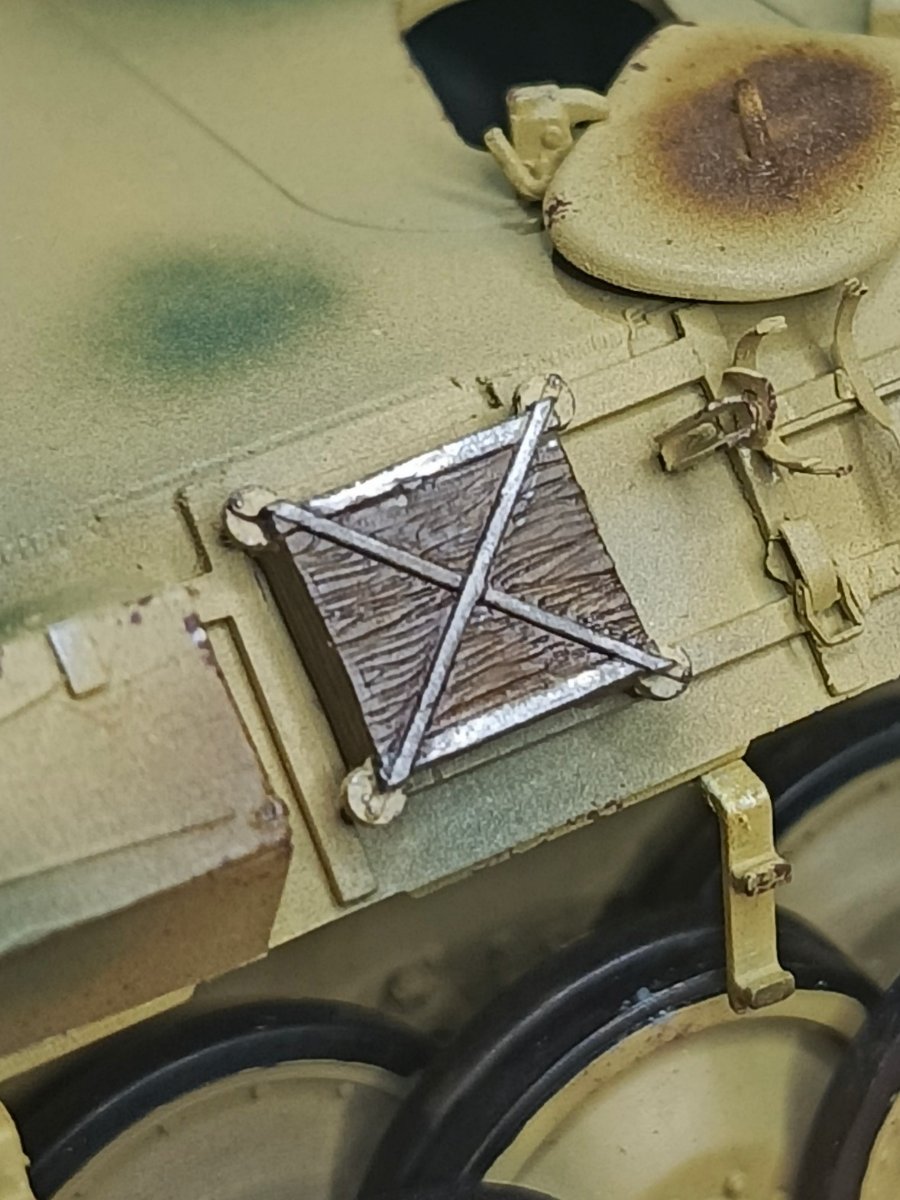Macisso Napisano 7 Maja Autor Share Napisano 7 Maja Cześć. Dziś podjąłem kolejną próbę zabawy w cieniowanie. Od kilku z Was dostałem cenne wskazówki oraz zachętę do działania. Efekt możecie ocenić i wskazać co mogę zrobić lepiej Są drobiazgi do poprawy związane z położeniem farby- naturalnie zajmę się tym. Zabrałem się także za wykonanie skrzyni z prawej burty. Całość zrobiona z cienkiego hipsu. To pierwsza moja tego typu twórczość z wykonaniem elementu od podstaw. Pomalowałem też boczne blachy i gąsienice. Po poprawkach przyjdzie czas na kamuflaż W kontakcie. Maciek 3 Cytuj Odnośnik do komentarza Udostępnij na innych stronach More sharing options...