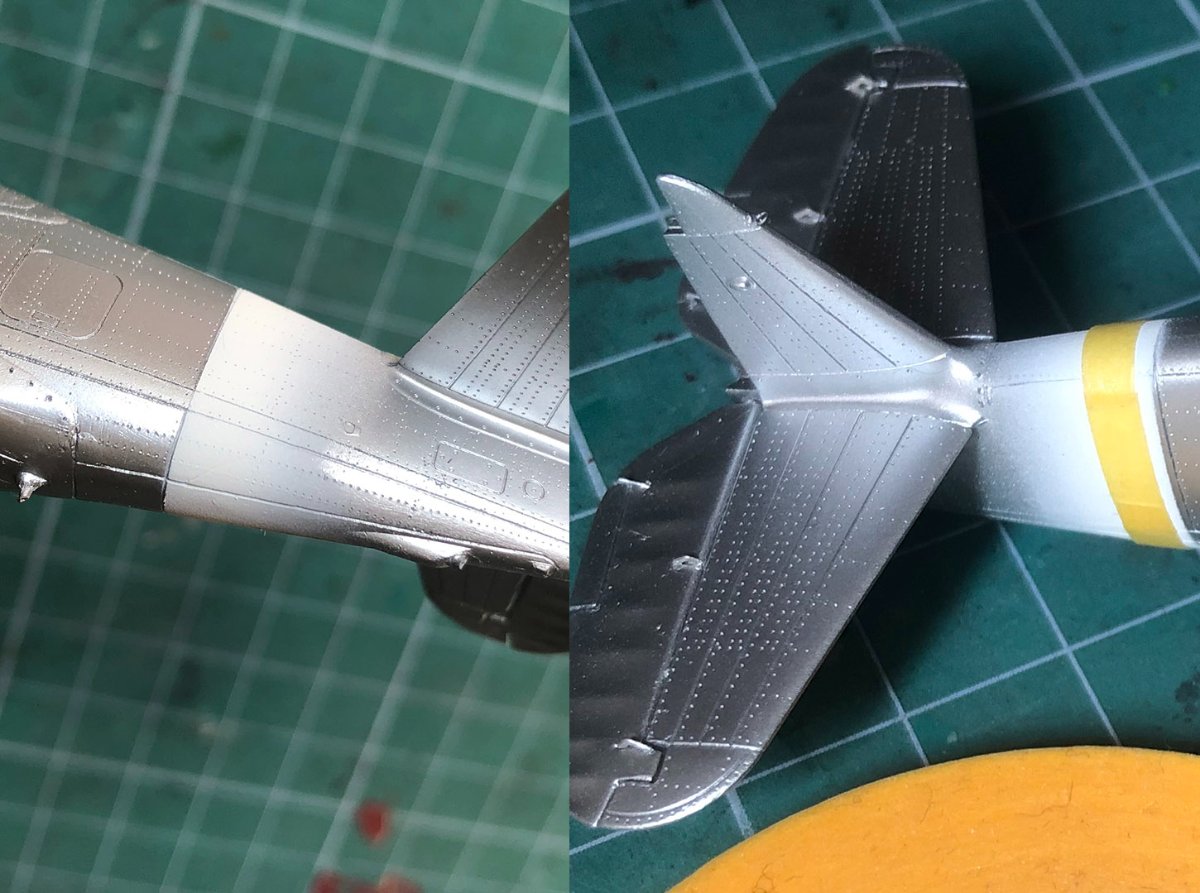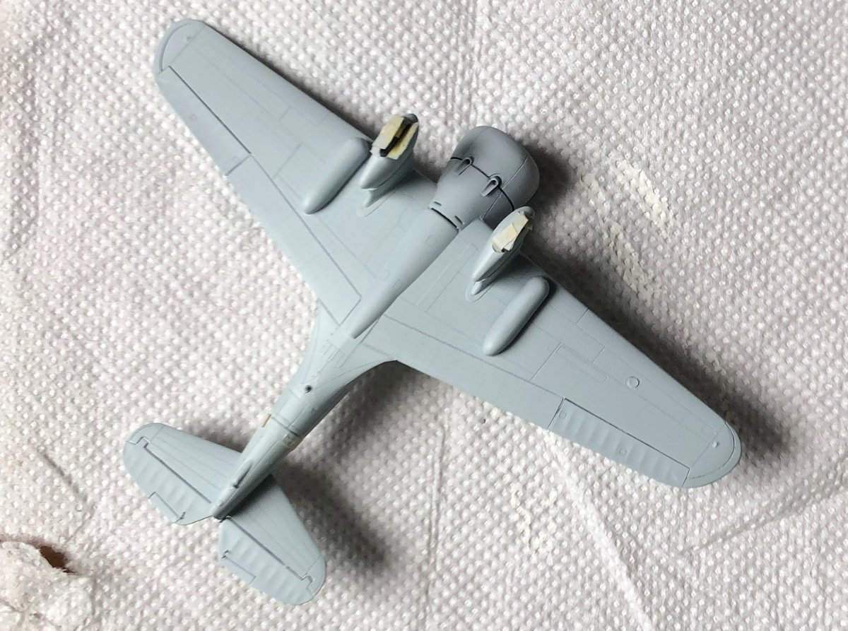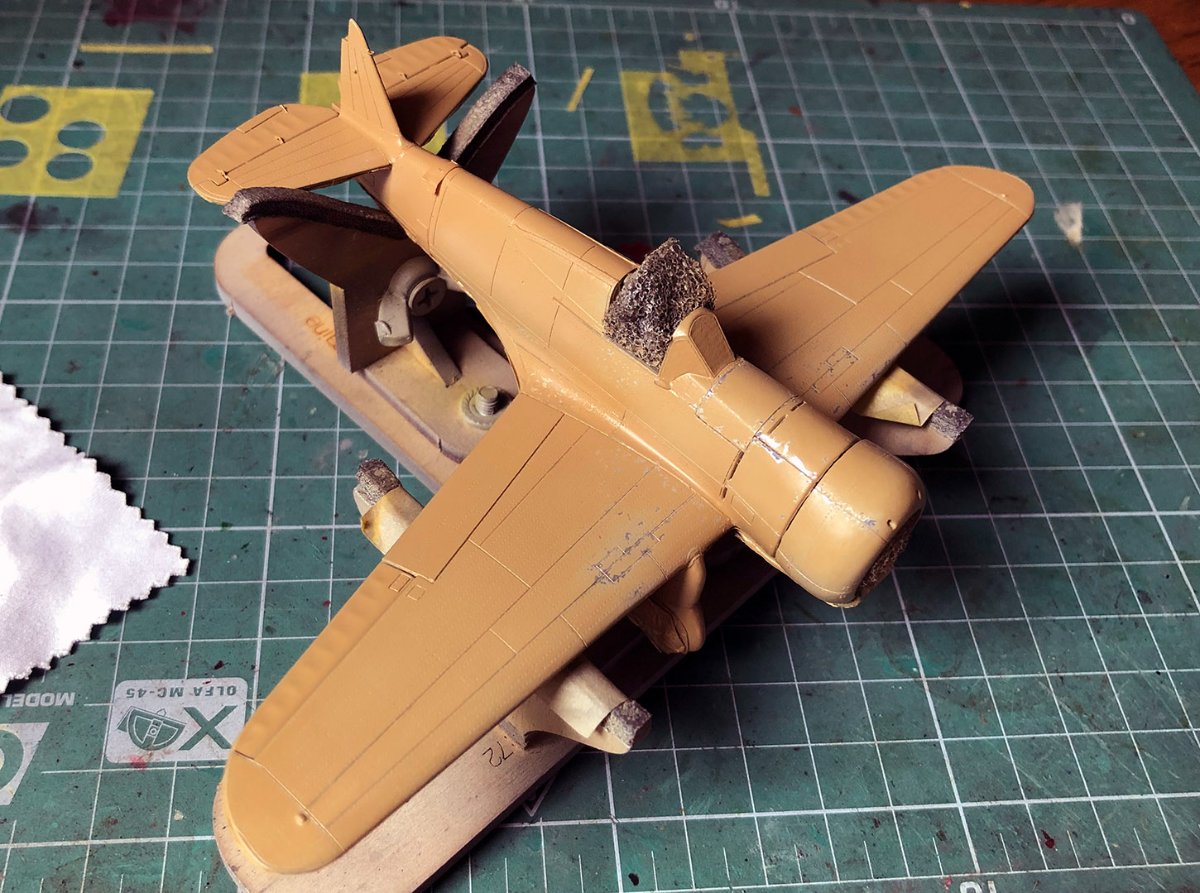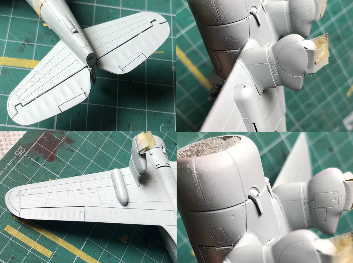 JollyMonk Napisano 27 Sierpnia Autor Share Napisano 27 Sierpnia Cześć! Zbliżamy się do lakierni. Szpachlowałem tam, gdzie trzeba, naprawiłem rozcięcie i nit tu i ówdzie, zamontowałem rurkę na brzuchu, zamontowałem pierścień w kilu do późniejszego montażu anteny. Kupiłem oszklenie w Futurze i przykleiłem maski (są cudowne, swoją drogą). P.S. A tak przy okazji, z ciekawostek: jeśli ktoś zamierza budować wersję tajską, nie zapomnijcie wywiercić otworów w dolnej połowie skrzydła od wewnątrz na mocowania karabinów maszynowych PRZED sklejeniem dolnej i górnej połowy skrzydła. 3 Cytuj Odnośnik do komentarza Udostępnij na innych stronach More sharing options...