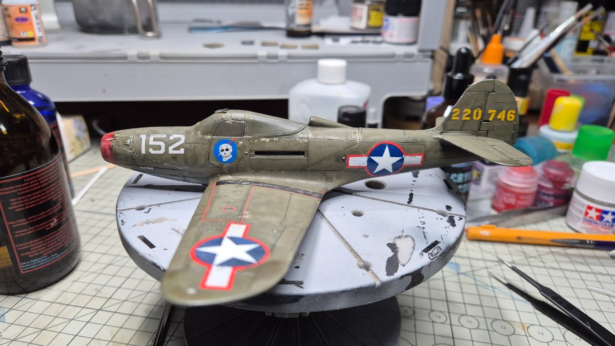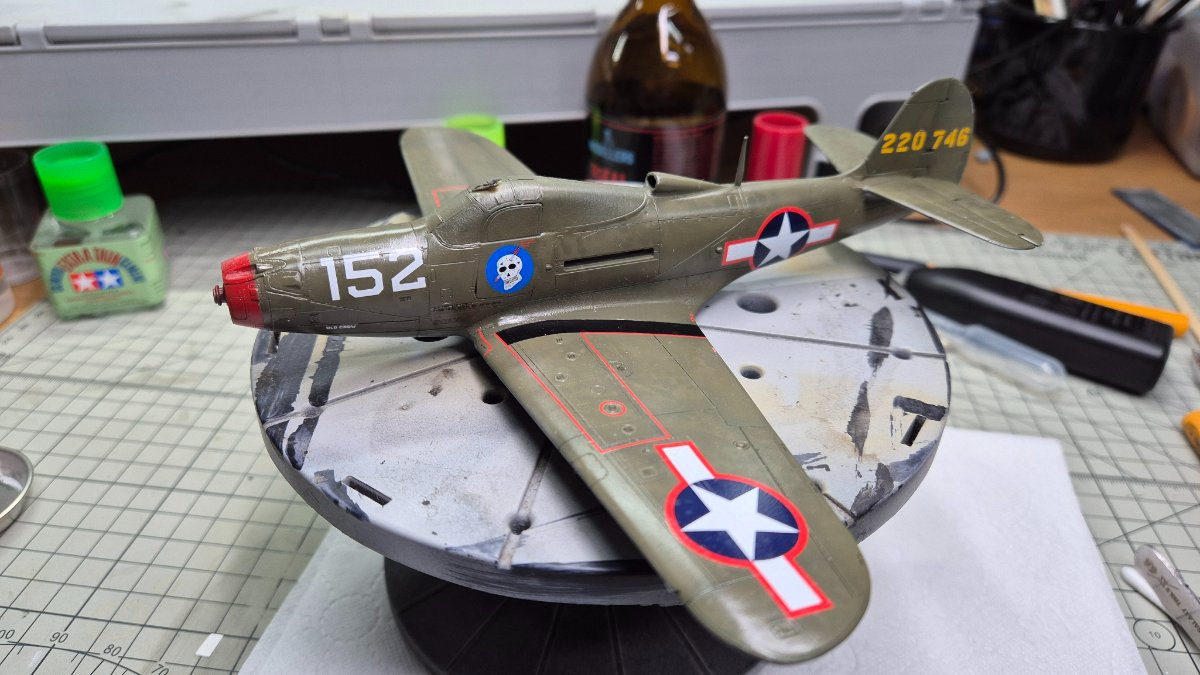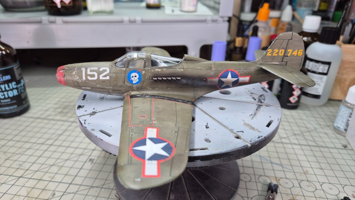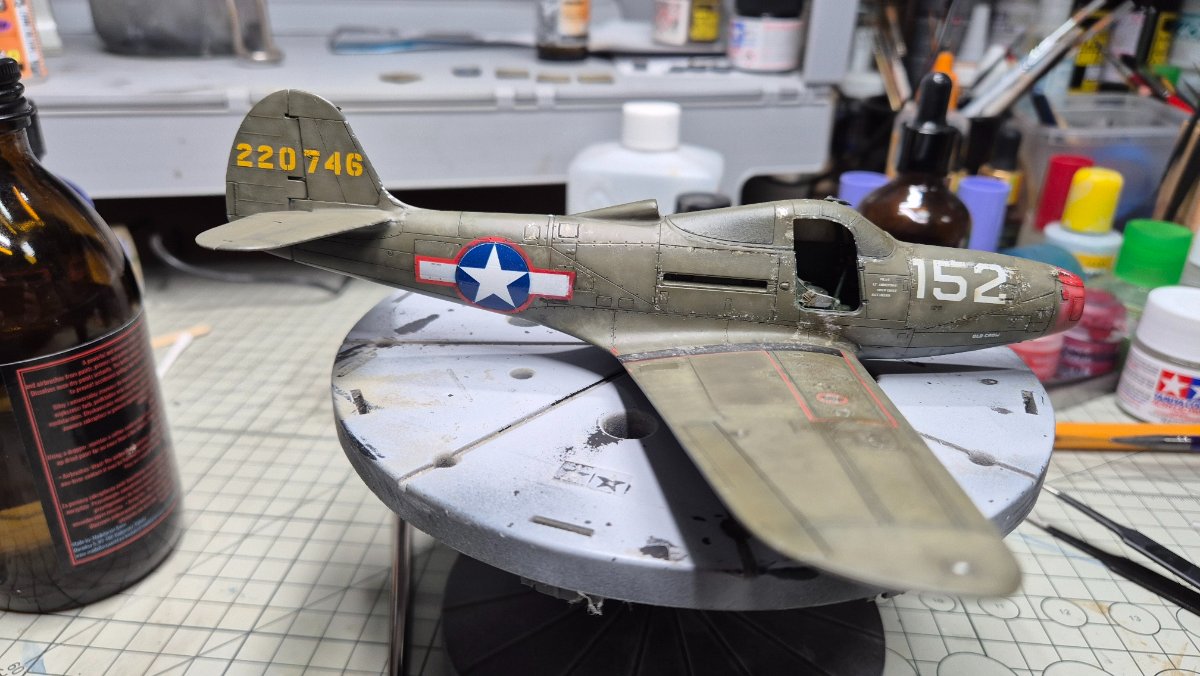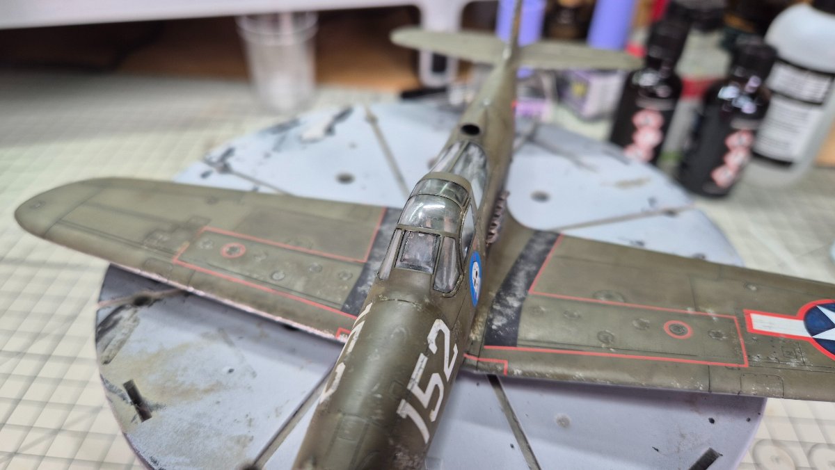 RadekZ Napisano 1 Stycznia Autor Share Napisano 1 Stycznia (edytowane) Z Nowy Rokiem hurraoptymistycznie podszedłem do zabaw z aerografem. Trenowałem sobie ostatnio psikanie na niskim ciśnieniu mocno rozrzedzonych farb i jako, że na tym modelu i tak jest mnóstwo byków, to postanowiłem, że zaryzykuję i trochę "podturbię" efekty... Na różnych "ćwiczebnych" złomkach wychodziło dobrze, na Airacobrze do pewnego momentu nawet też, w sumie efekt tego wyblakłego olive draba miejscami mi się podoba... no ale... przecież może być lepiej , no to najpierw sobie pojechałem lekko gąbeczką ścierną (taką 2000) , żeby lekko jeszcze przytłumić... a potem białym i niebieskim postanowiłem też lekko "wyblaknąć" granatowemu na insygniach... No i lepsze okazało się jak zwykle wrogiem dobrego ... teraz muszę poprawić tego olive draba i chyba poszukać jakiś masek, żeby odmalować te insygnia, bo się niebeskiego ciut rozlało... o srebrnych obiciach nie wspomnę... ale też są takie sobie Dobrze się zaczyna ten 2026 Edytowane 1 Stycznia przez RadekZ Cytuj Odnośnik do komentarza Udostępnij na innych stronach More sharing options...