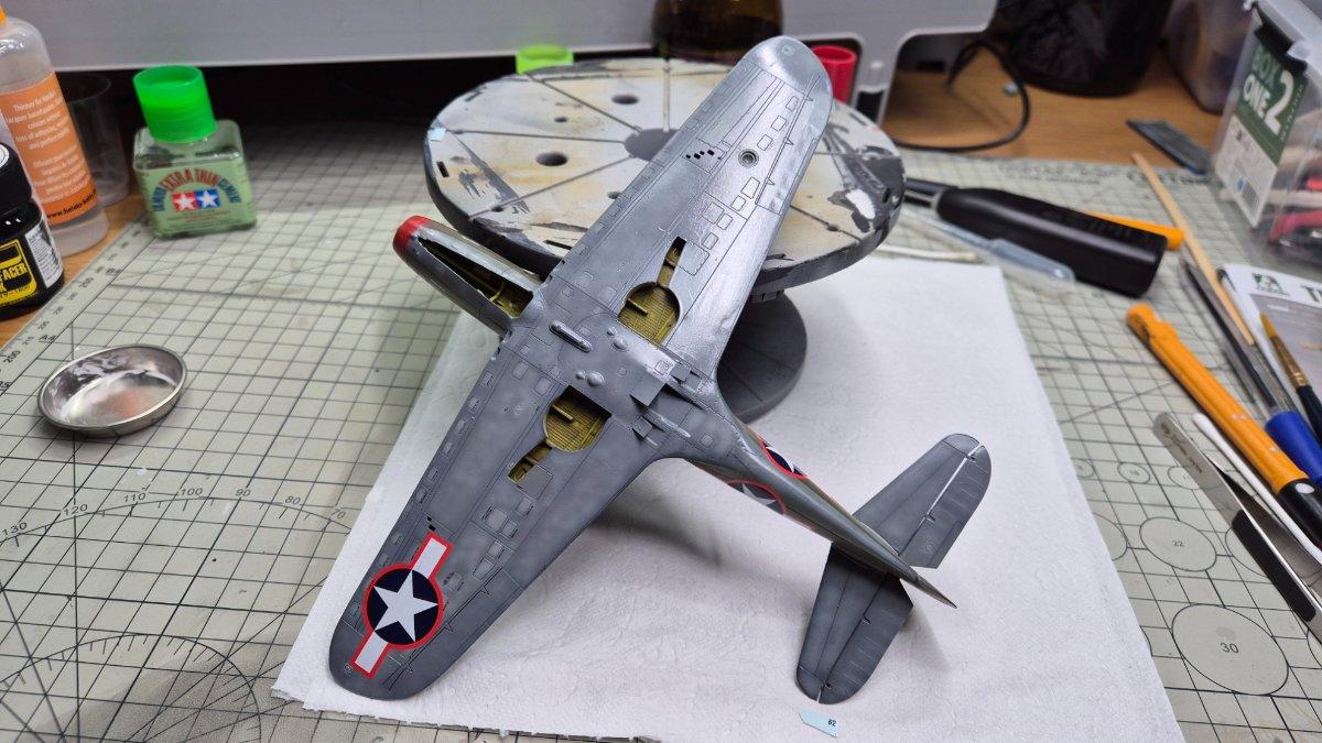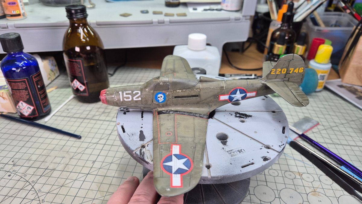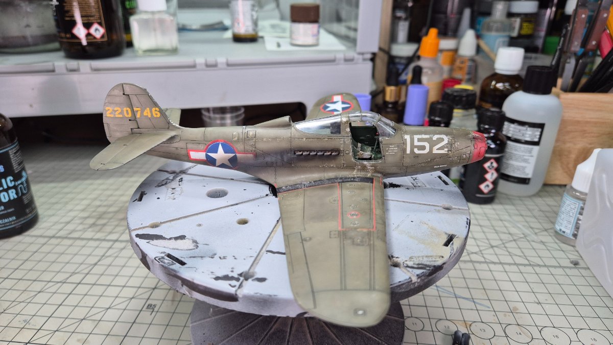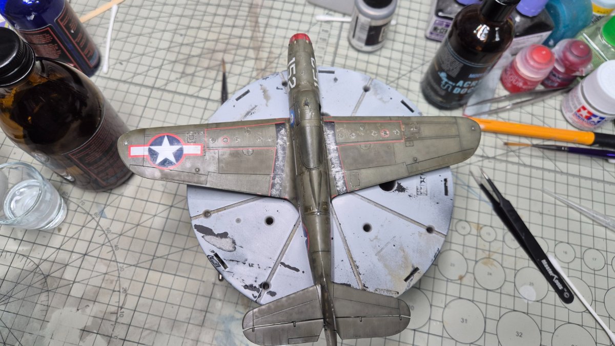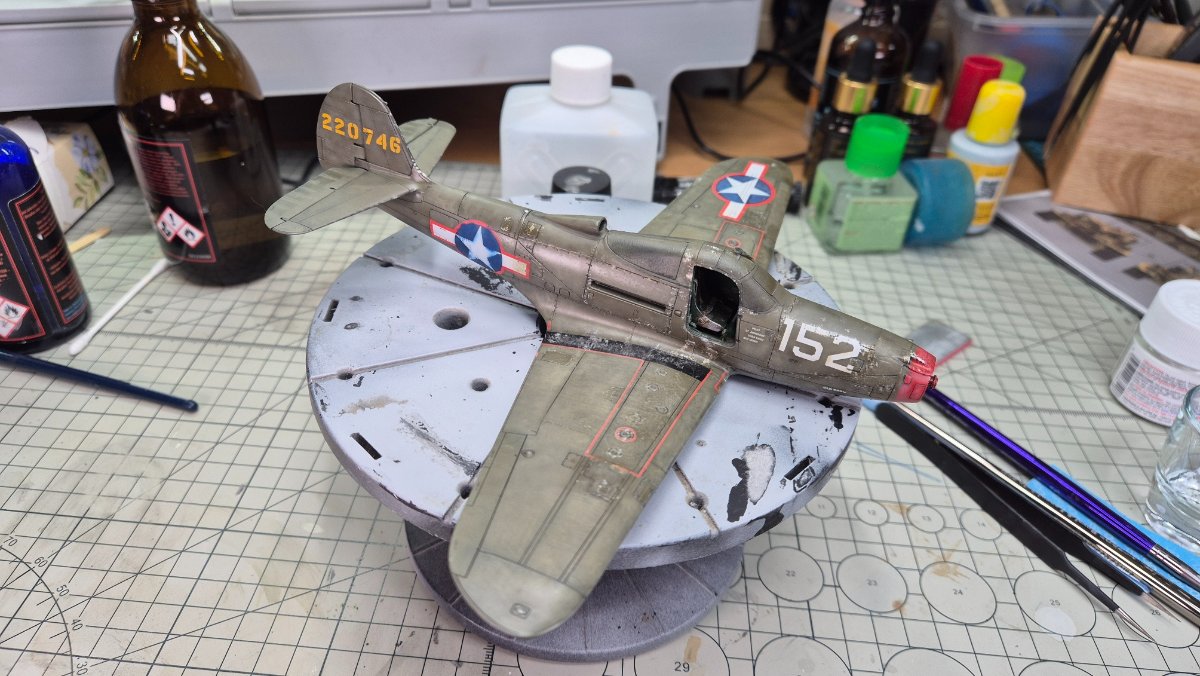 RadekZ Napisano 1 Stycznia Autor Share Napisano 1 Stycznia (edytowane) Z Nowy Rokiem hurraoptymistycznie podszedłem do zabaw z aerografem. Trenowałem sobie ostatnio psikanie na niskim ciśnieniu mocno rozrzedzonych farb i jako, że na tym modelu i tak jest mnóstwo byków, to postanowiłem, że zaryzykuję i trochę "podturbię" efekty... Na różnych "ćwiczebnych" złomkach wychodziło dobrze, na Airacobrze do pewnego momentu nawet też, w sumie efekt tego wyblakłego olive draba miejscami mi się podoba... no ale... przecież może być lepiej , no to najpierw sobie pojechałem lekko gąbeczką ścierną (taką 2000) , żeby lekko jeszcze przytłumić... a potem białym i niebieskim postanowiłem też lekko "wyblaknąć" granatowemu na insygniach... No i lepsze okazało się jak zwykle wrogiem dobrego ... teraz muszę poprawić tego olive draba i chyba poszukać jakiś masek, żeby odmalować te insygnia, bo się niebeskiego ciut rozlało... o srebrnych obiciach nie wspomnę... ale też są takie sobie Dobrze się zaczyna ten 2026 Edytowane 1 Stycznia przez RadekZ Cytuj Odnośnik do komentarza Udostępnij na innych stronach More sharing options...