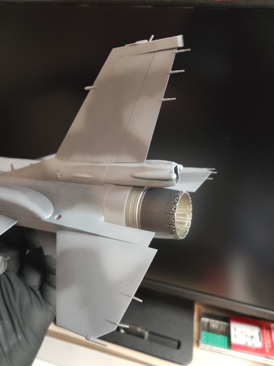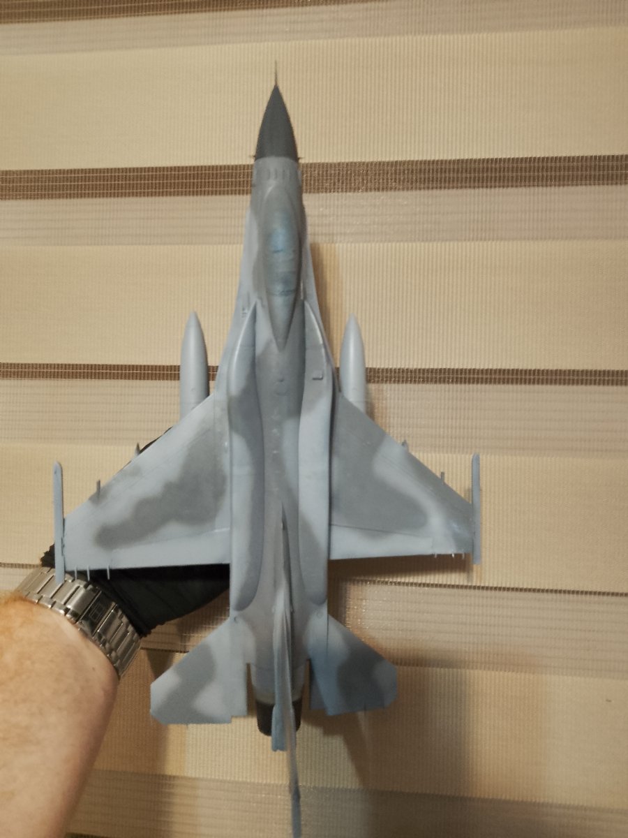 SnajperTBG Napisano 25 Sierpnia Autor Share Napisano 25 Sierpnia (edytowane) Zasugerowałem się instrukcja z kalek modelmakera i takie coś zmalowałem. Niestety farba w hatace grey jest za jasna więc dałem kilka kropel czarnego. Kamuflaż nie wyszedł idealnie 1:1 z oryginałem ale z założenia model ma cieszyć oko w gablotce kolegi więc bez spiny. 1 raz w życiu malowałem dyszę metalizerami. Na żywo wygląda całkiem fajne. Przejrzałem sporo fot ef 16 i każdy ma inne kolory dysz. Rozumiem że chodzi o zużycie materiału. Edytowane 25 Sierpnia przez SnajperTBG 1 Cytuj Odnośnik do komentarza Udostępnij na innych stronach More sharing options...