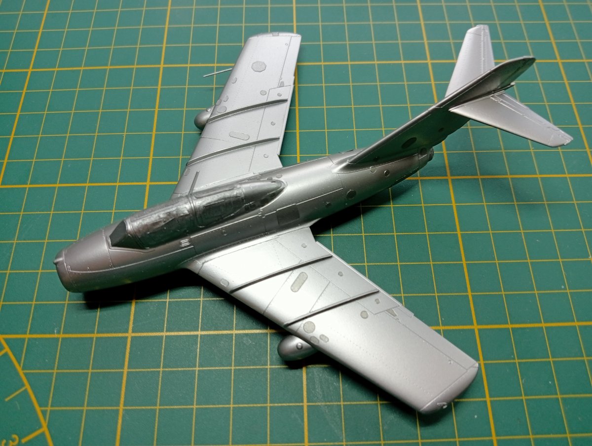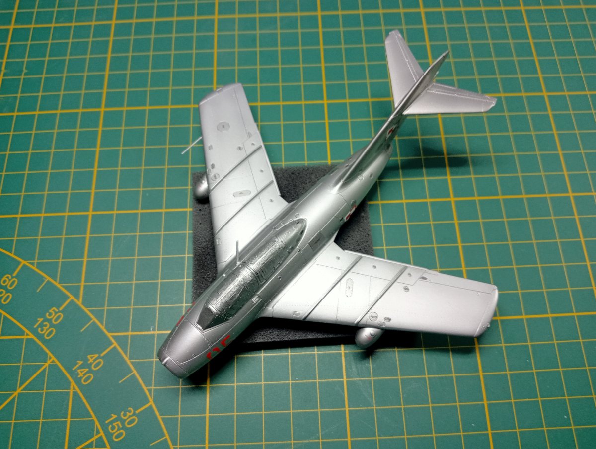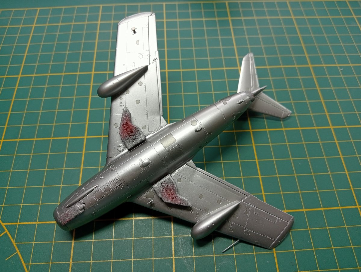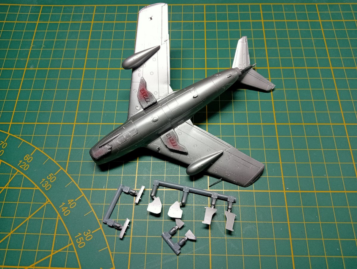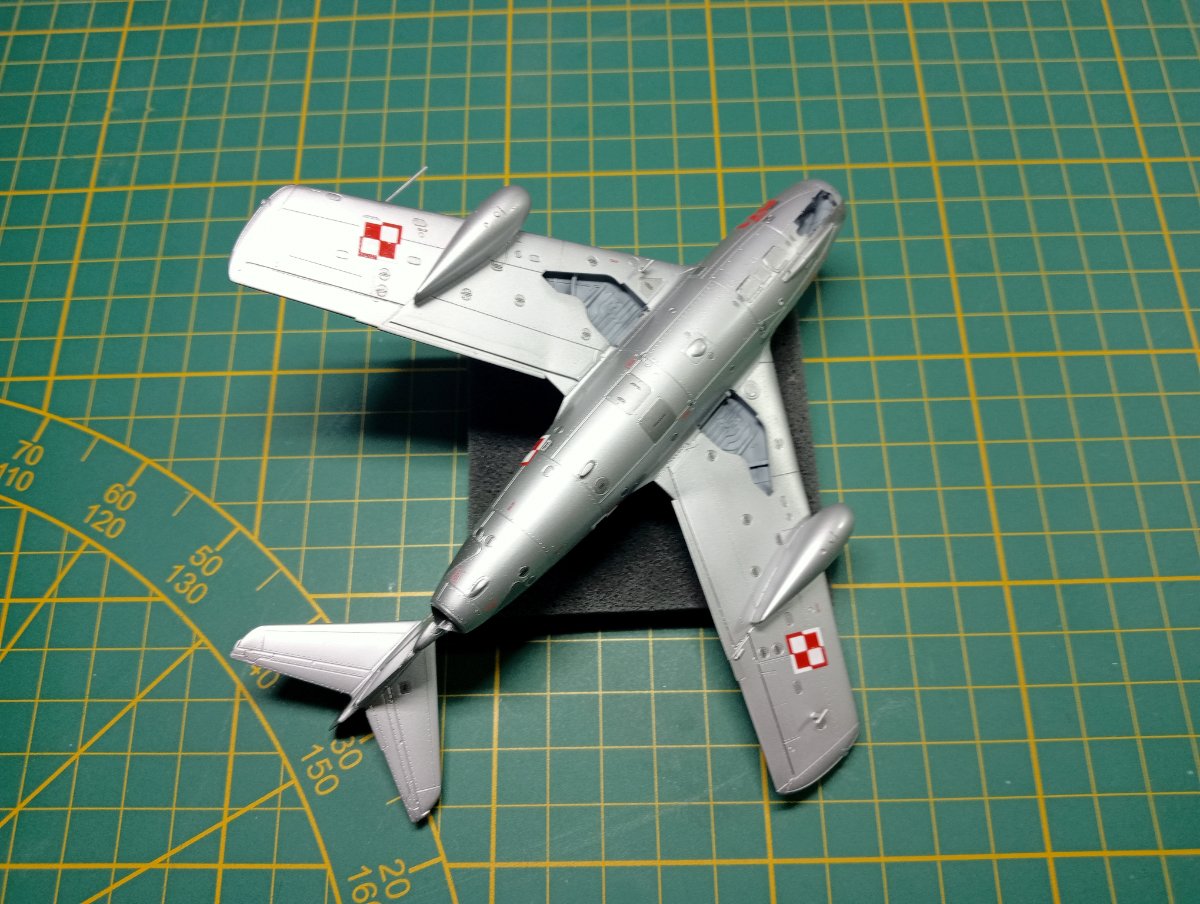 abtb Napisano 5 Października Autor Share Napisano 5 Października Wracając do tematu wycięcia, uważam że nie jest to żaden "otwór" do rzucania okiem na wskaźnik podwozia. Po pierwsze - wycięcie jest tylko na lewym grzebieniu a wskaźniki raczej są dwa. Po drugie - jest to grzebień aerodynamiczny i raczej nikt by w nim nie robił wycięcia do oglądania wskaźnika. Być może pewną podpowiedzią/wskazówką jest fakt, że przy prędkości wynoszącej 0,985 prędkości dźwięku "pojawiło się nowe zjawisko pochylania samolotu na lewe skrzydło" {za "Samoloty MiG", Piotr Butowski}. Co prawda skutkowało to wprowadzeniem wzmacniaczy hydraulicznych układu sterowania ale też innych zmian konstrukcyjnych. Jakich - nie napisano. "Wycięcie" to jest obecne zarówno na wersjach szkolnych, ale też i czysto bojowych, np. na tym MiG-u 15bis: co w swoim modelu uwzględnił Eduard: A teraz pora na powrót do warsztatu: - oblepiłem model maskami na panele Następnie to wszystko zdjąłem, położyłem połysk i kalki: I tym oto sposobem powoli zmierzam do zakończenia prac - jeszcze tylko podwozie, łosz i lakier końcowy i będzie można puszczać galerię w ludzi. I zabieram się za SBLim-a 1 Cytuj Odnośnik do komentarza Udostępnij na innych stronach More sharing options...