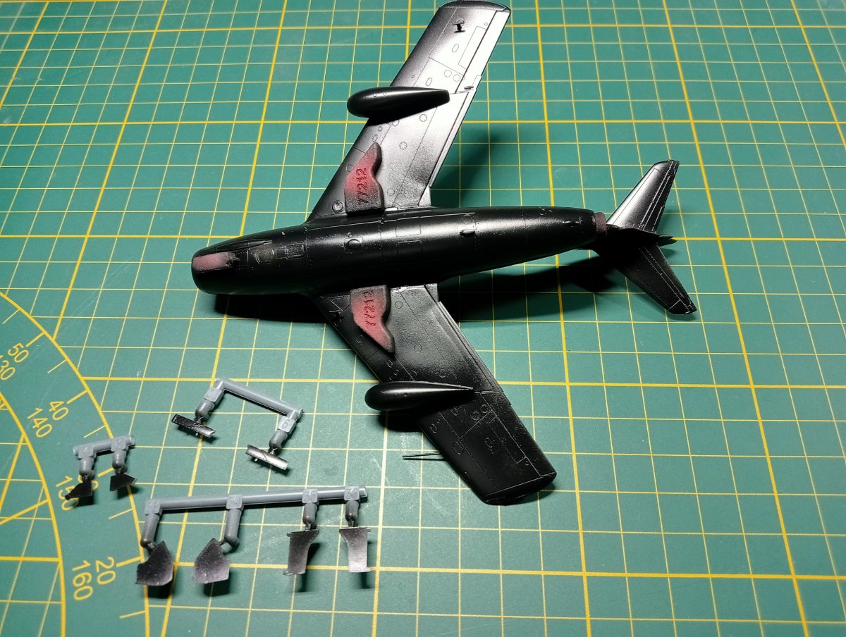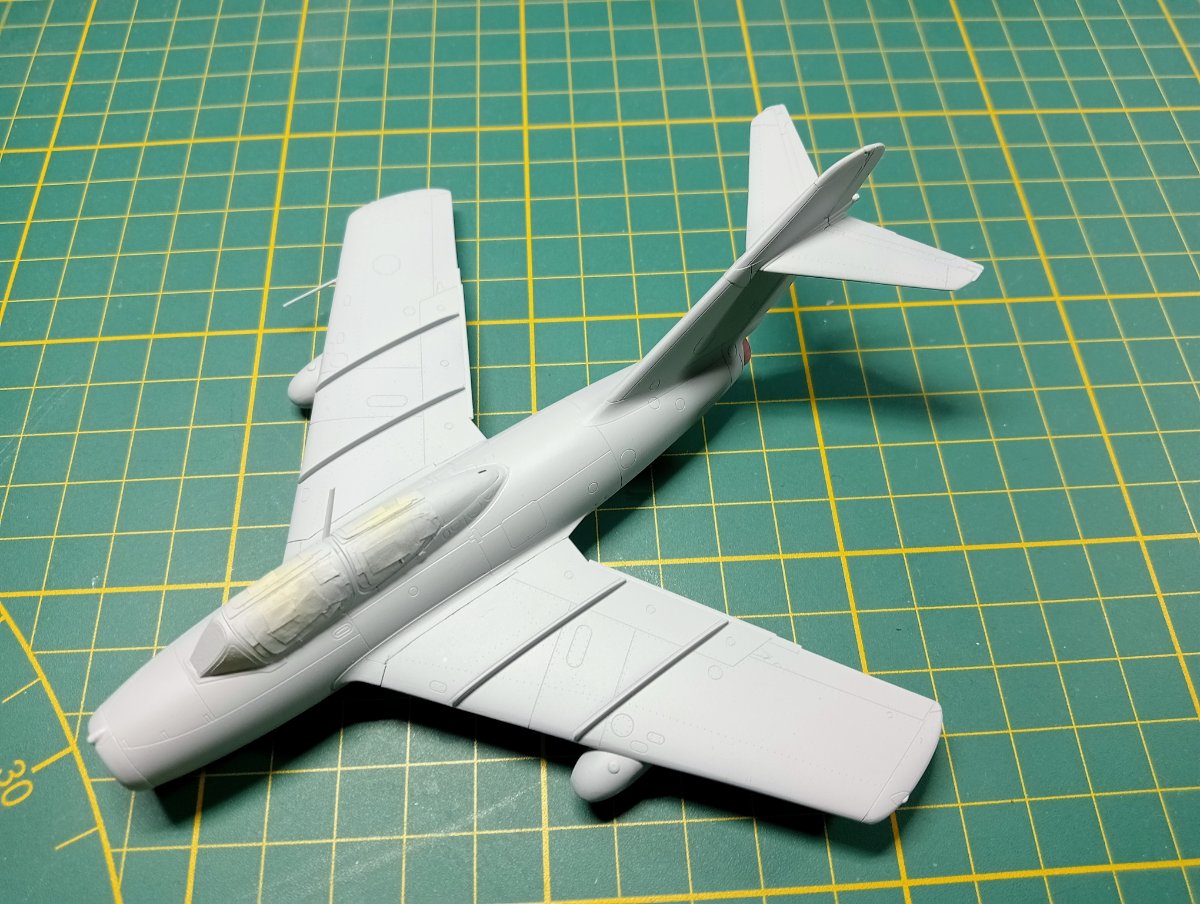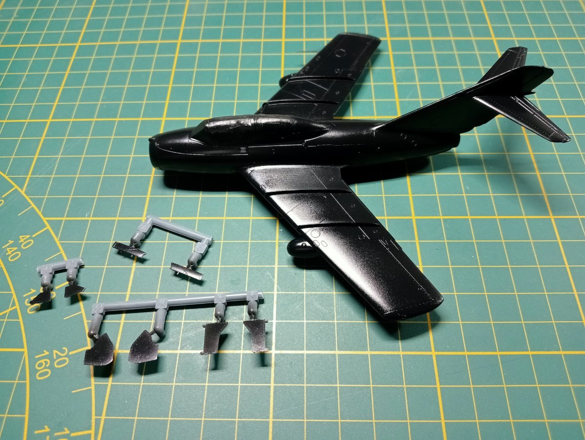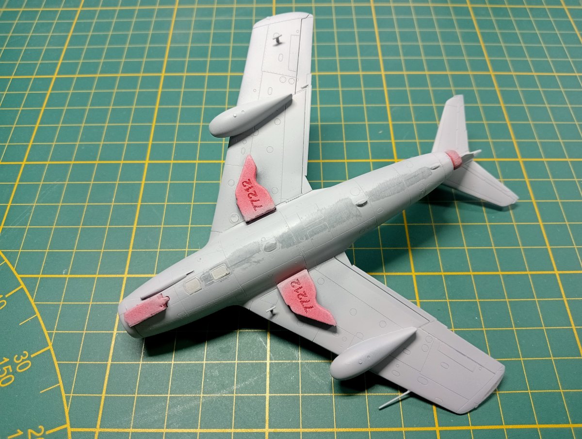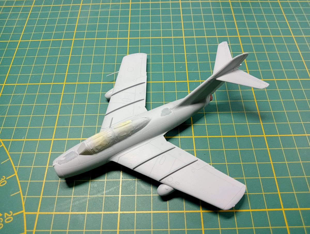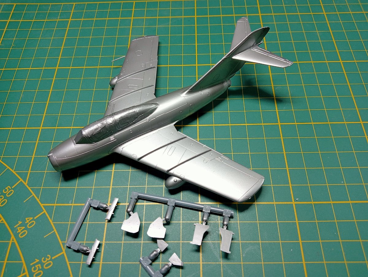 abtb Napisano 5 Października Autor Share Napisano 5 Października Wracając do tematu wycięcia, uważam że nie jest to żaden "otwór" do rzucania okiem na wskaźnik podwozia. Po pierwsze - wycięcie jest tylko na lewym grzebieniu a wskaźniki raczej są dwa. Po drugie - jest to grzebień aerodynamiczny i raczej nikt by w nim nie robił wycięcia do oglądania wskaźnika. Być może pewną podpowiedzią/wskazówką jest fakt, że przy prędkości wynoszącej 0,985 prędkości dźwięku "pojawiło się nowe zjawisko pochylania samolotu na lewe skrzydło" {za "Samoloty MiG", Piotr Butowski}. Co prawda skutkowało to wprowadzeniem wzmacniaczy hydraulicznych układu sterowania ale też innych zmian konstrukcyjnych. Jakich - nie napisano. "Wycięcie" to jest obecne zarówno na wersjach szkolnych, ale też i czysto bojowych, np. na tym MiG-u 15bis: co w swoim modelu uwzględnił Eduard: A teraz pora na powrót do warsztatu: - oblepiłem model maskami na panele Następnie to wszystko zdjąłem, położyłem połysk i kalki: I tym oto sposobem powoli zmierzam do zakończenia prac - jeszcze tylko podwozie, łosz i lakier końcowy i będzie można puszczać galerię w ludzi. I zabieram się za SBLim-a 1 Cytuj Odnośnik do komentarza Udostępnij na innych stronach More sharing options...