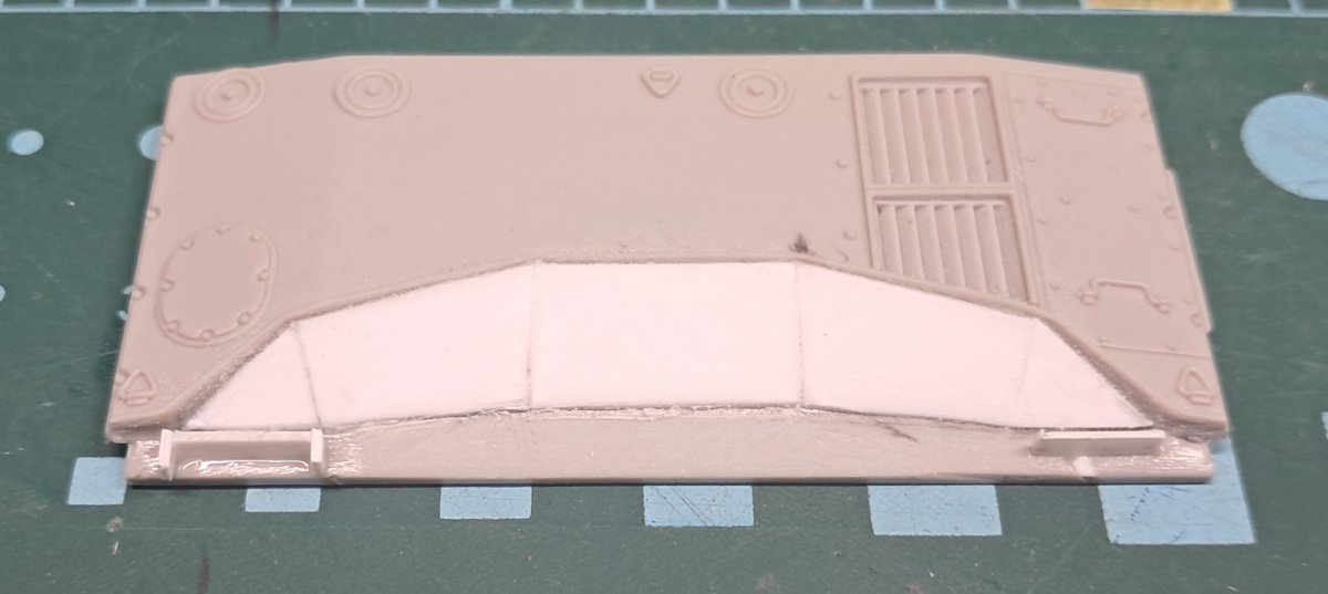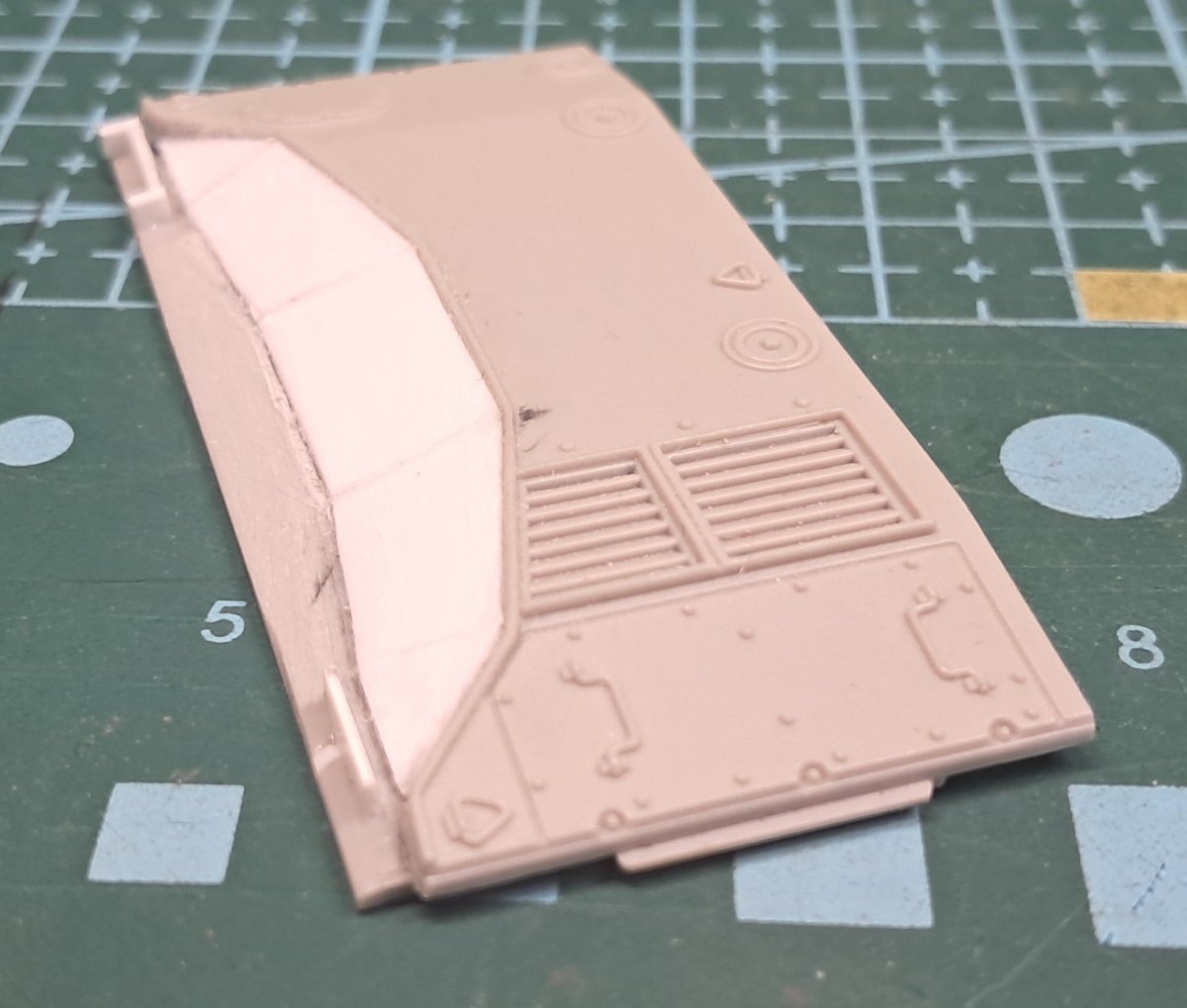 Poprawa pokrywy silnika prawie zakończona. Prawie, bo powycinać te skosy i dopasować do elementu, nie było łatwo i trochę mnie to zmęczyło. No co zrobić? Najwyraźniej czescy inżynierowie nie lubią modelarzy. Trzeba to jeszcze poszpachlować, wyszlifować i "włala". Dziś jednak już mi się nie chce.